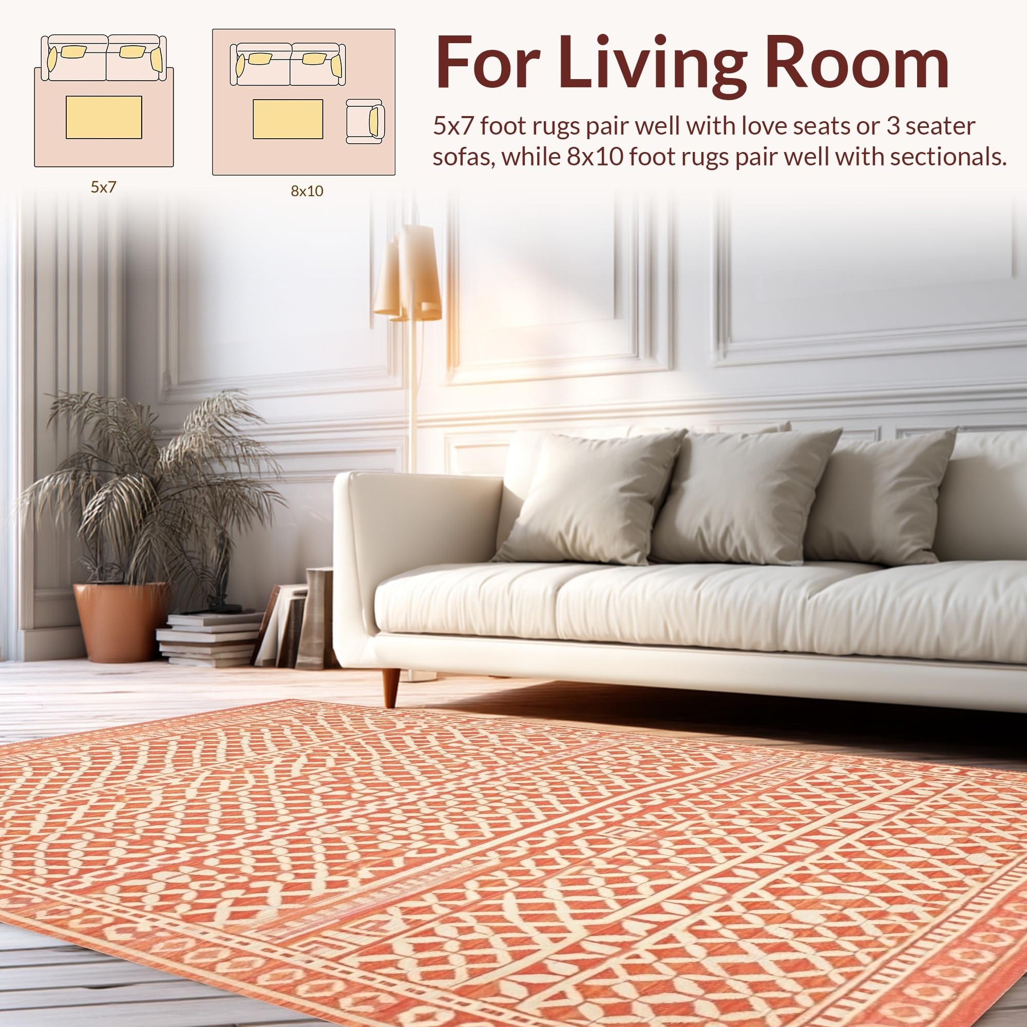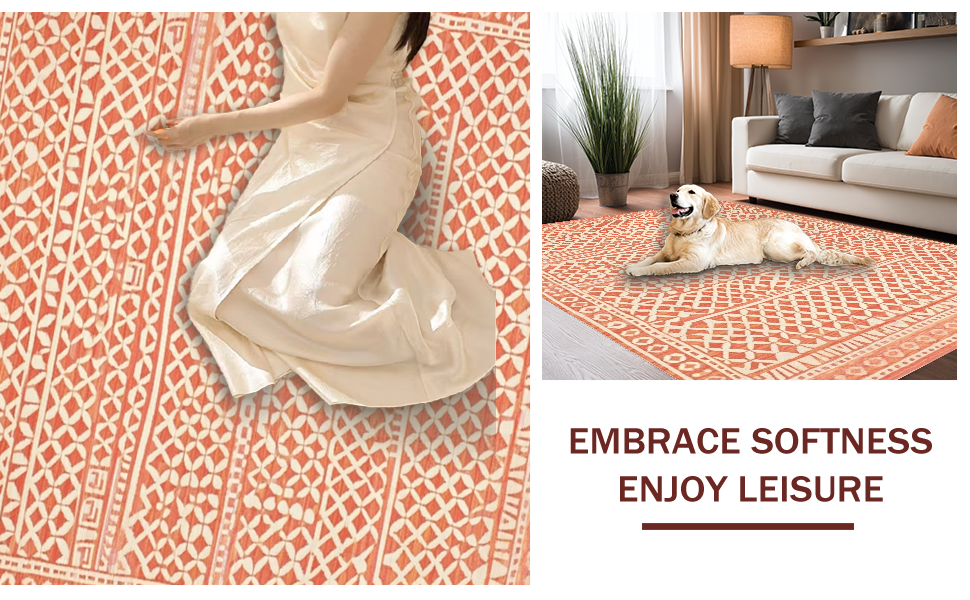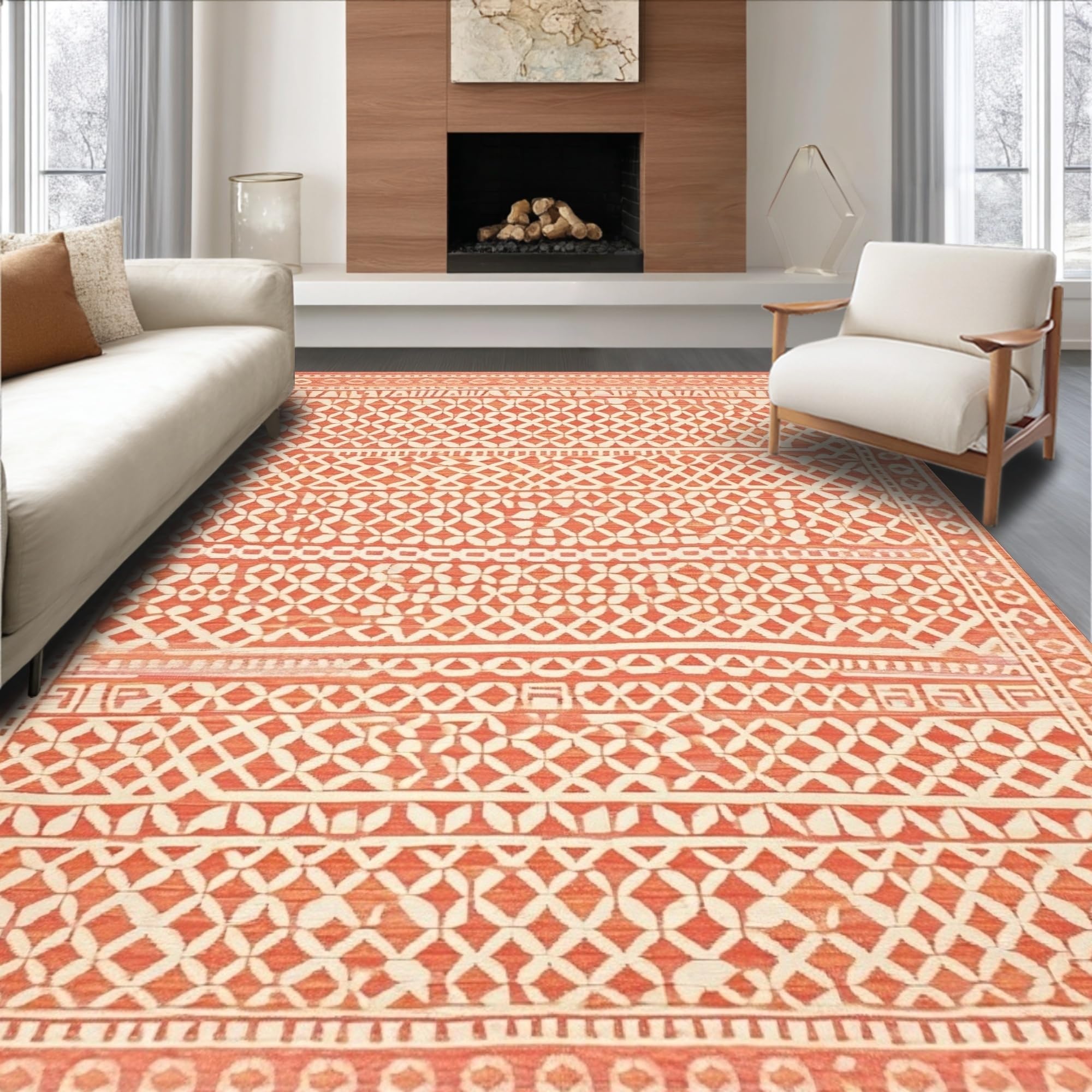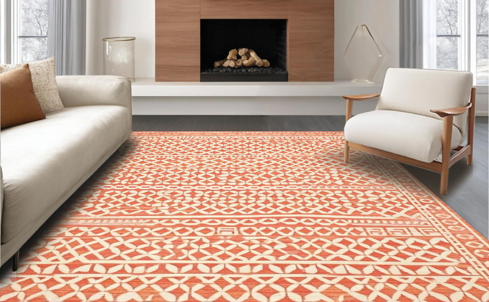 Ultra Soft Area Rug, Non Slip, Stain Resistant, Washable Area Rugs for Living Room, Bedroom, Trendy Abstract Organic Shapes(Orange) Overview: