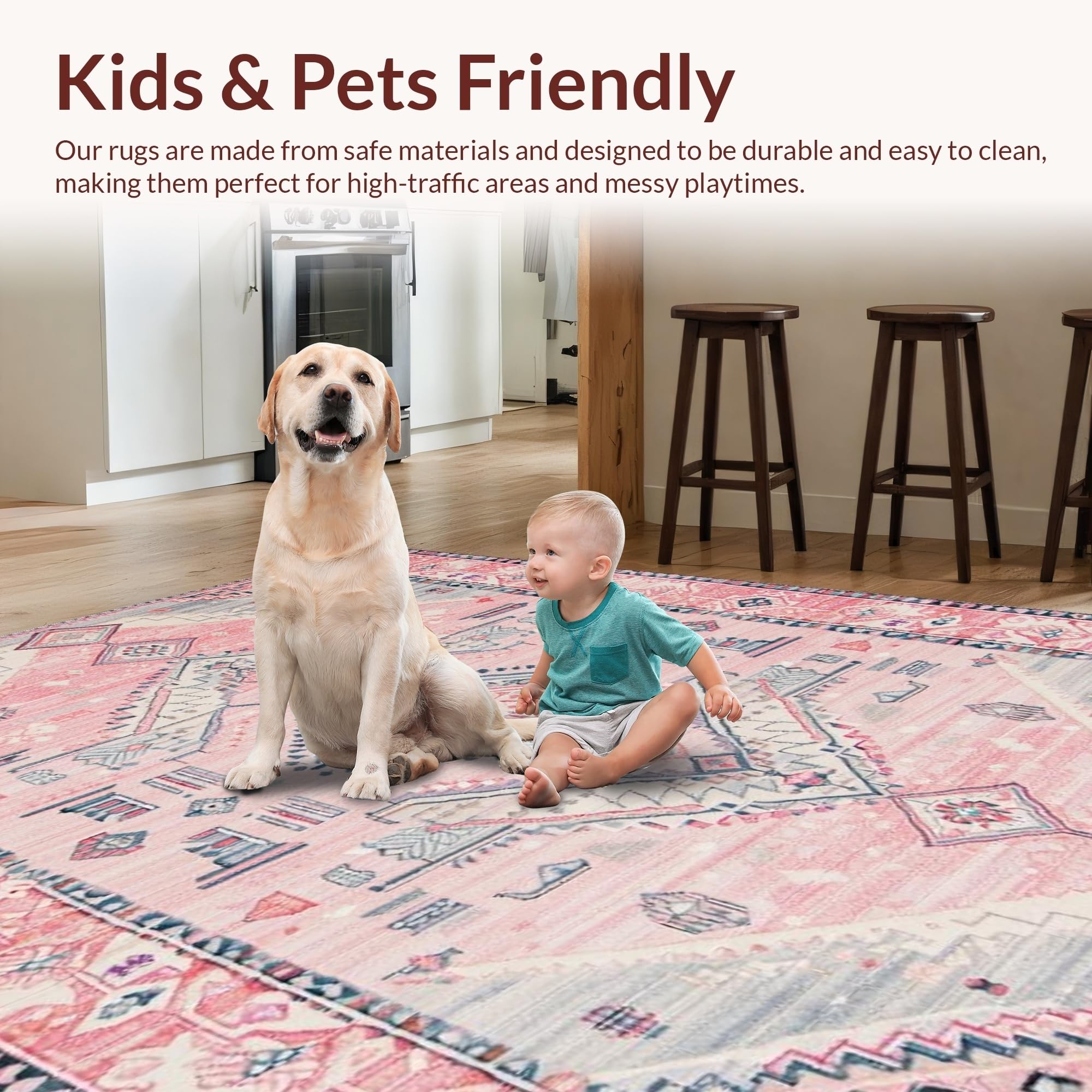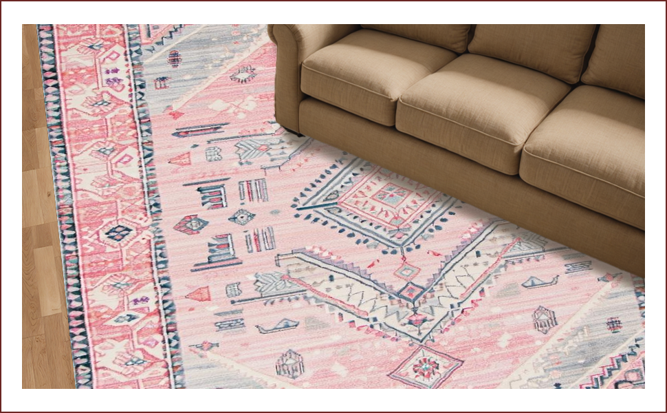 Ultra Soft Area Rug, Non Slip, Stain Resistant, Washable Area Rugs for Living Room, Bedroom, Trendy Abstract Soft Color Fusion(Pink) Overview: