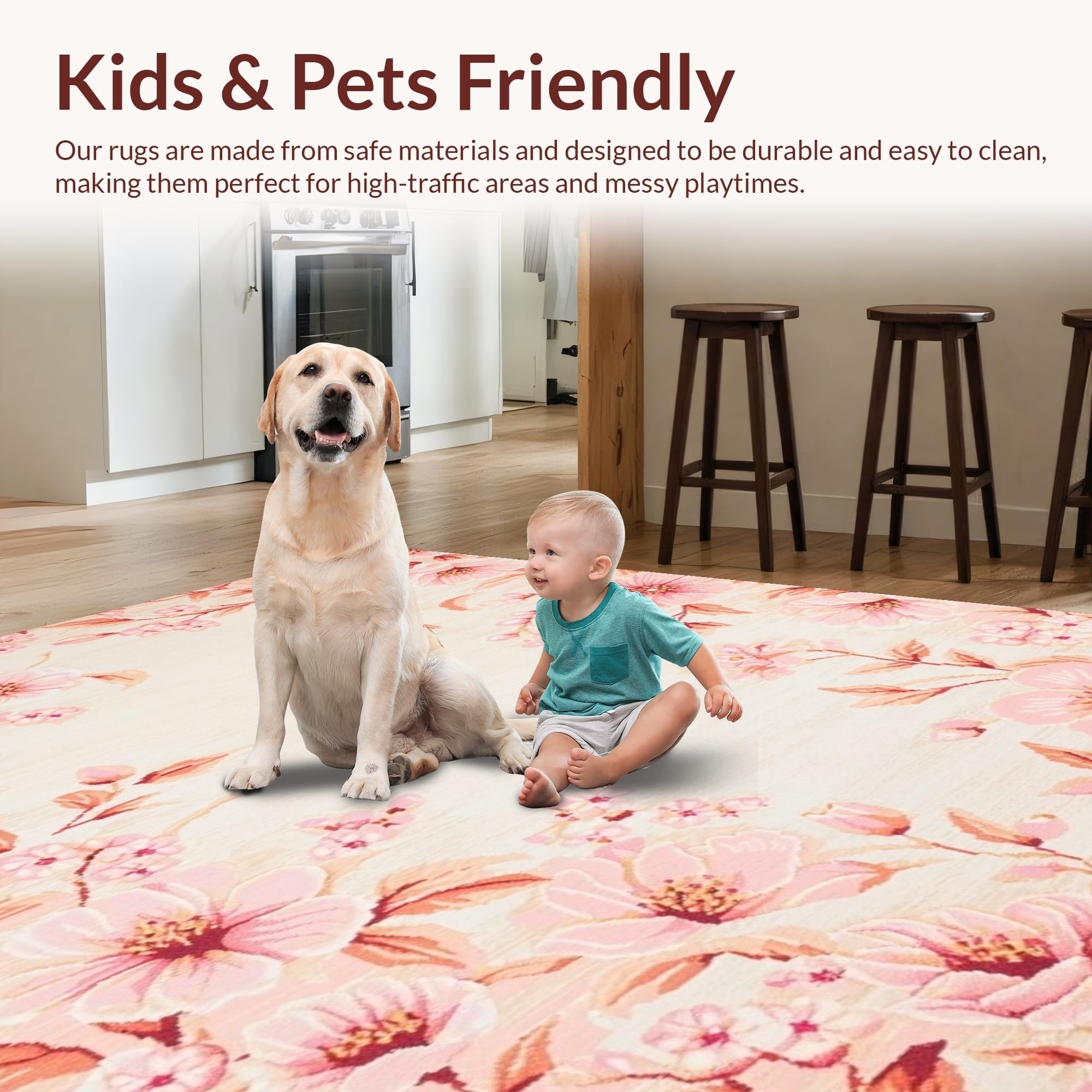 Ultra Soft Area Rug, Non Slip, Stain Resistant, Washable Area Rugs for Living Room, Bedroom, Trendy Abstract Softness Harmony(Beige) Overview: