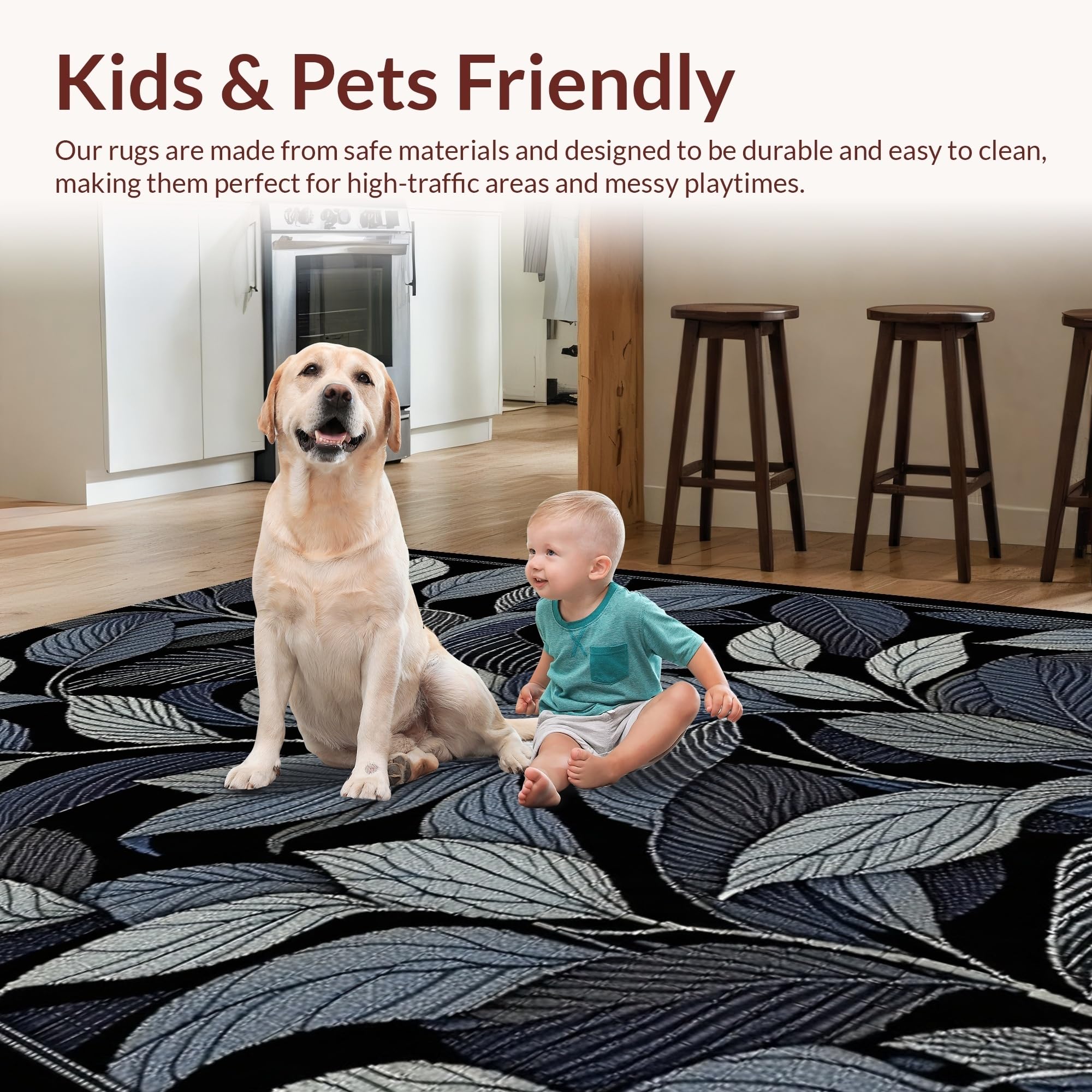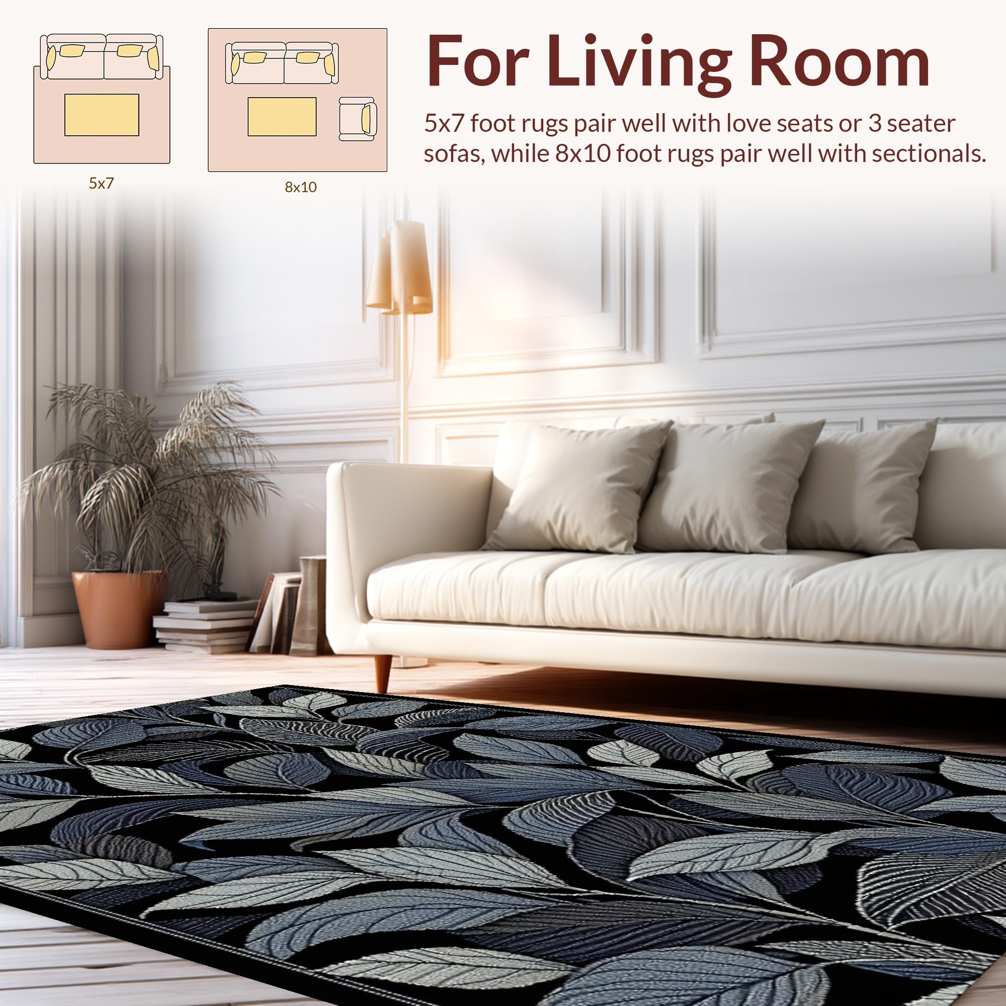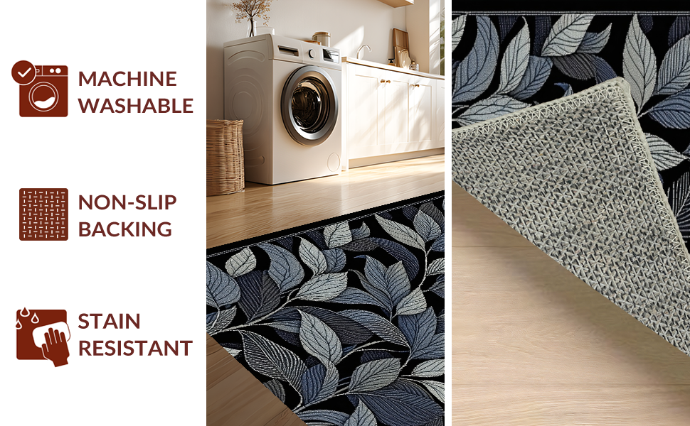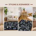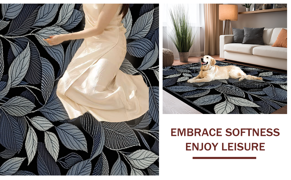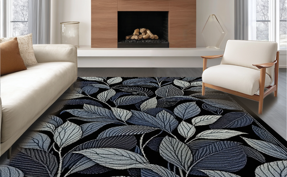 Ultra Soft Area Rug, Non Slip, Stain Resistant, Washable Area Rugs for Living Room, Bedroom, Trendy Black and White Floral(Blue) Overview: