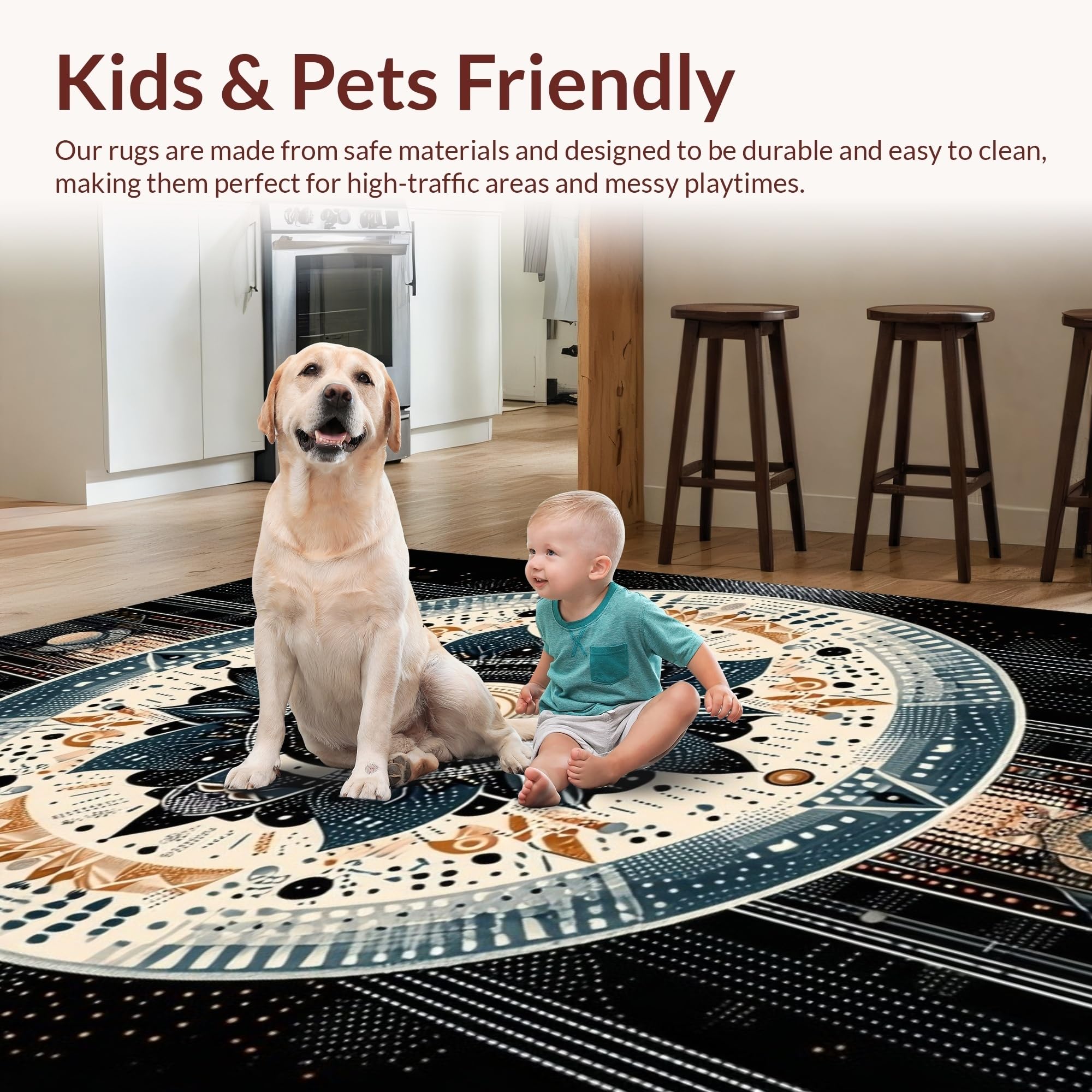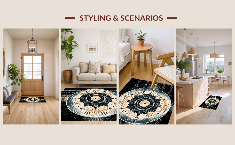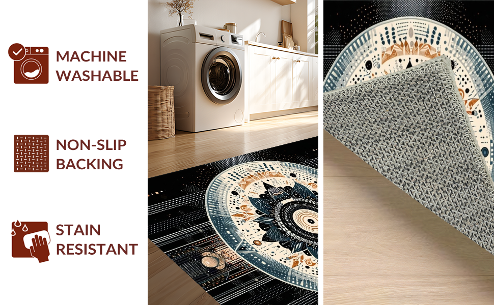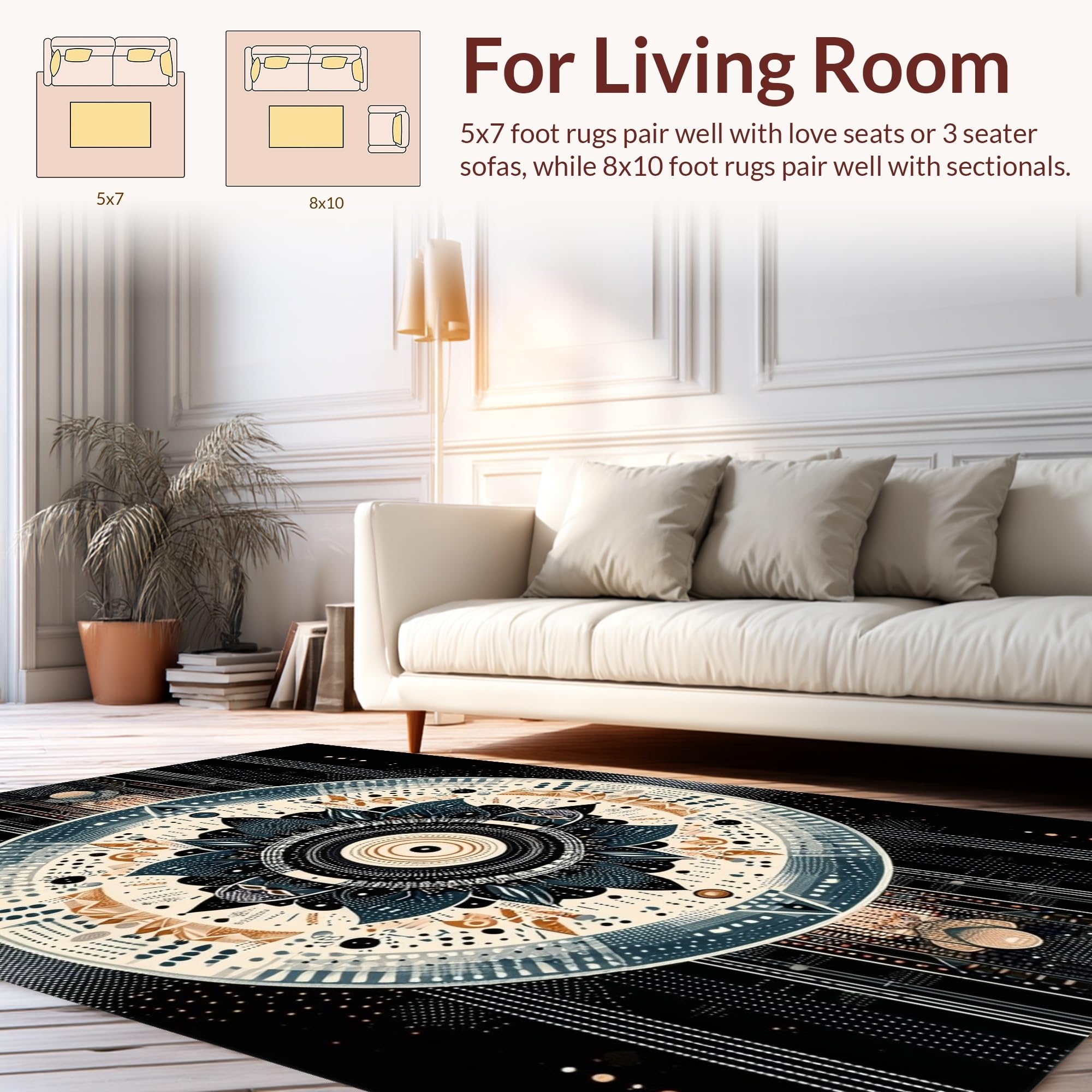 Ultra Soft Area Rug, Non Slip, Stain Resistant, Washable Area Rugs for Living Room, Bedroom, Trendy Black and White Mandala(Beige) Overview: