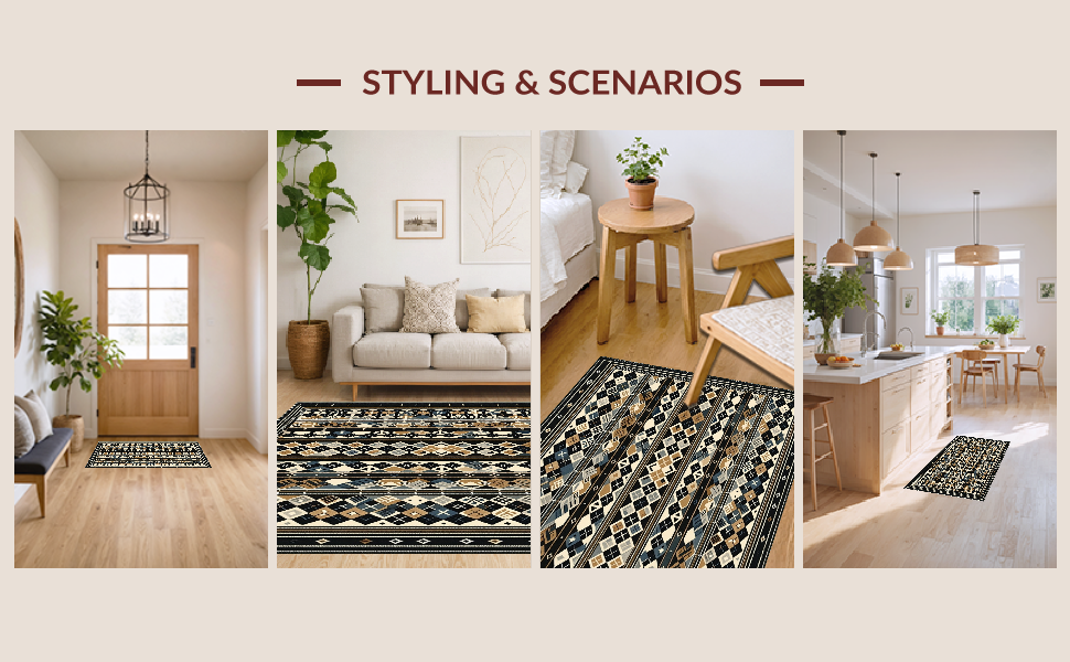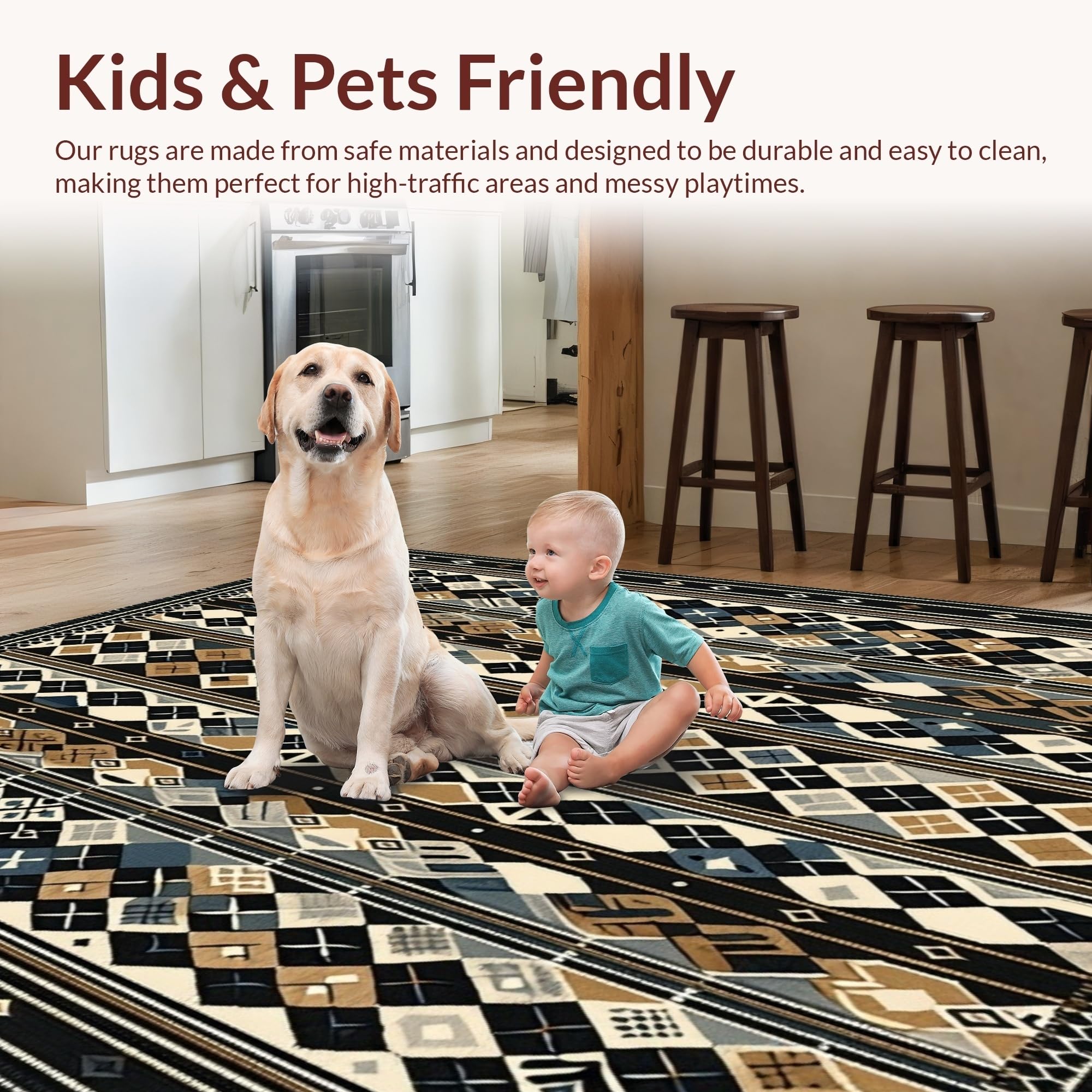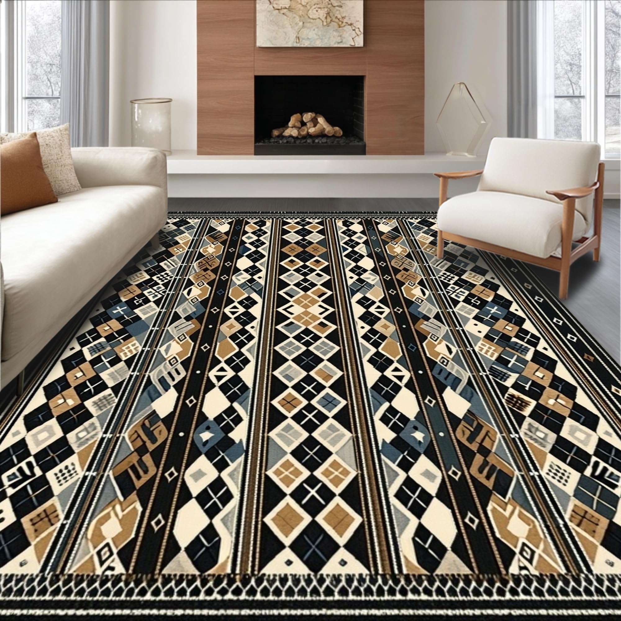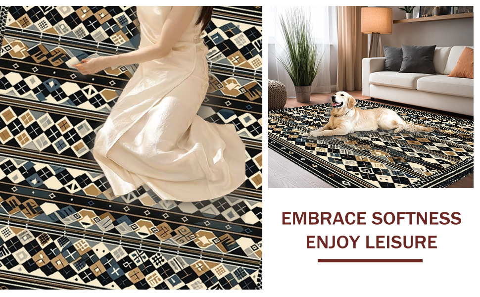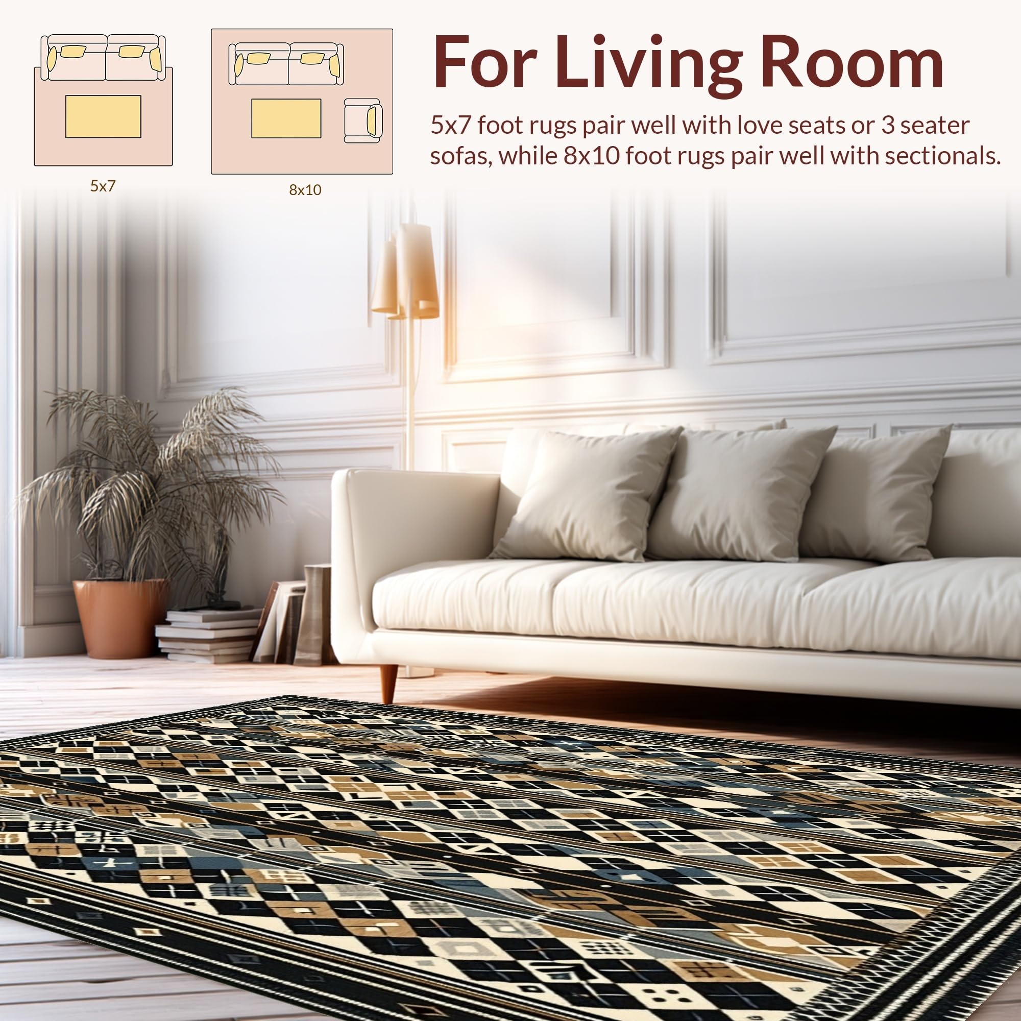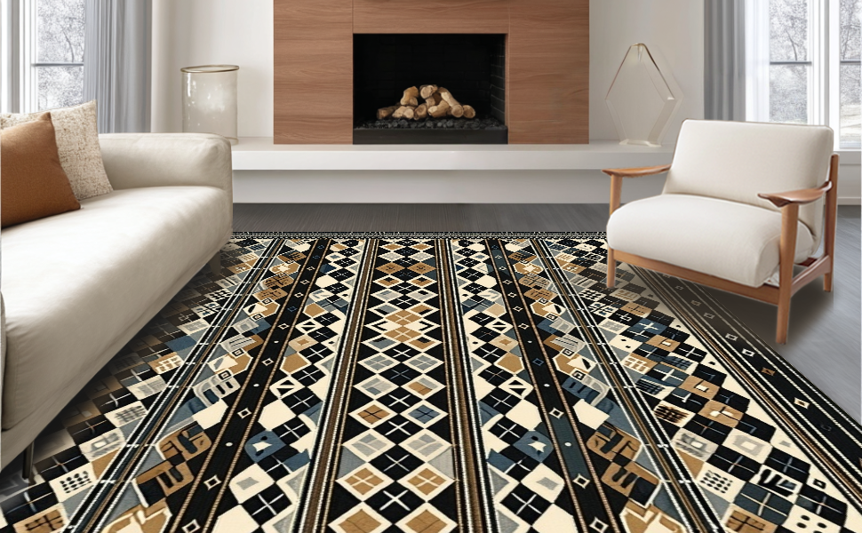 Ultra Soft Area Rug, Non Slip, Stain Resistant, Washable Area Rugs for Living Room, Bedroom, Trendy Black and White Medallion(Beige) Overview: