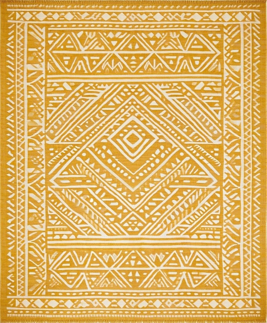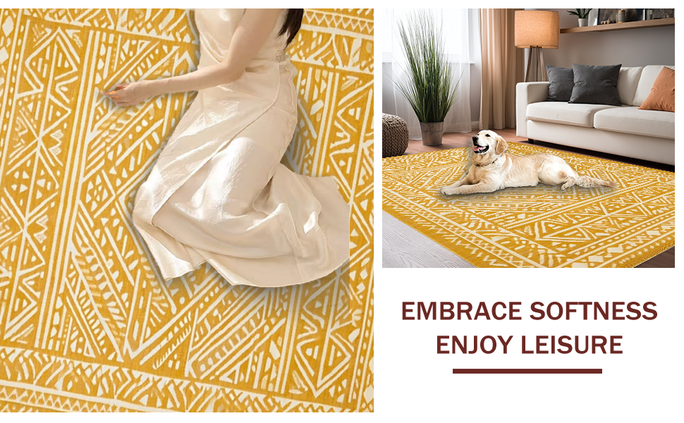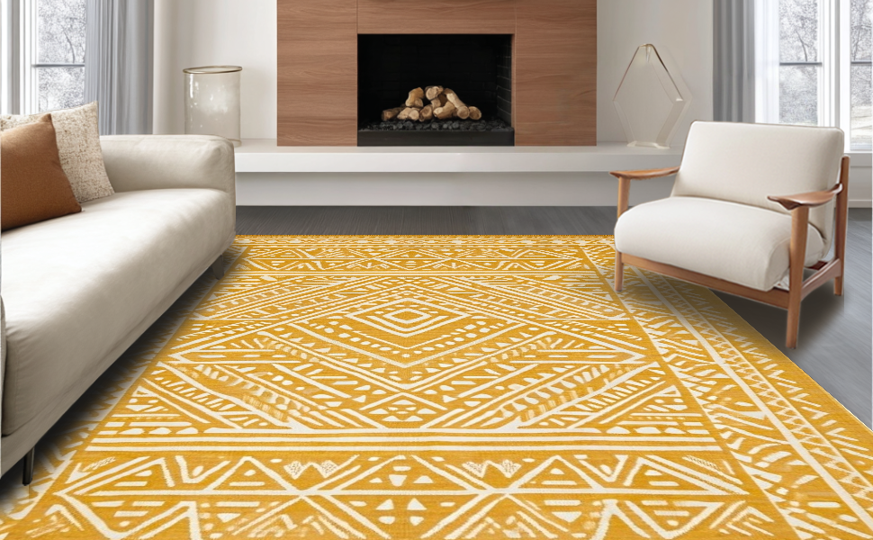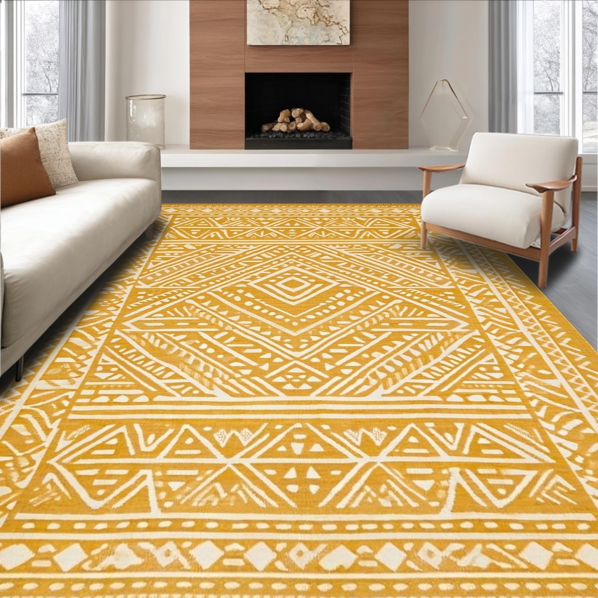 Ultra Soft Area Rug, Non Slip, Stain Resistant, Washable Area Rugs for Living Room, Bedroom, Trendy Crochet Tiled Inspiration(Yellow) Overview:
