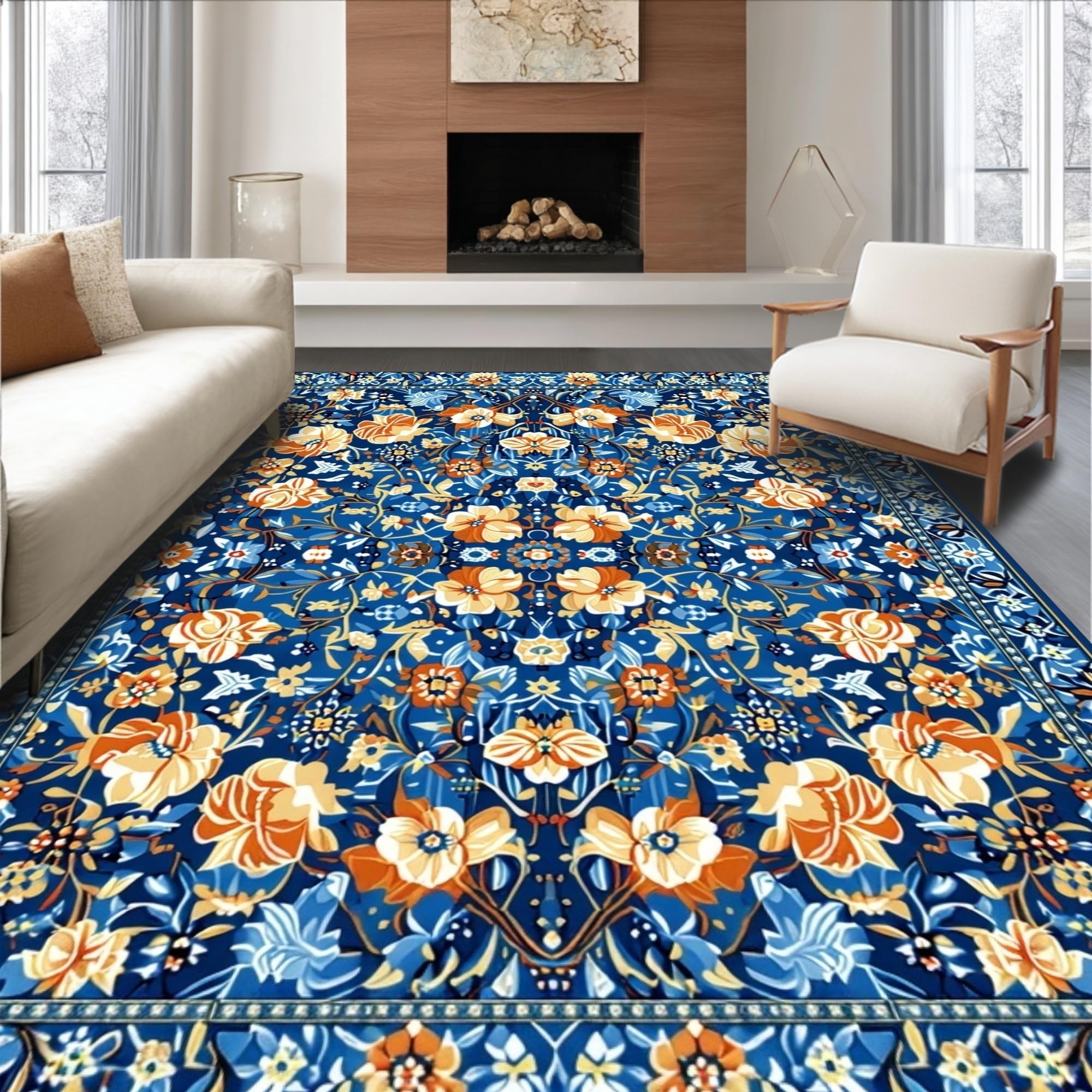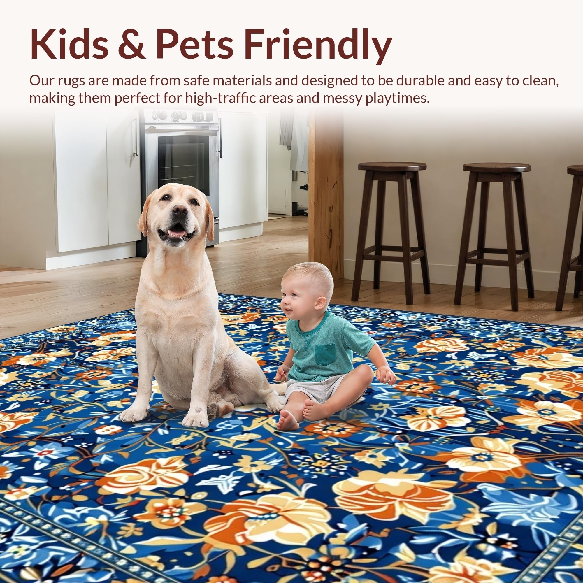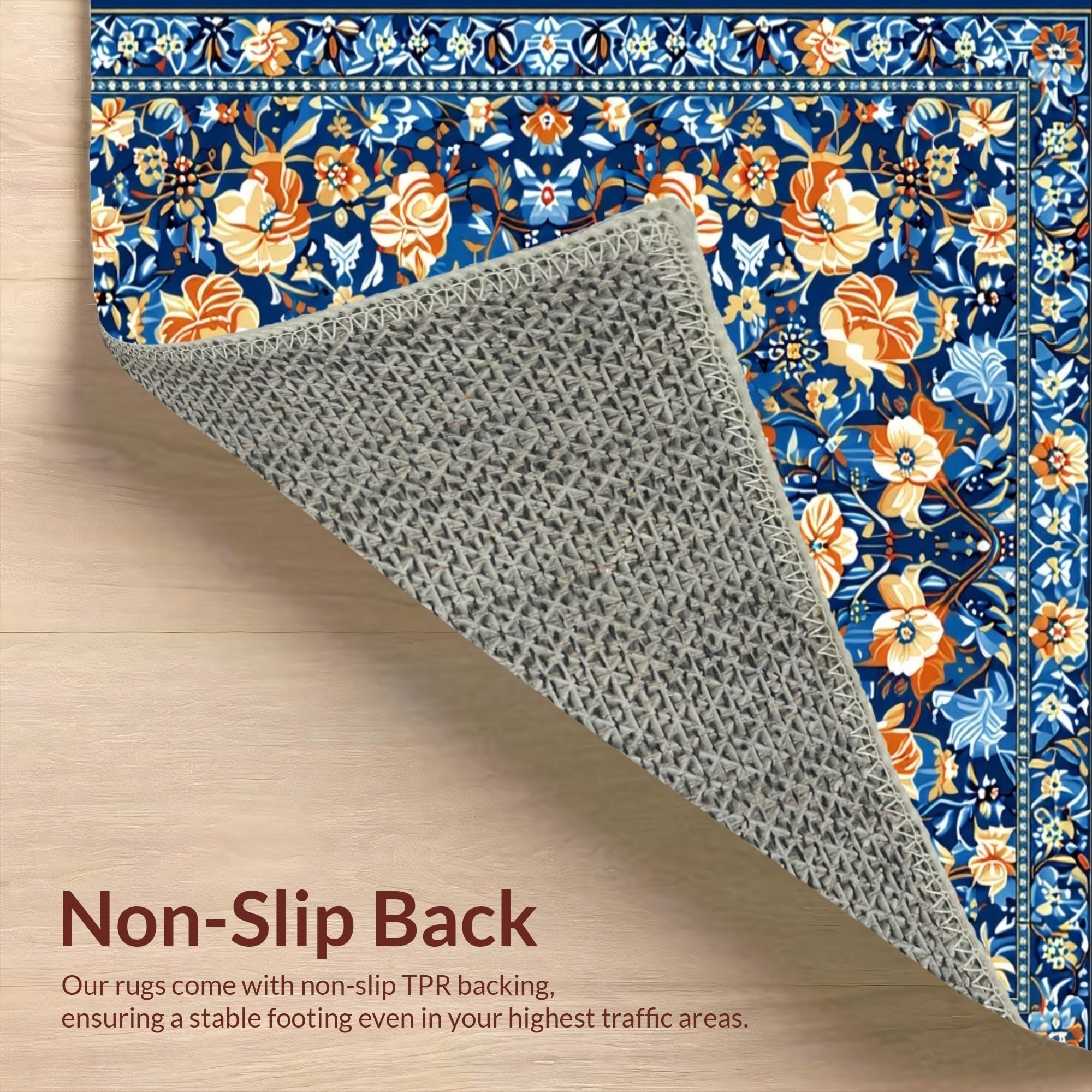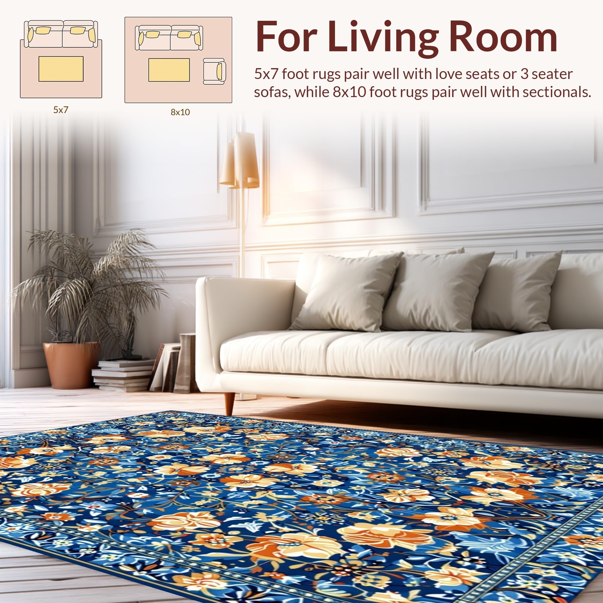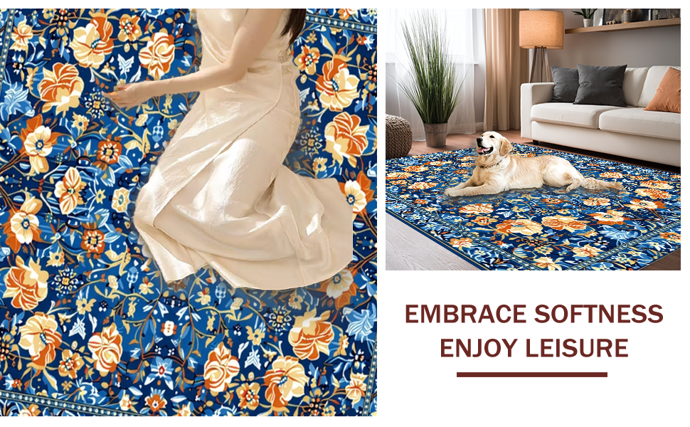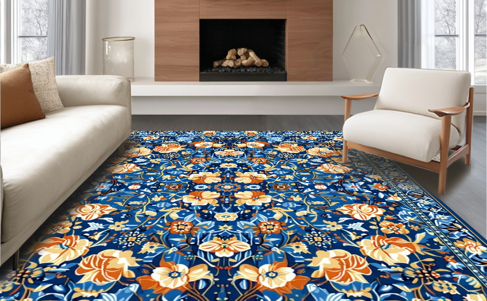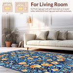 Ultra Soft Area Rug, Non Slip, Stain Resistant, Washable Area Rugs for Living Room, Bedroom, Trendy Distressed Floral Aesthetic(Blue) Overview: