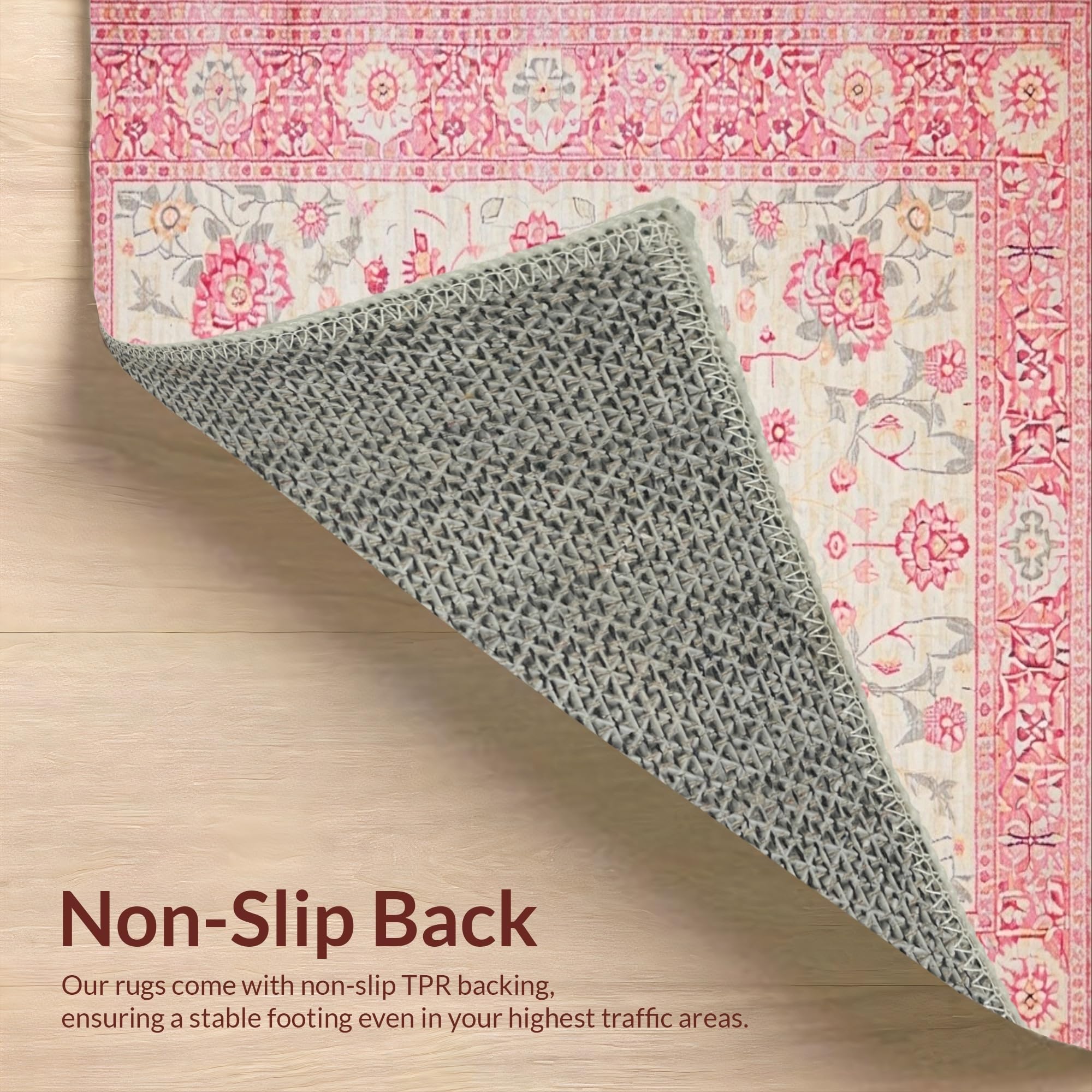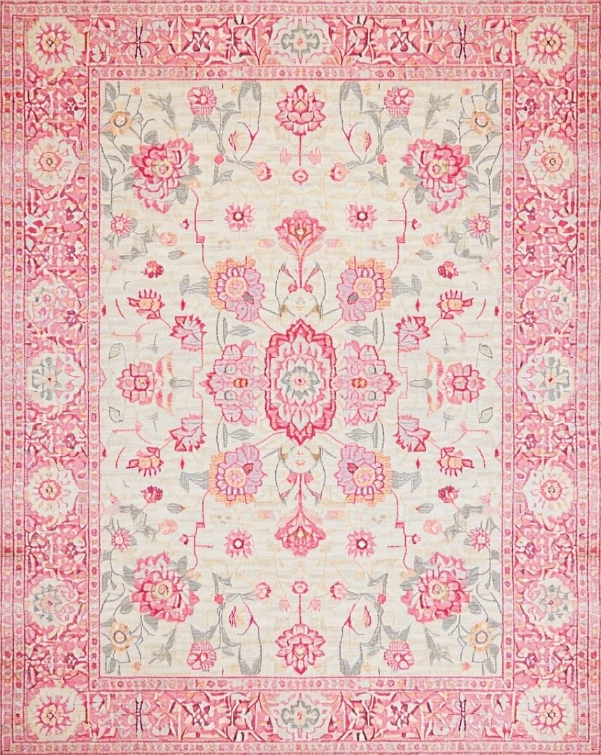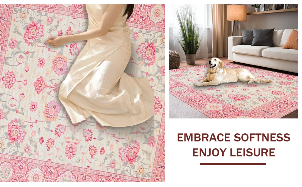 Ultra Soft Area Rug, Non Slip, Stain Resistant, Washable Area Rugs for Living Room, Bedroom, Trendy Earthy Floral Vibe(Pink) Overview: