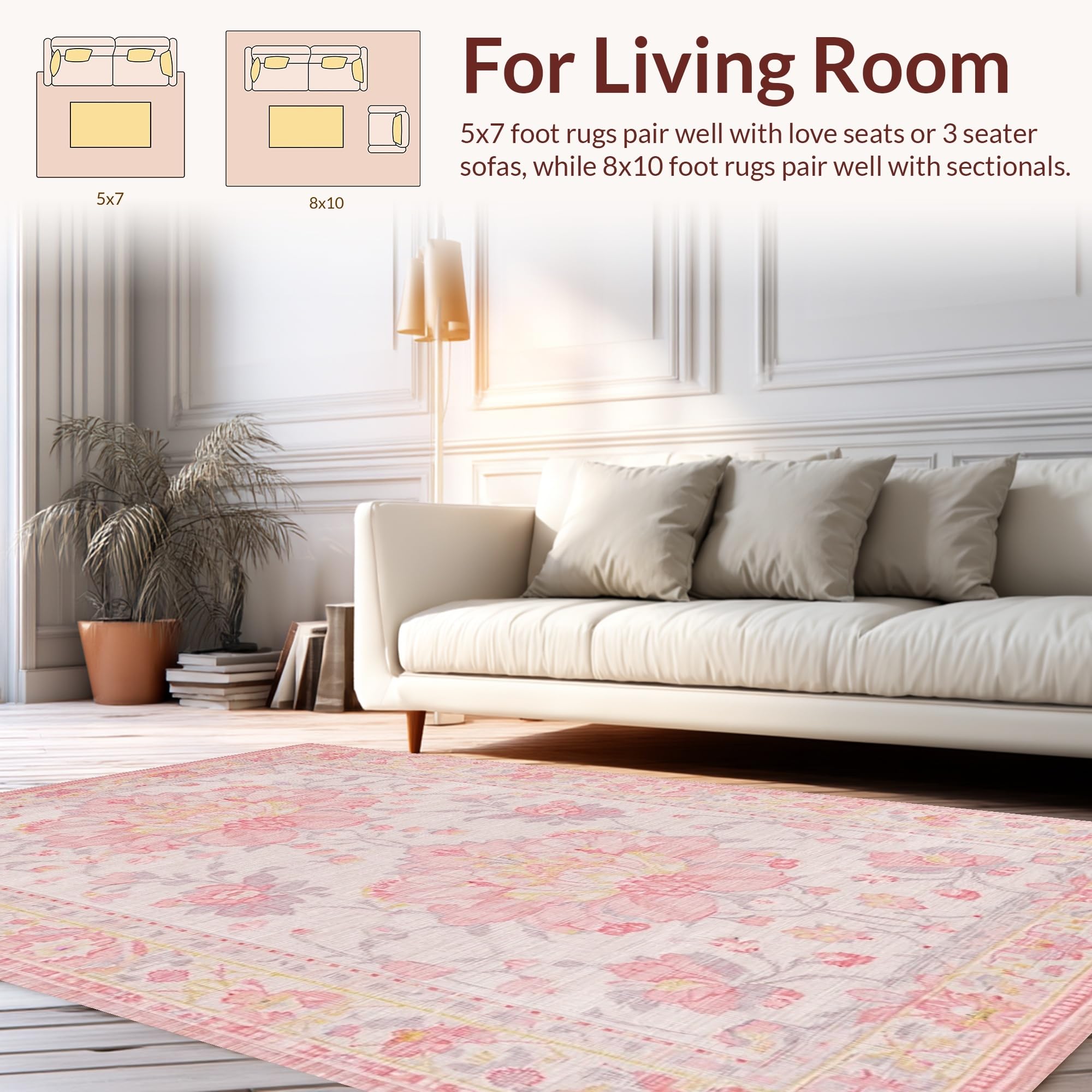 Ultra Soft Area Rug, Non Slip, Stain Resistant, Washable Area Rugs for Living Room, Bedroom, Trendy Flower Shaped Decor Accent(Pink) Overview: