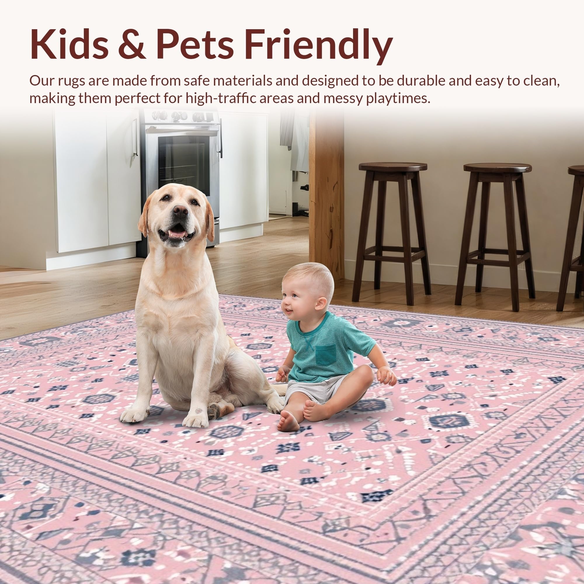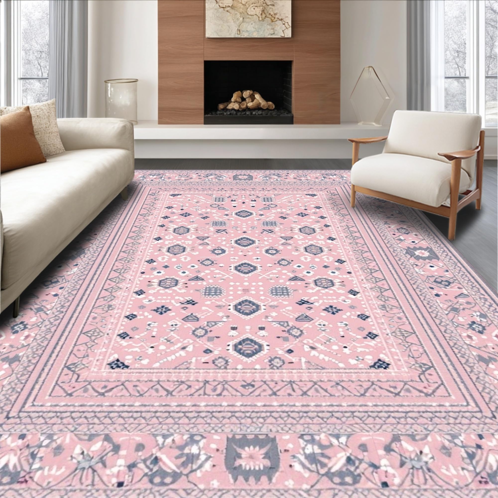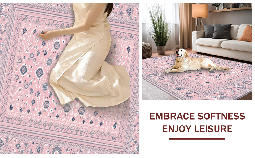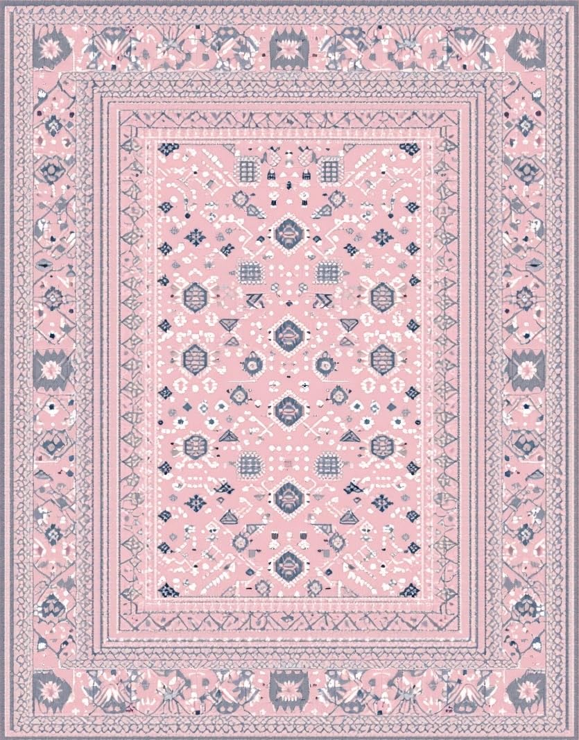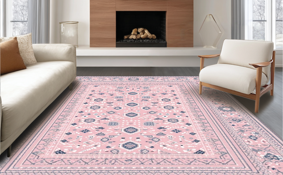 Ultra Soft Area Rug, Non Slip, Stain Resistant, Washable Area Rugs for Living Room, Bedroom, Trendy Fun-Filled Patterned Surface(Pink) Overview: