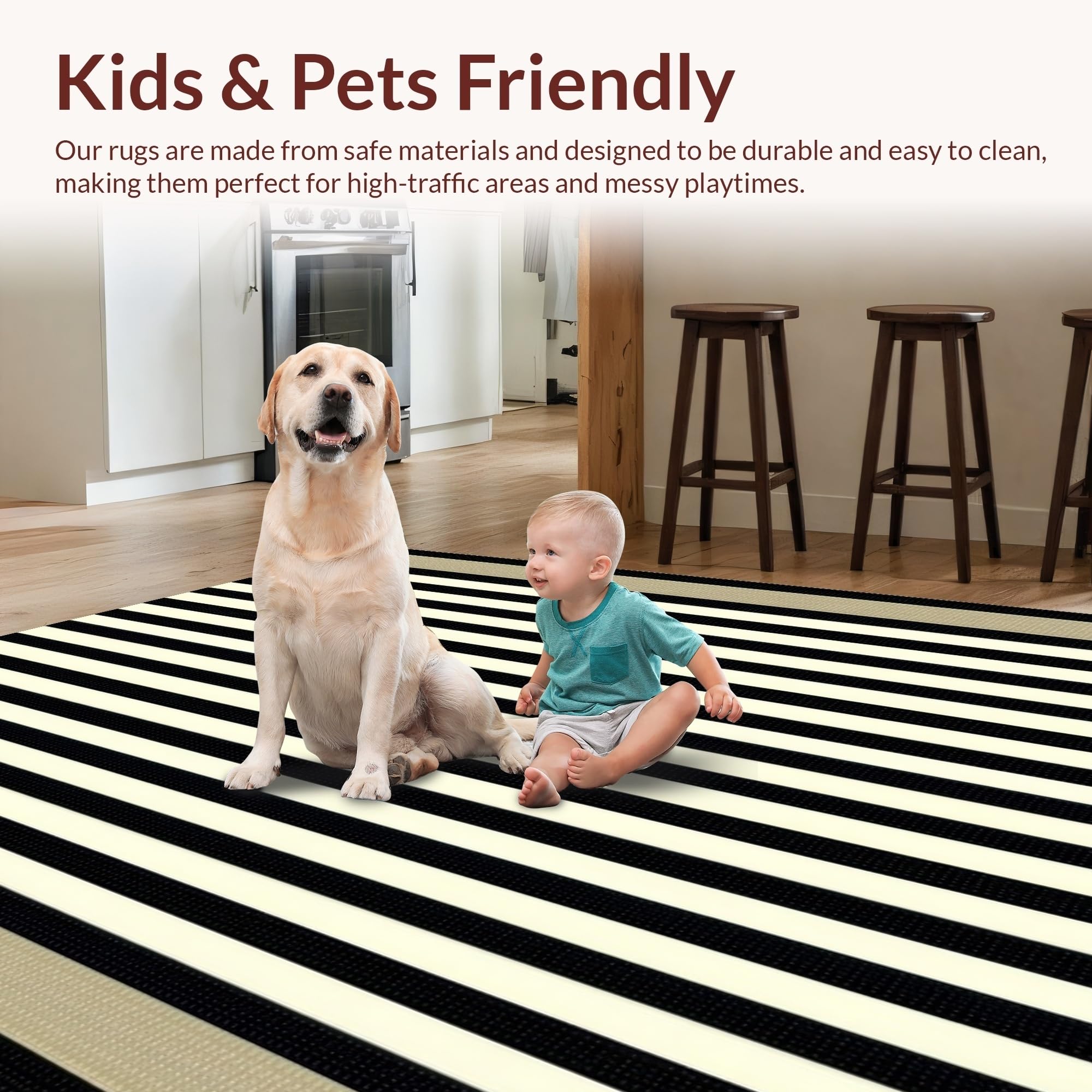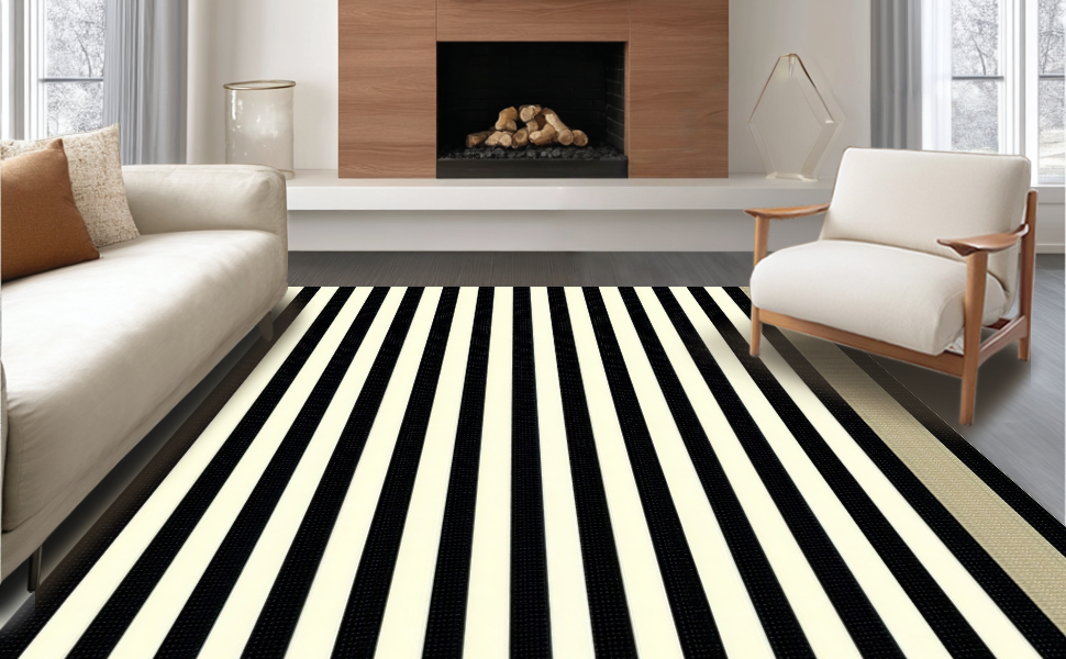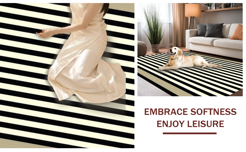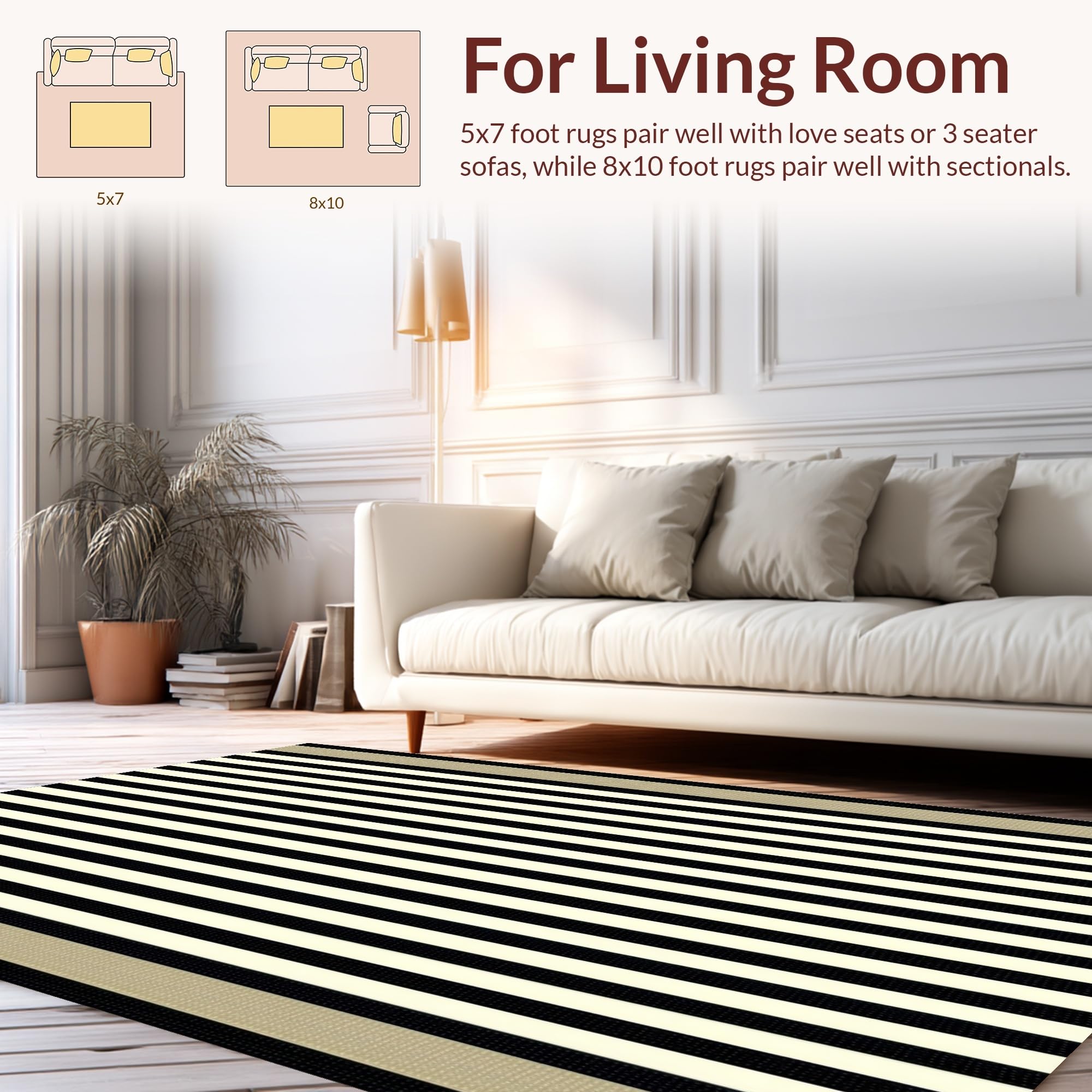 Ultra Soft Area Rug, Non Slip, Stain Resistant, Washable Area Rugs for Living Room, Bedroom, Trendy Geometric Black and Khaki(Black) Overview: