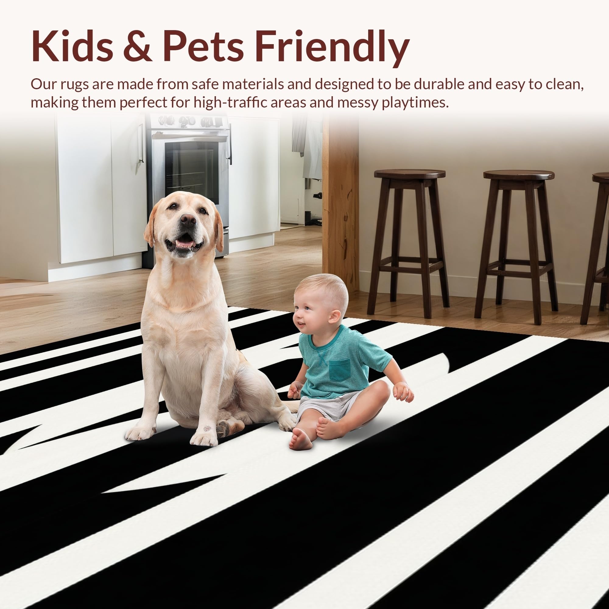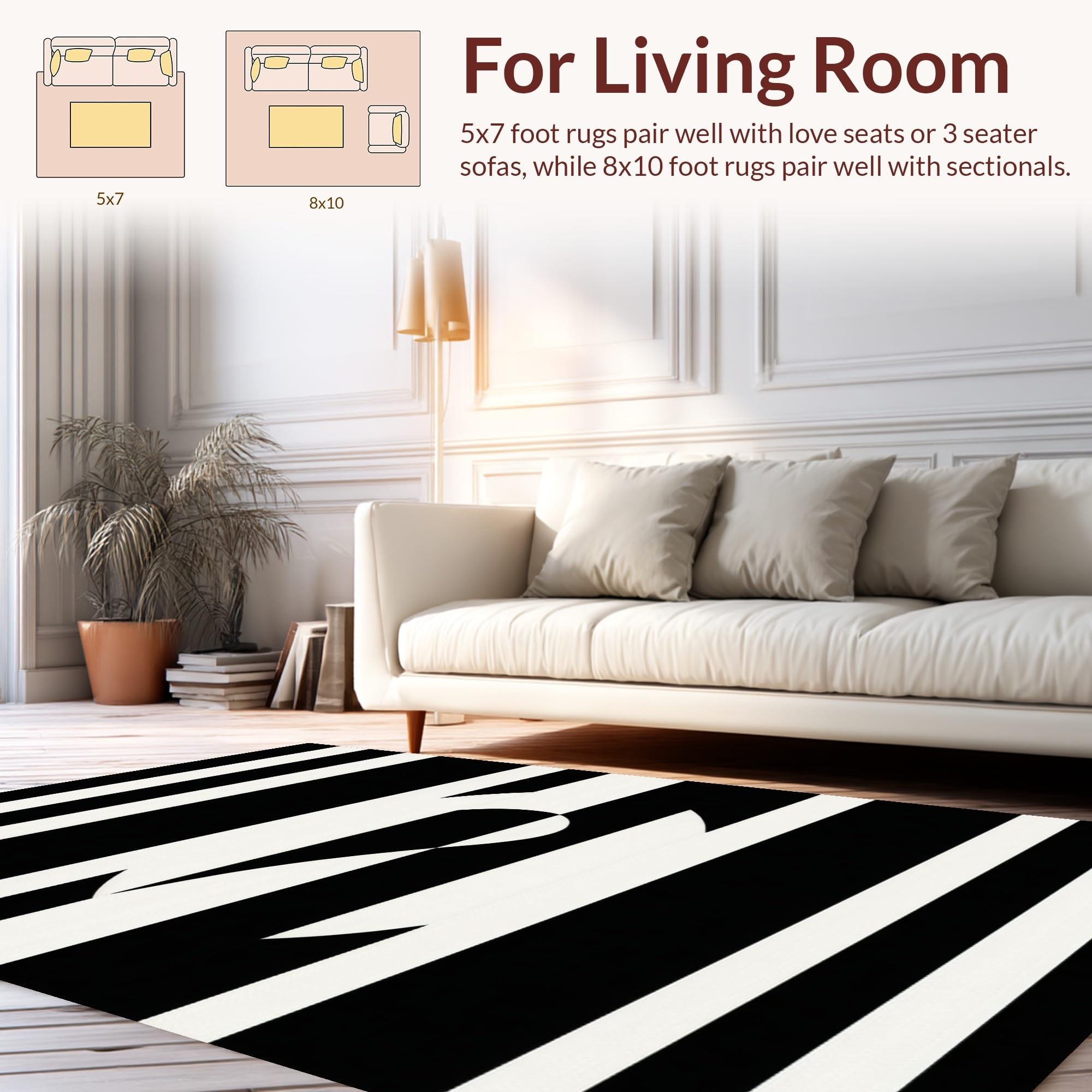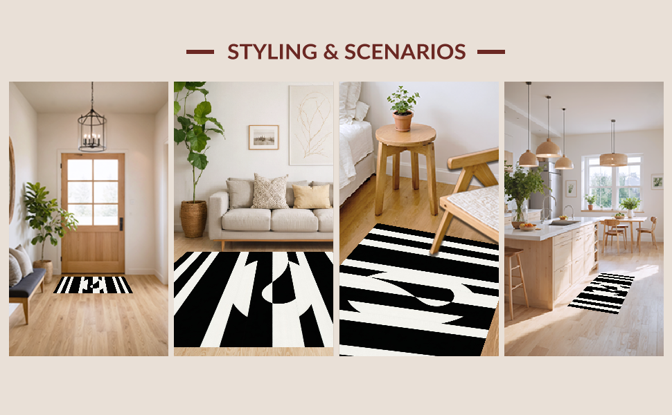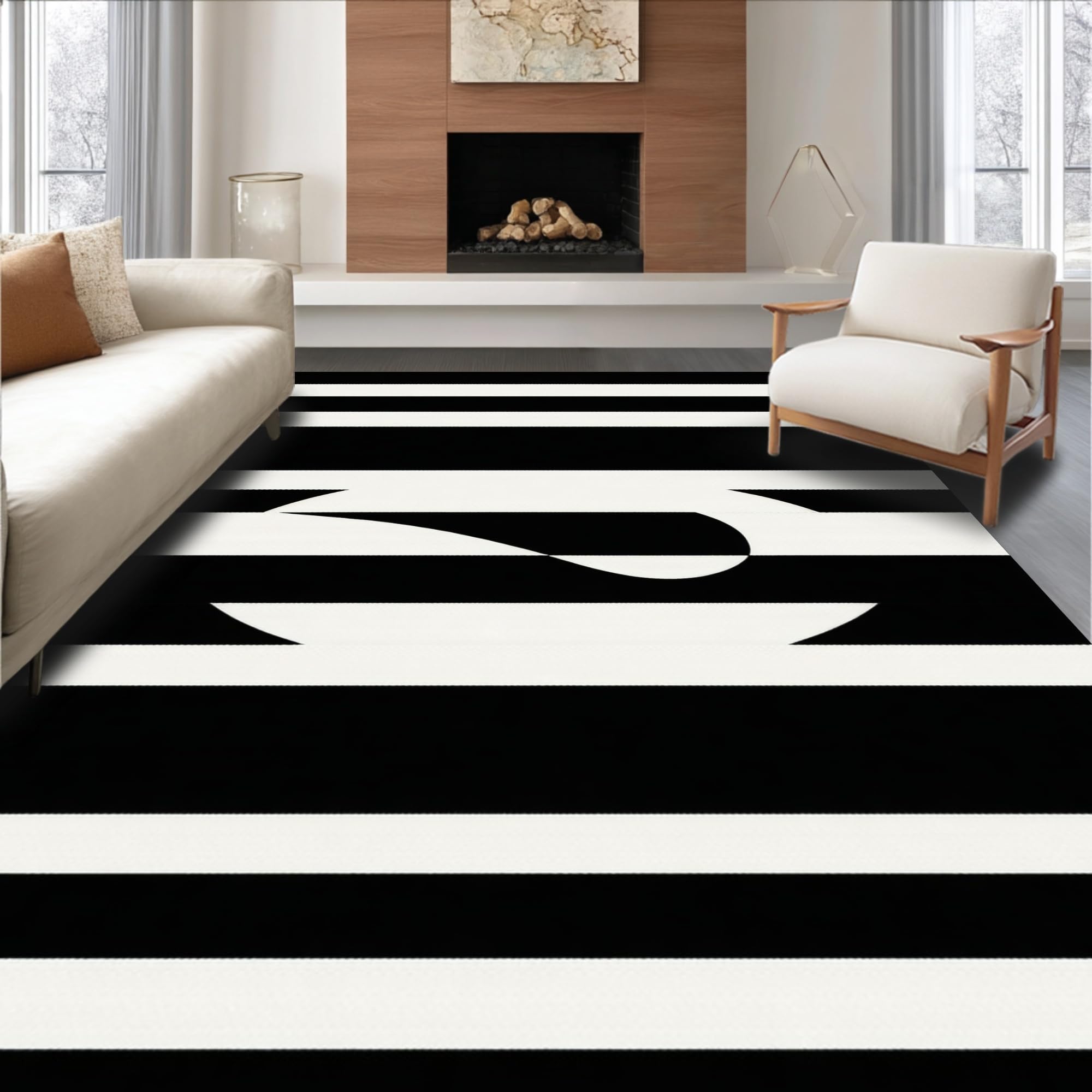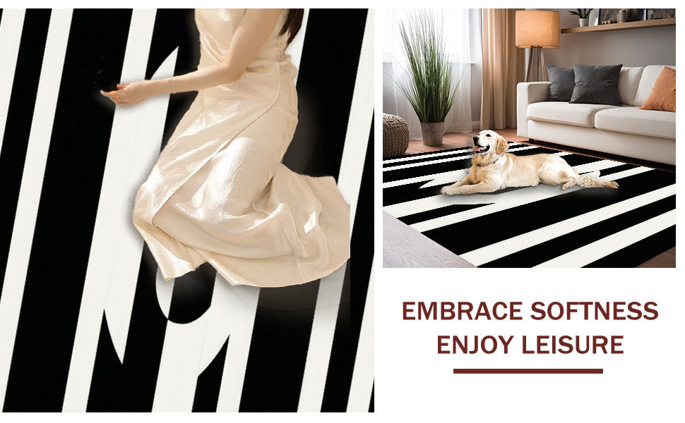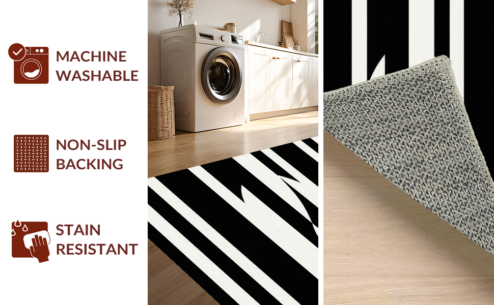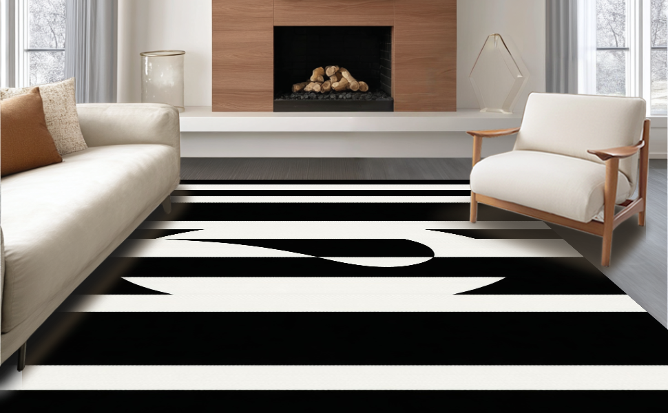 Ultra Soft Area Rug, Non Slip, Stain Resistant, Washable Area Rugs for Living Room, Bedroom, Trendy Geometric Monochrome Arrangement(Black) Overview: