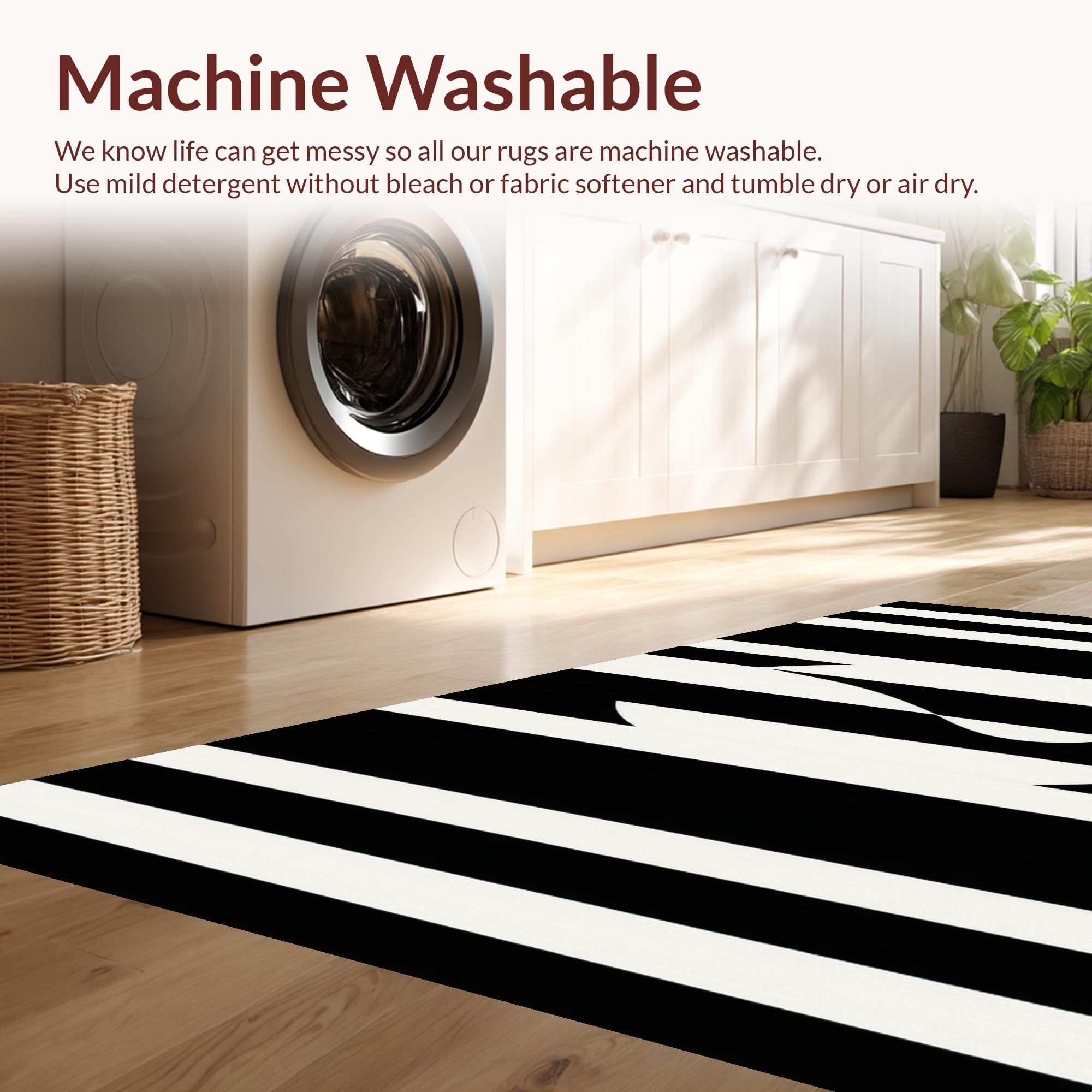 - Machine Washable: Our rugs can be easily thrown in the wash machine.