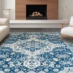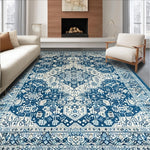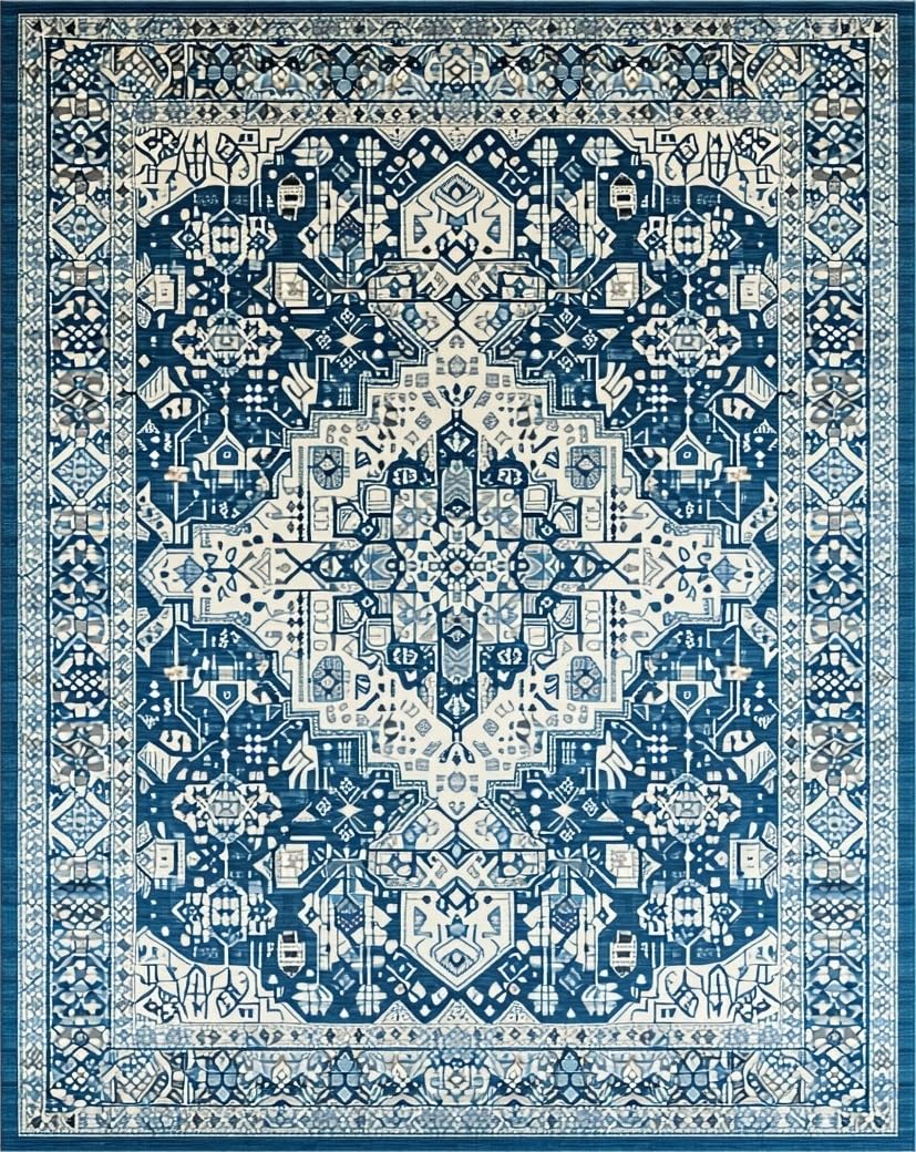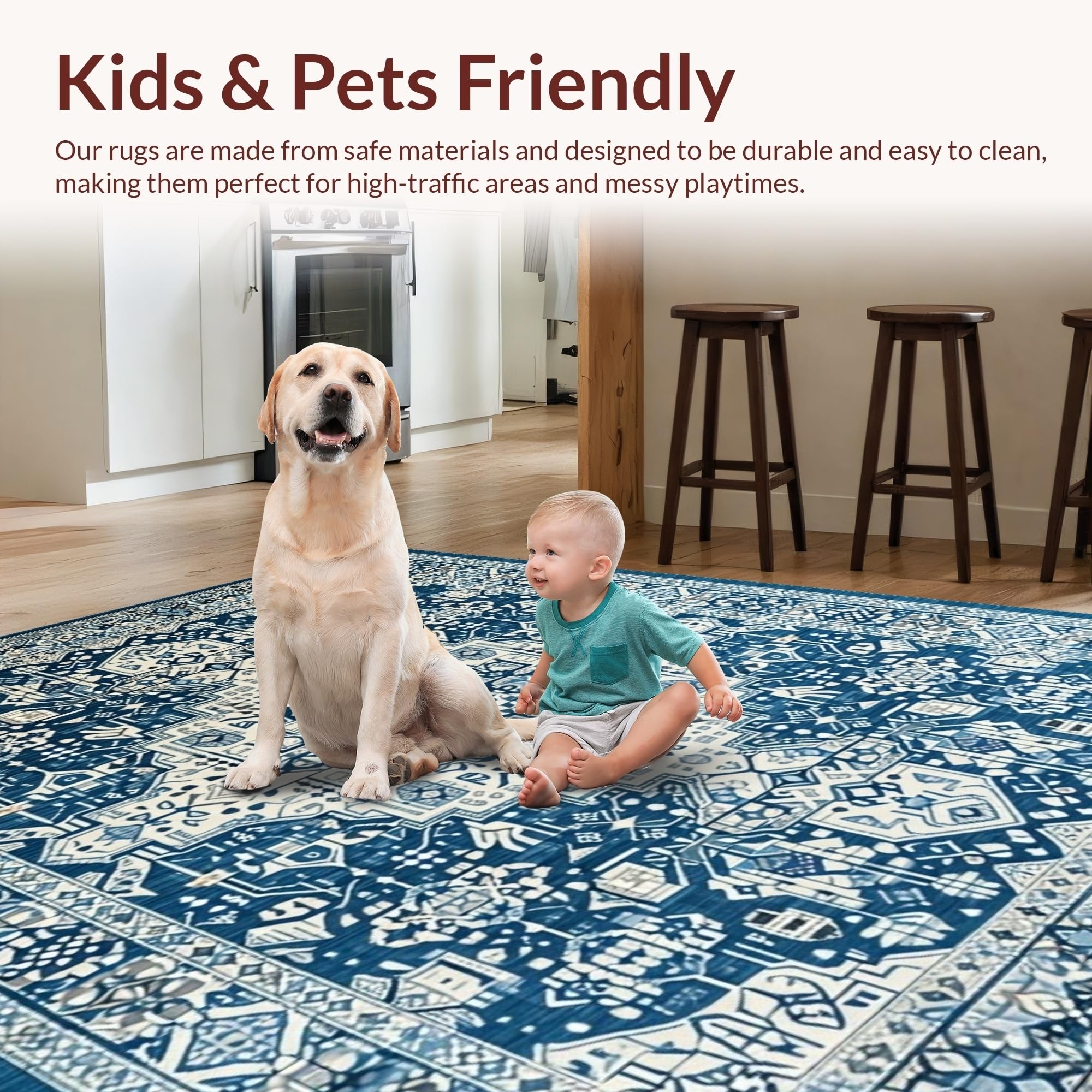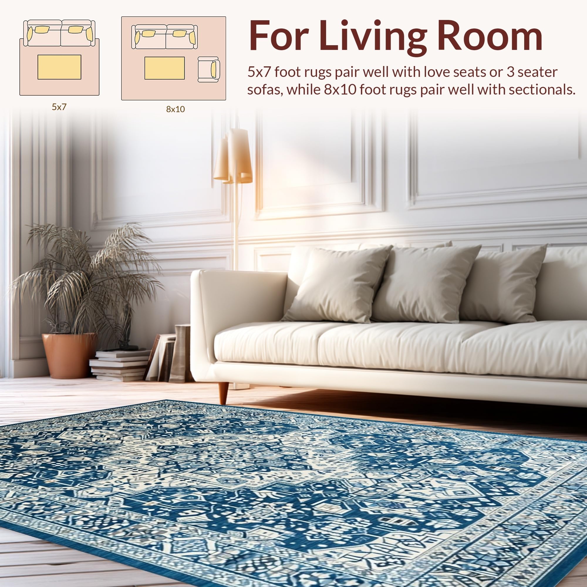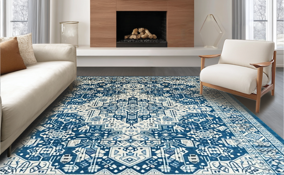 Ultra Soft Area Rug, Non Slip, Stain Resistant, Washable Area Rugs for Living Room, Bedroom, Trendy Geometric Trellis with Neutral Palette(Blue) Overview: