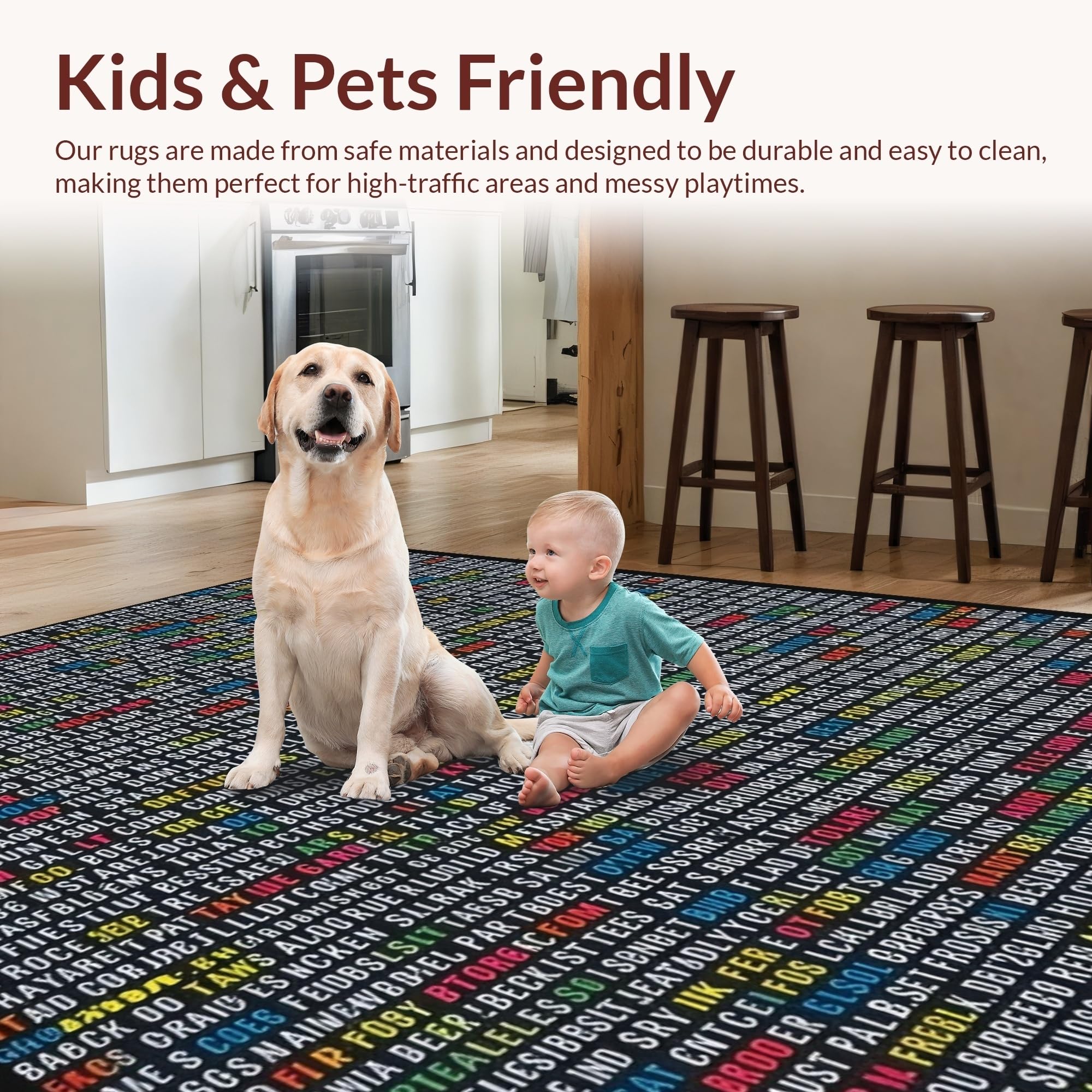 Ultra Soft Area Rug, Non Slip, Stain Resistant, Washable Area Rugs for Living Room, Bedroom, Trendy Graphic Phrase Decor(Beige) Overview: