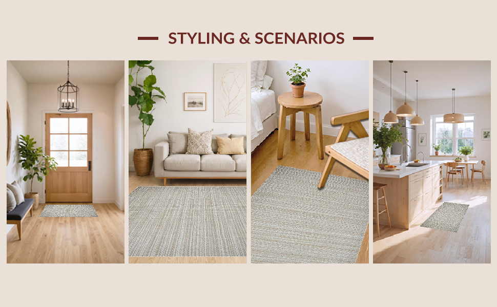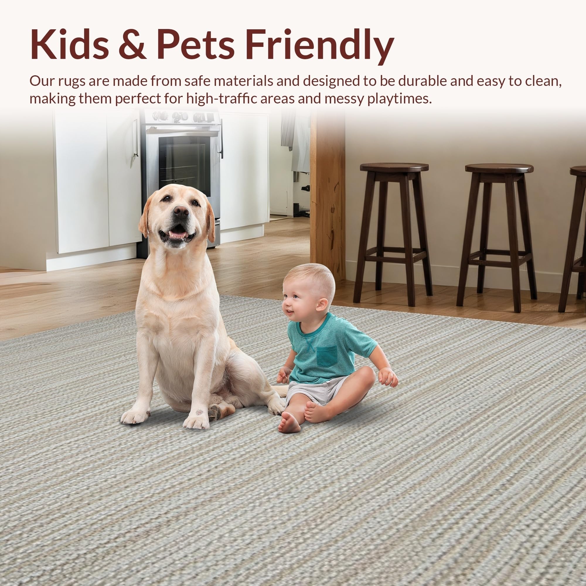 Ultra Soft Area Rug, Non Slip, Stain Resistant, Washable Area Rugs for Living Room, Bedroom, Trendy Herringbone Graphic Style(Beige) Overview: