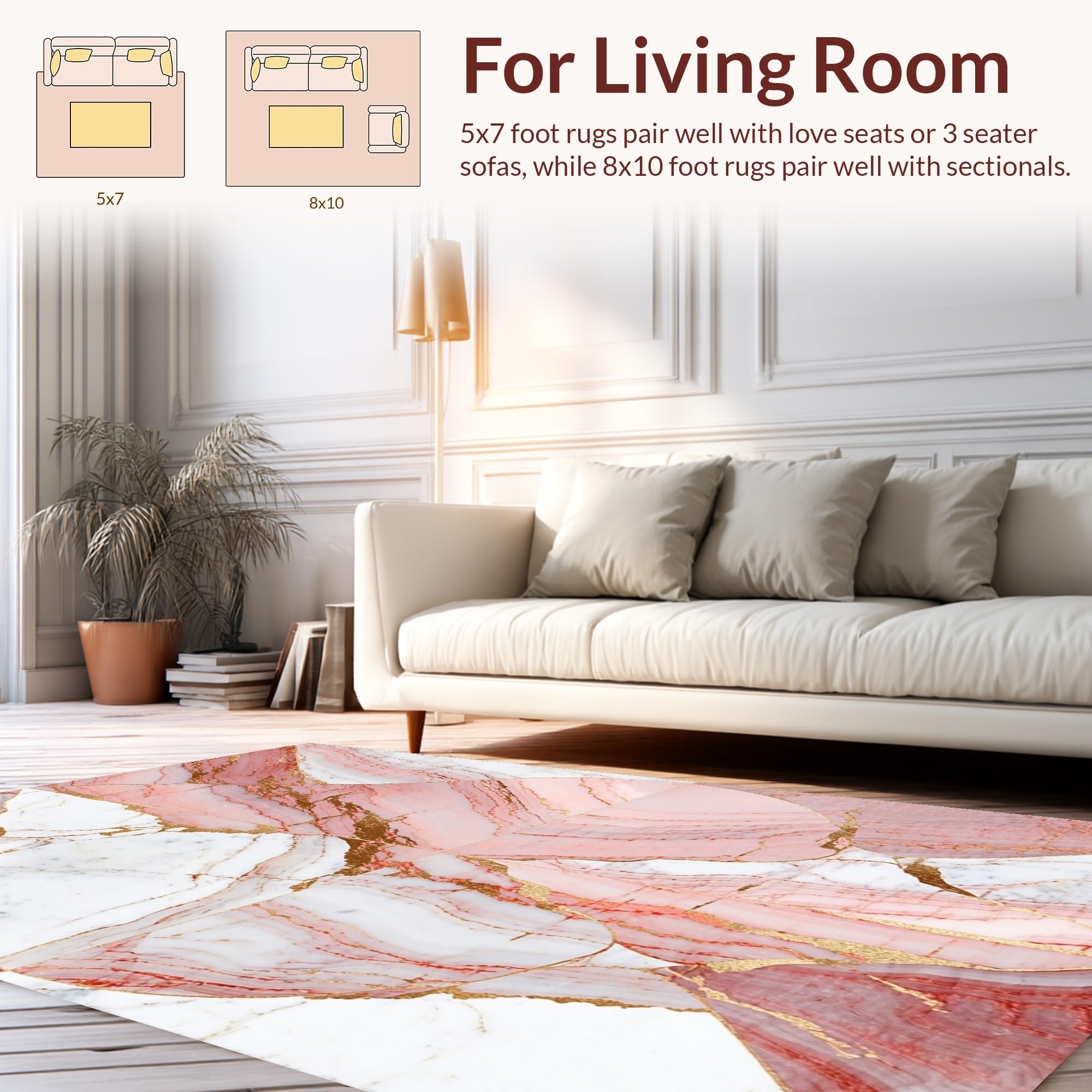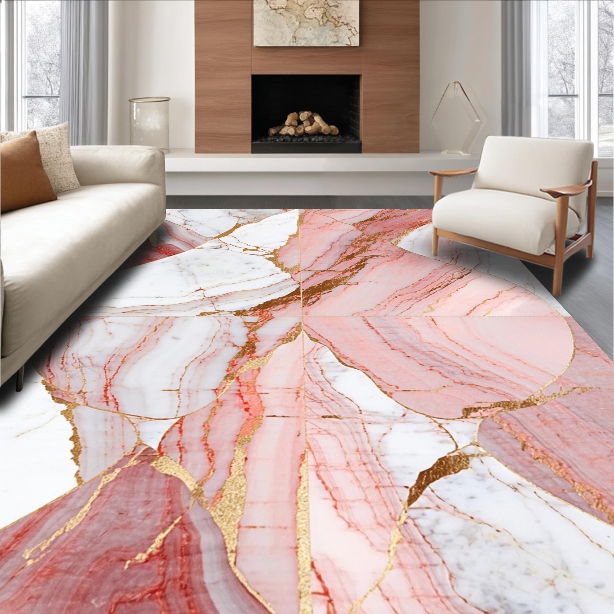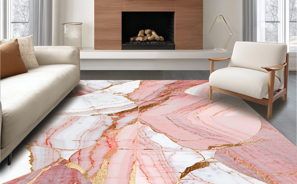 Ultra Soft Area Rug, Non Slip, Stain Resistant, Washable Area Rugs for Living Room, Bedroom, Trendy Marbleized Elegance in Pink(Pink) Overview: