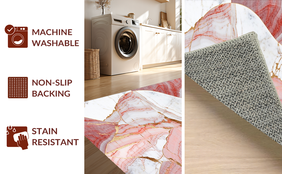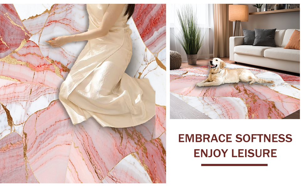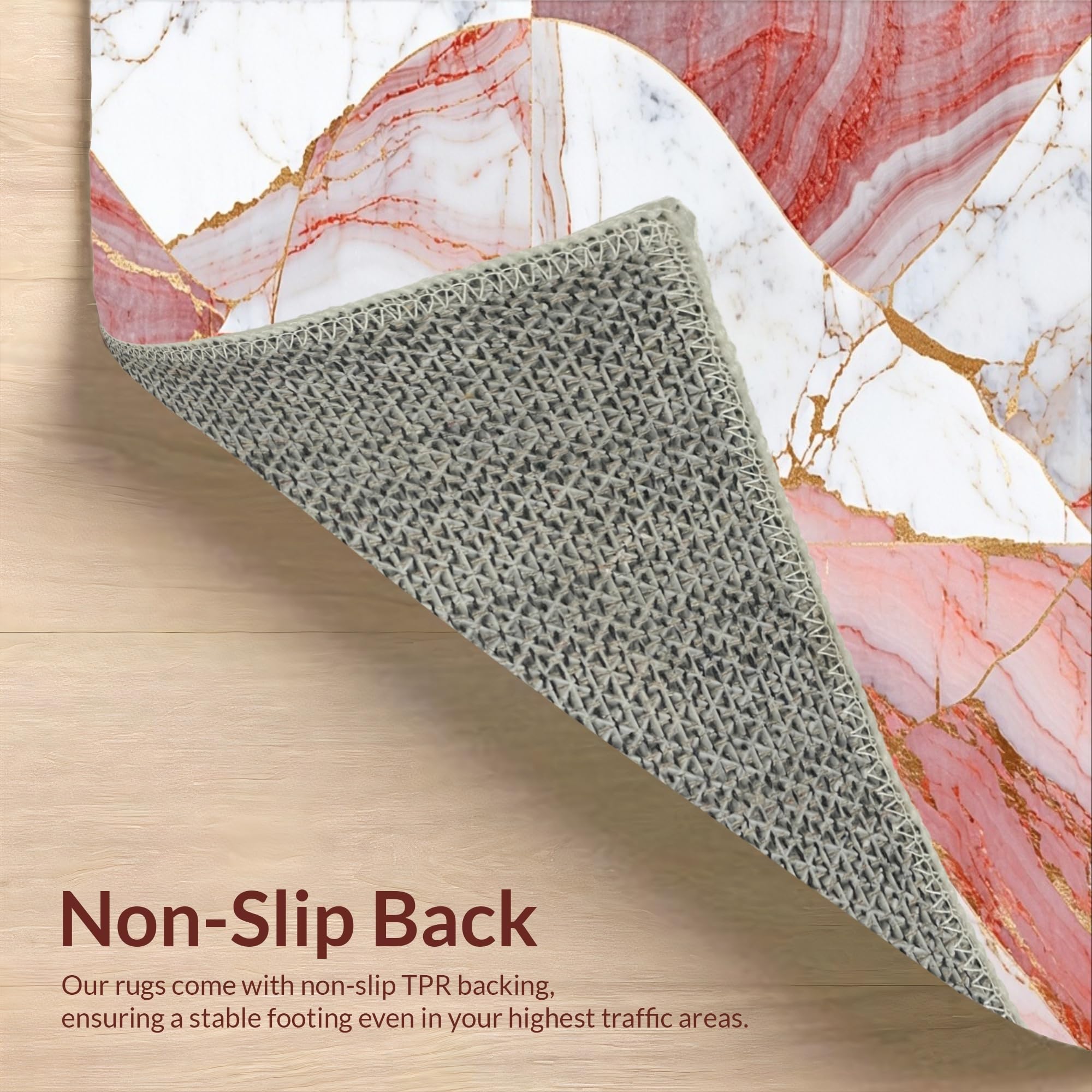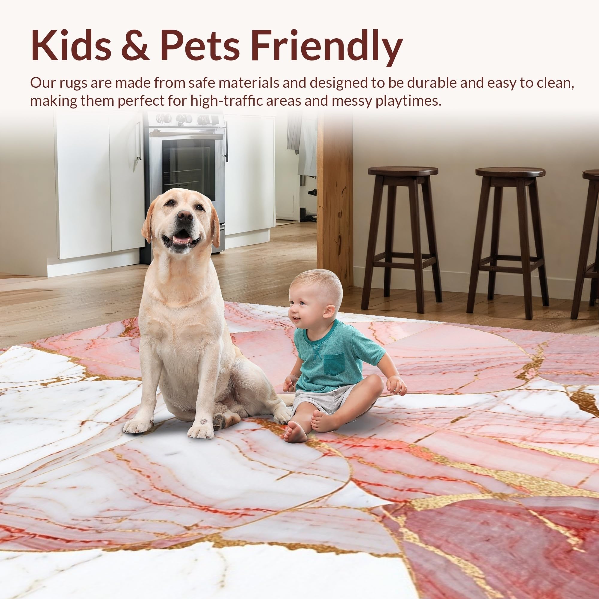 Ultra Soft Area Rug, Non Slip, Stain Resistant, Washable Area Rugs for Living Room, Bedroom, Trendy Marbleized Elegance in Pink(Pink) Overview: