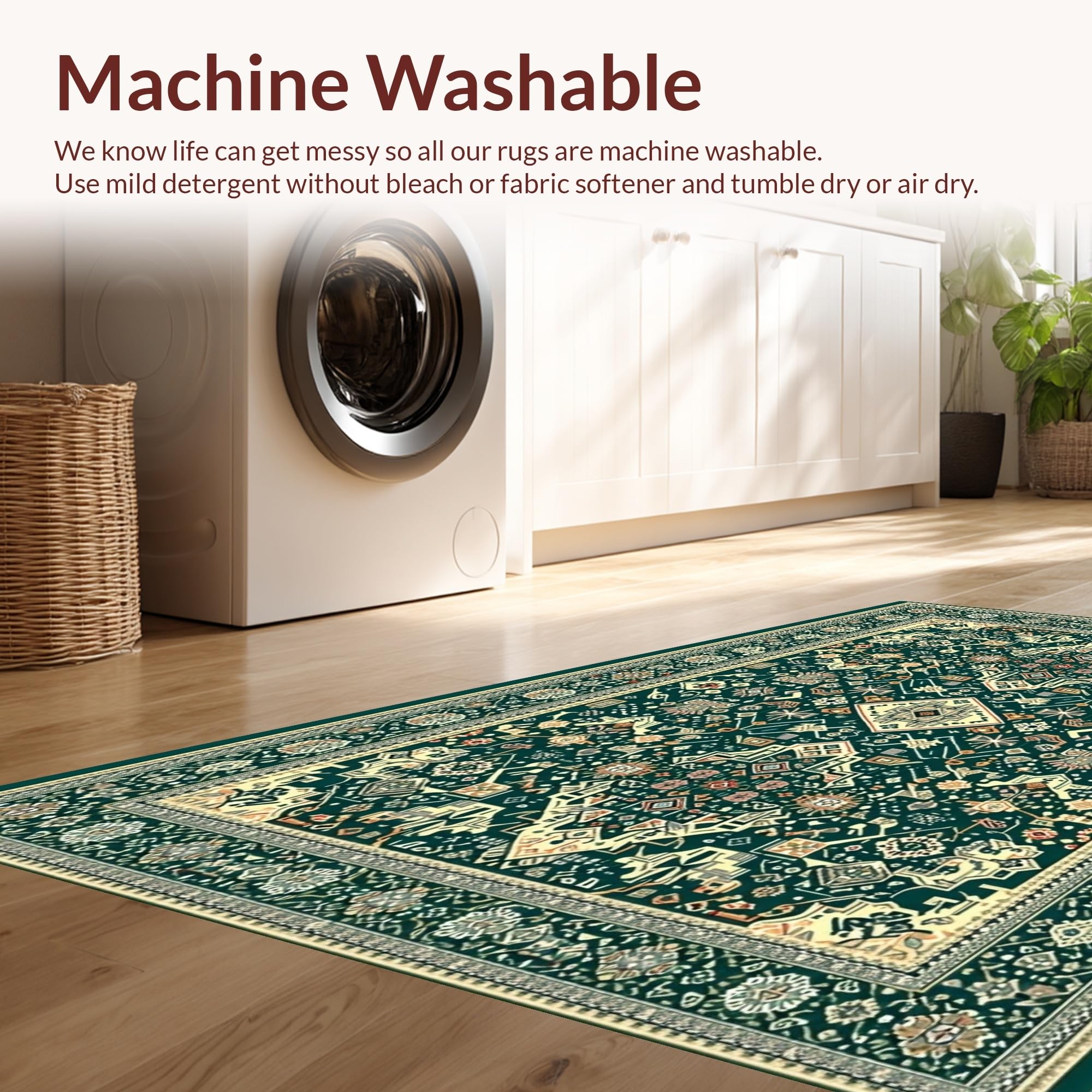 - Machine Washable: Our rugs can be easily thrown in the wash machine.