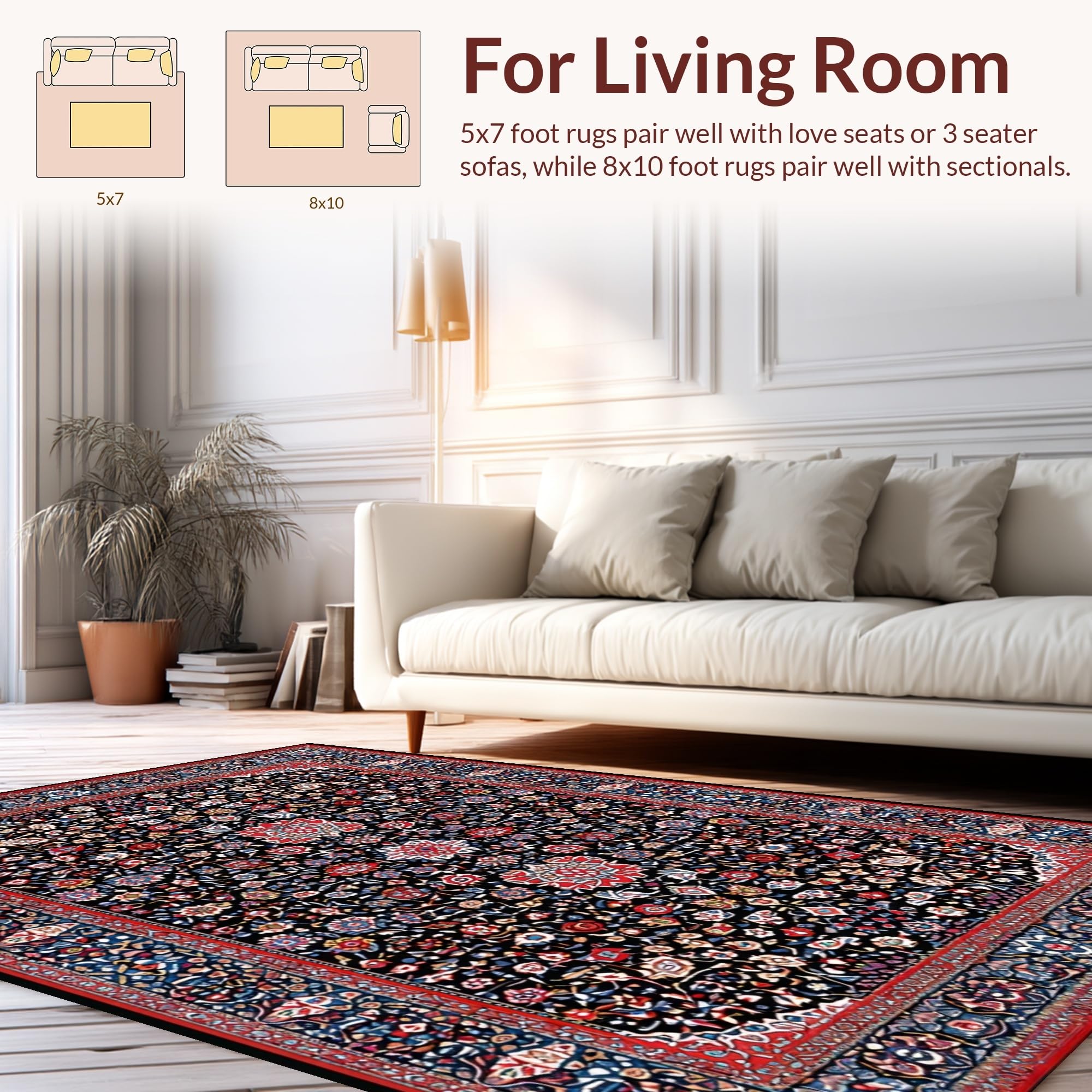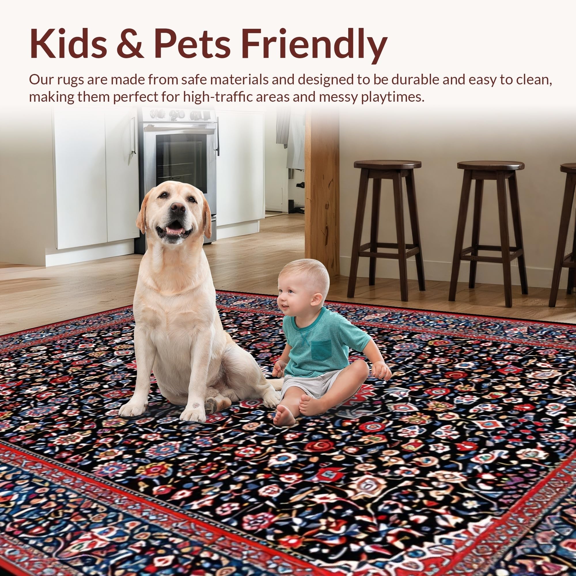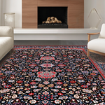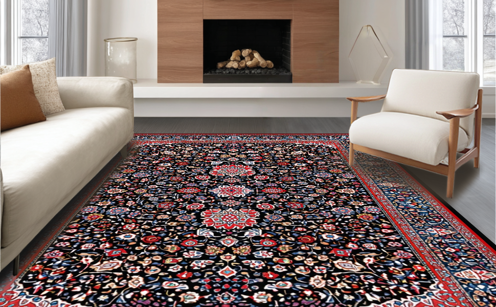 Ultra Soft Area Rug, Non Slip, Stain Resistant, Washable Area Rugs for Living Room, Bedroom, Trendy Monochrome Botanical Pattern(Black) Overview: