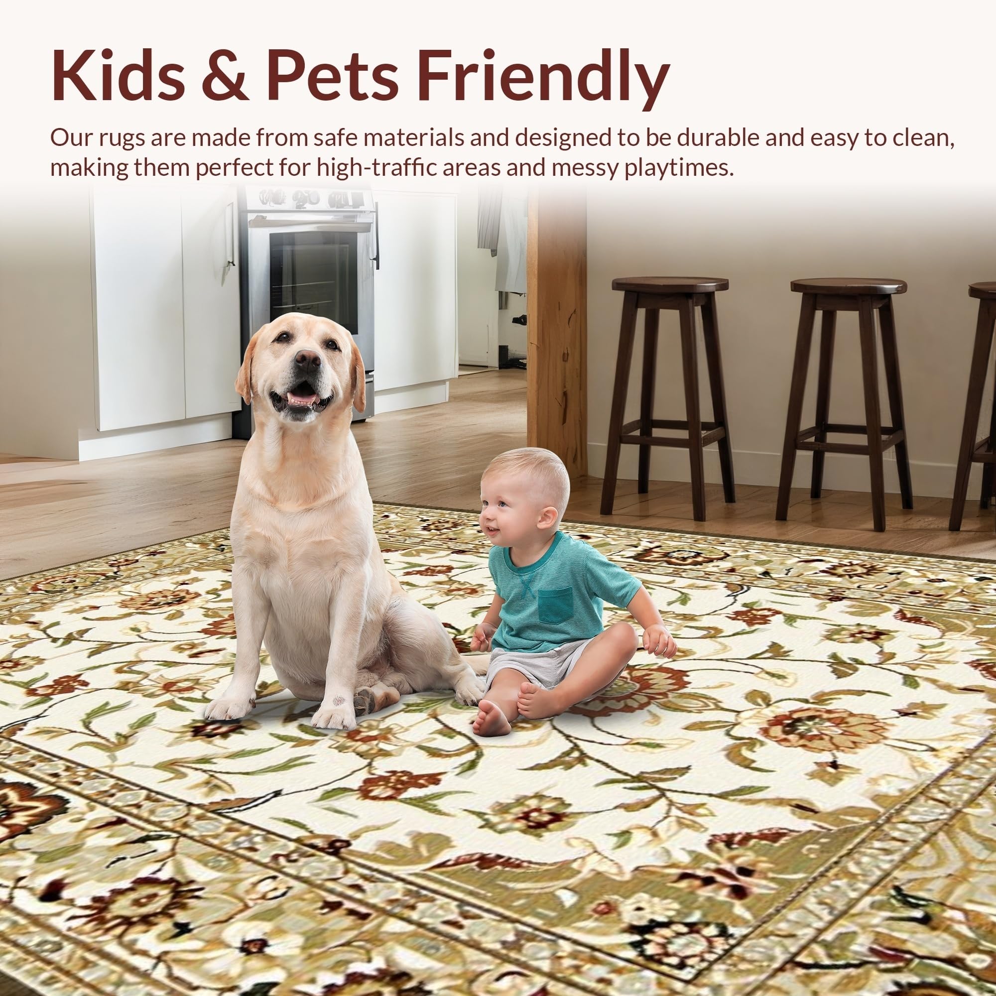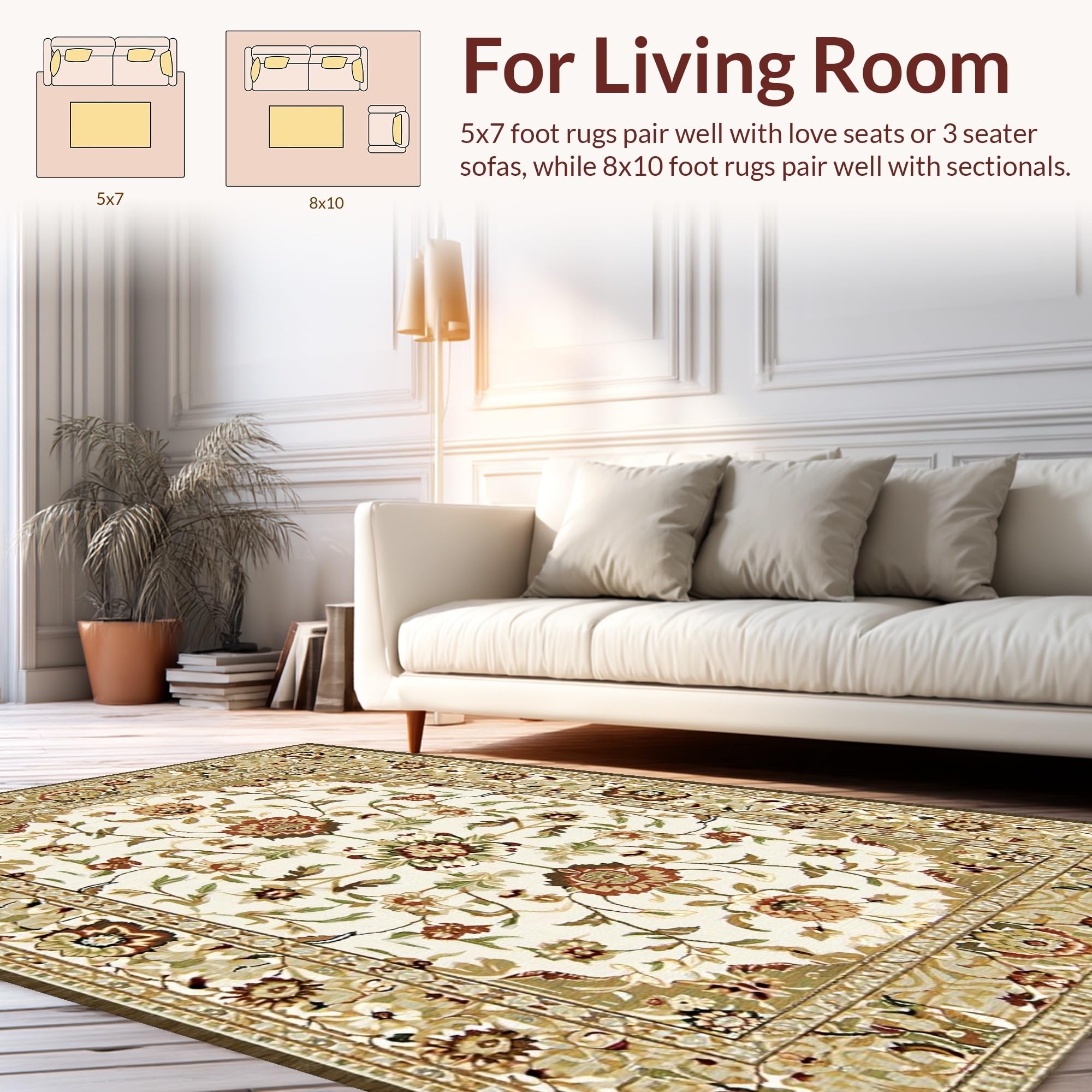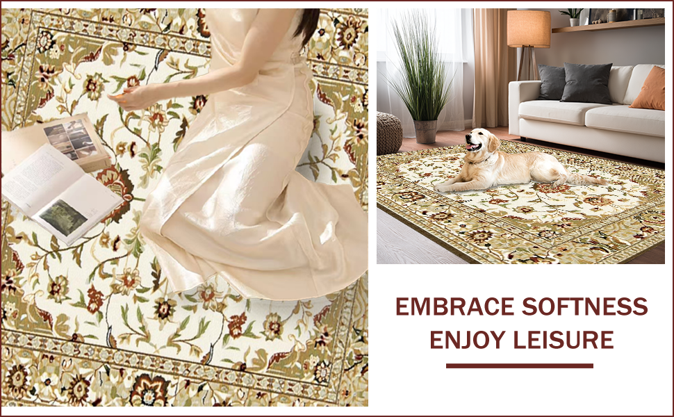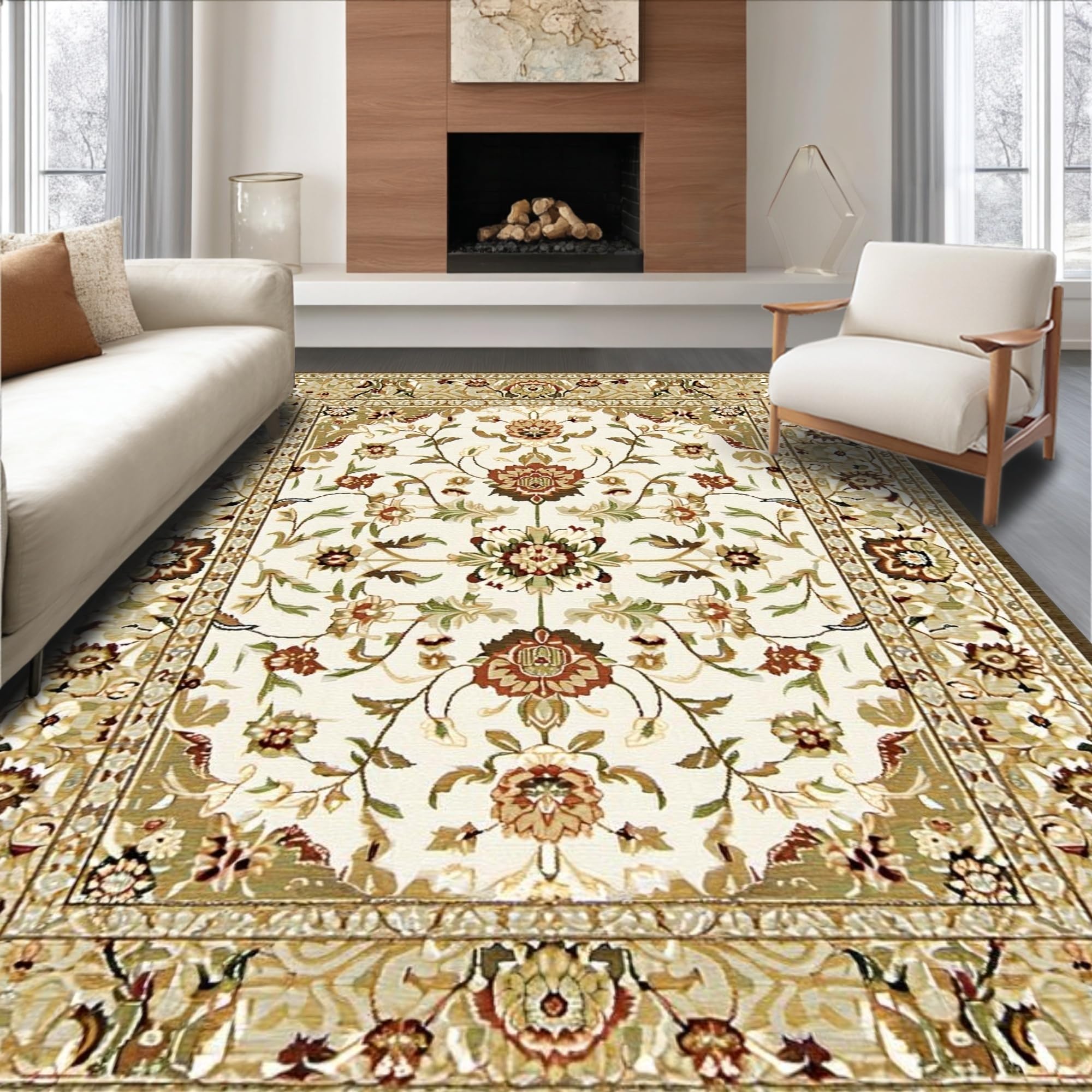 Ultra Soft Area Rug, Non Slip, Stain Resistant, Washable Area Rugs for Living Room, Bedroom, Trendy Nature-Inspired Floral Aesthetic(Beige) Overview: