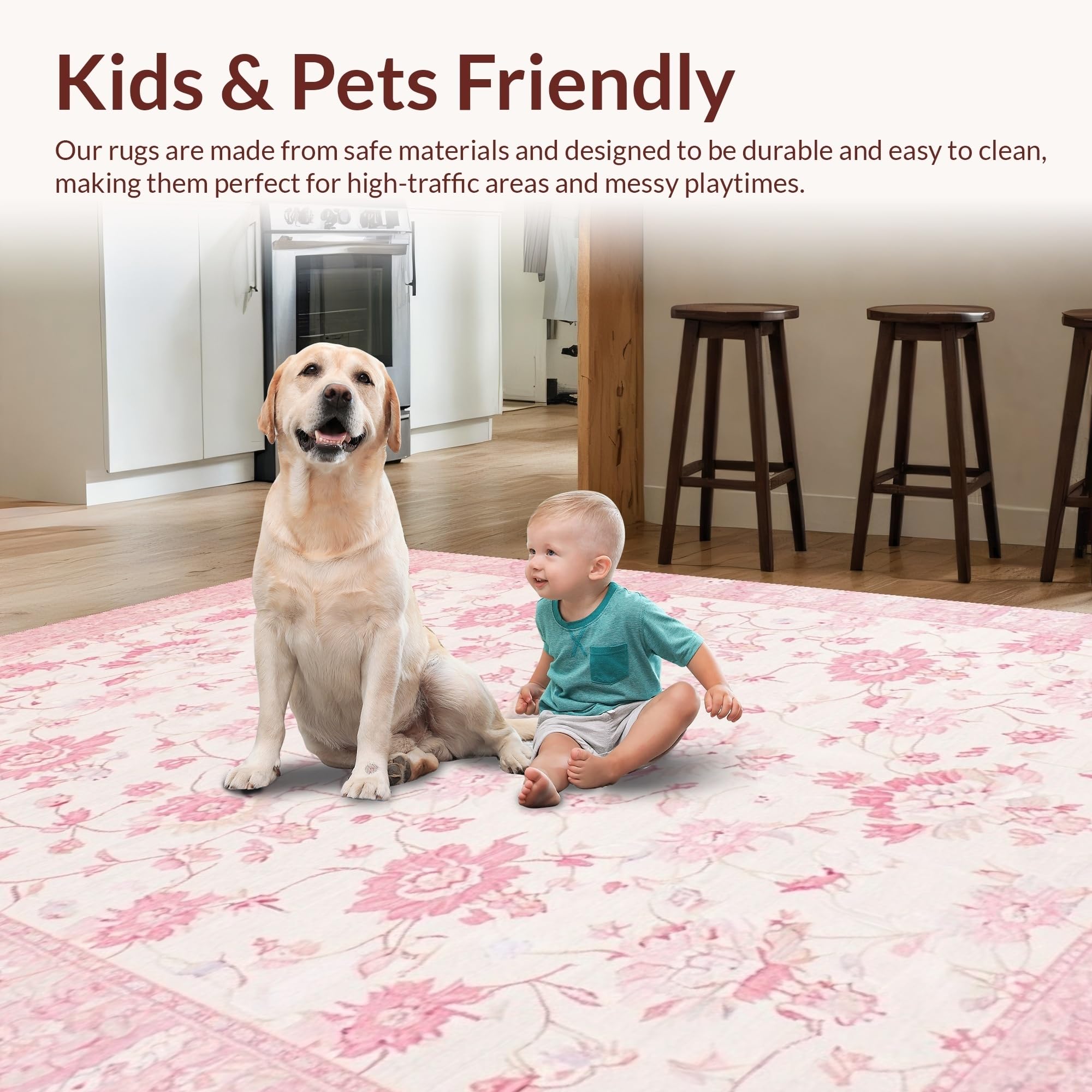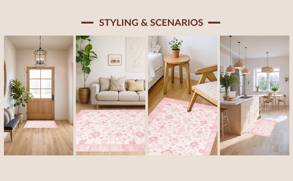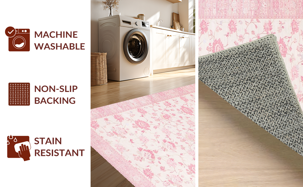 Ultra Soft Area Rug, Non Slip, Stain Resistant, Washable Area Rugs for Living Room, Bedroom, Trendy Pastel Minimalist Vibe(Pink) Overview: