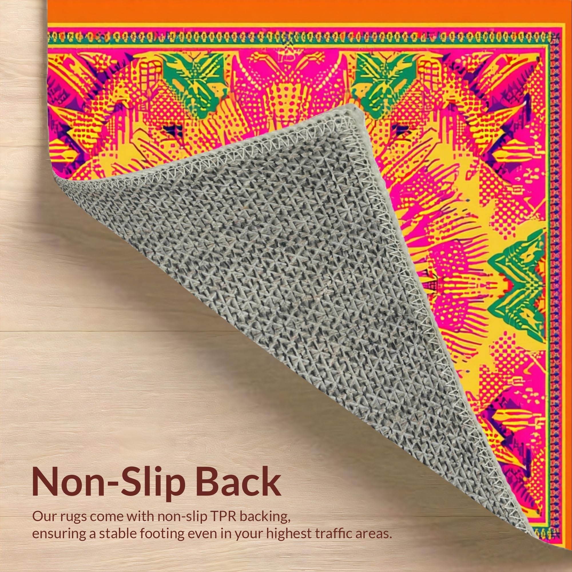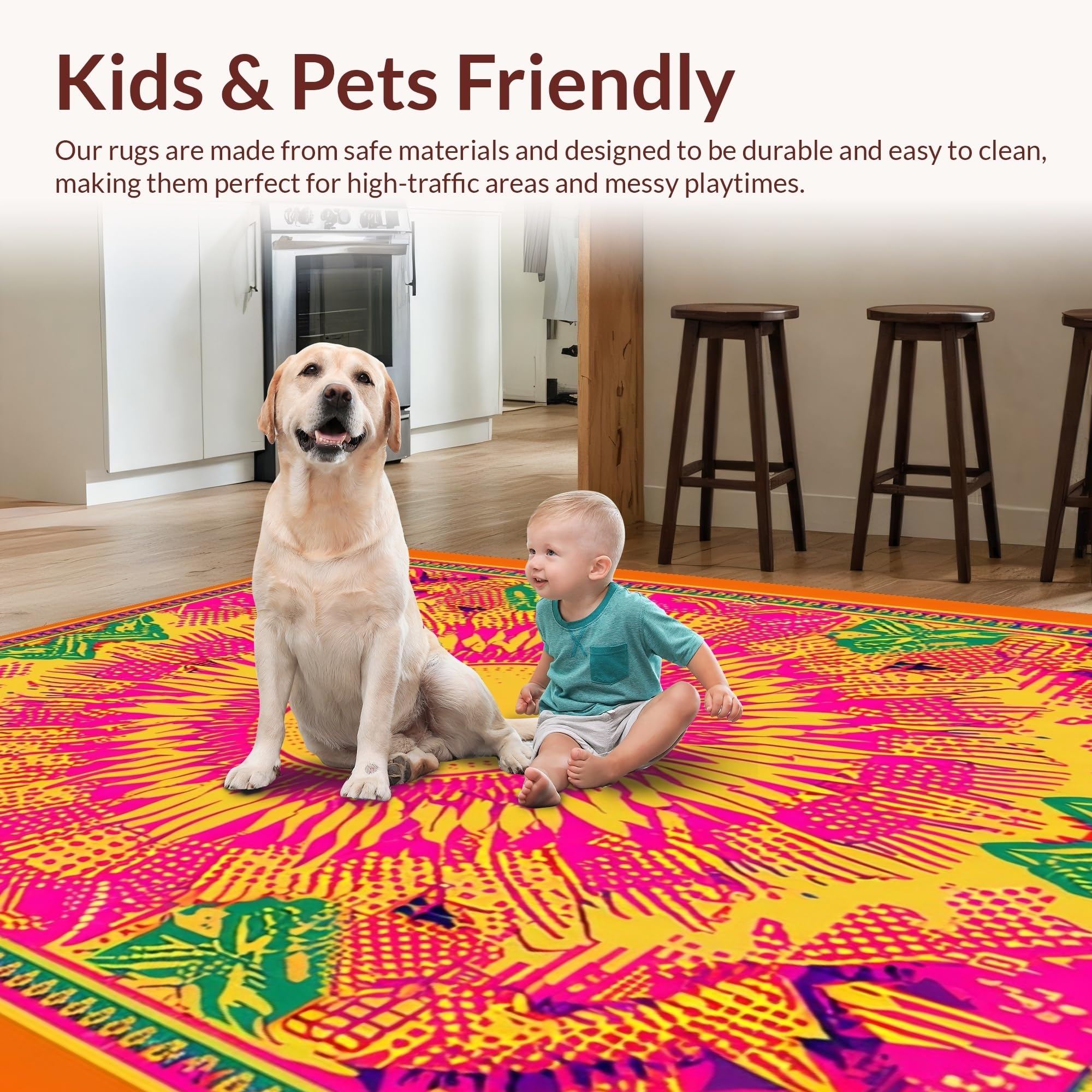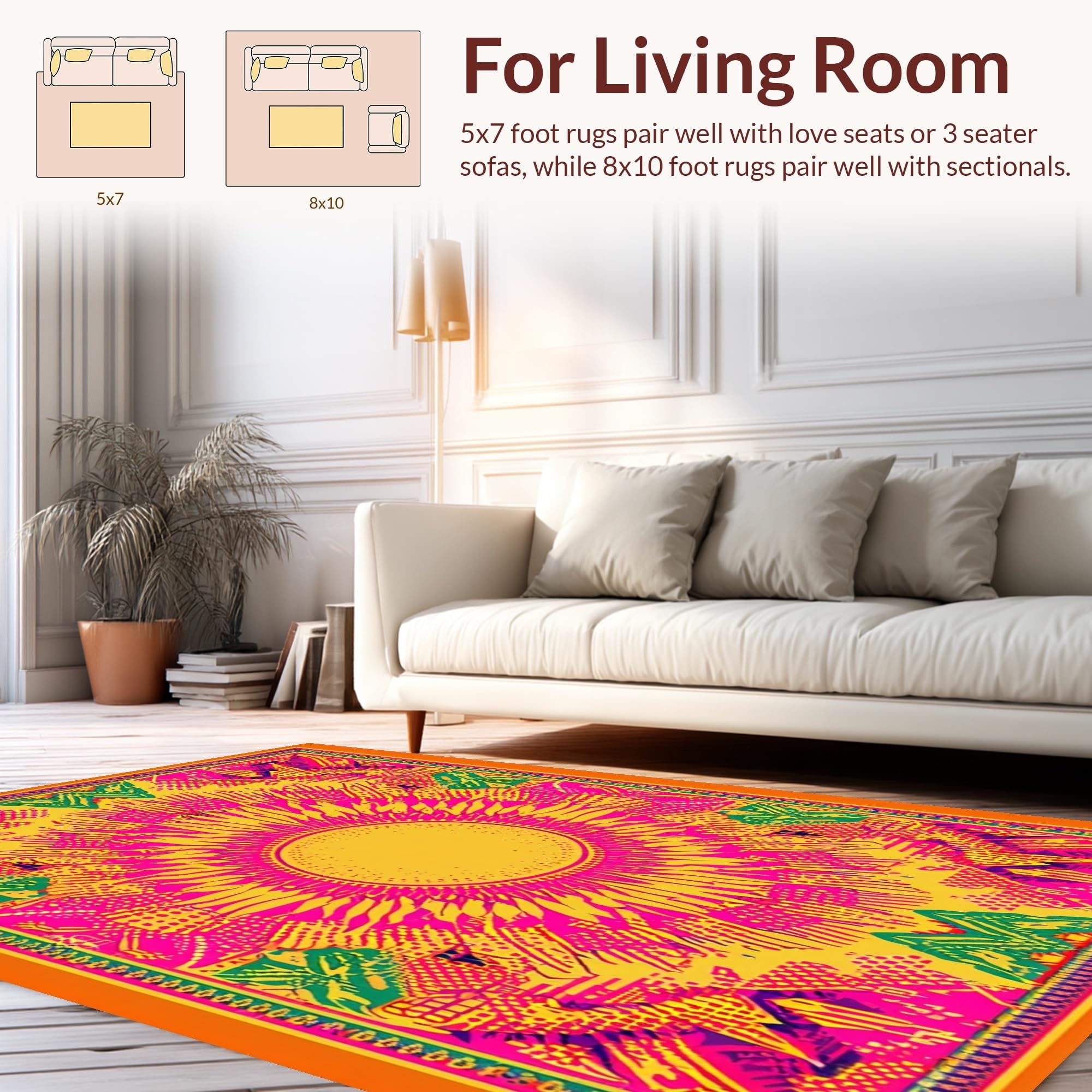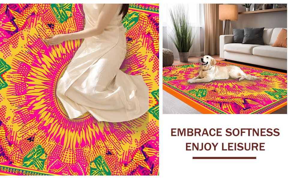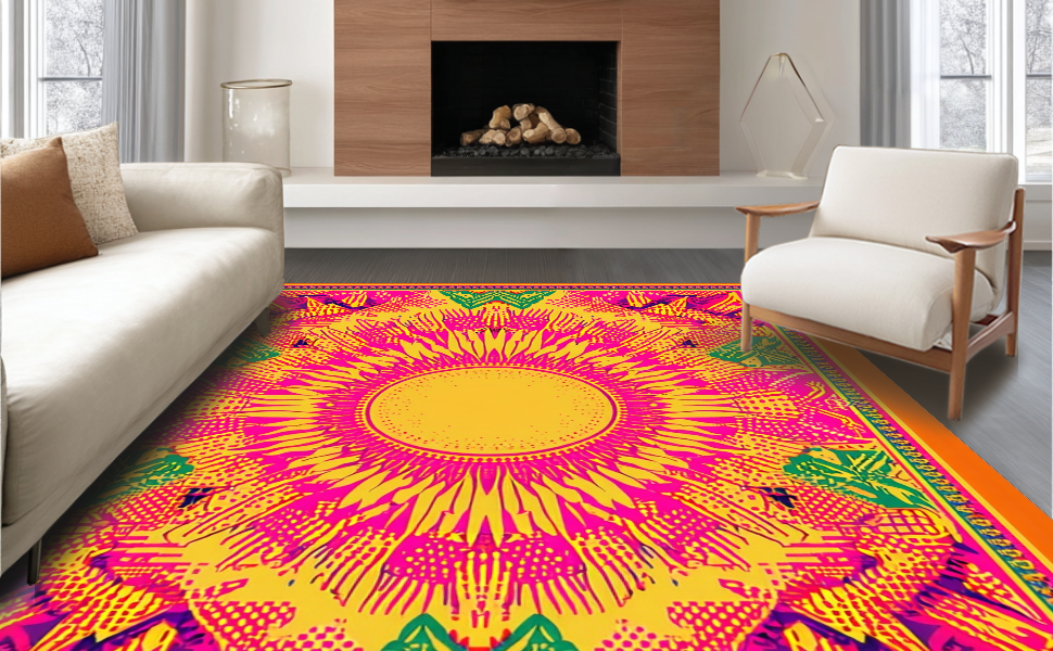 Ultra Soft Area Rug, Non Slip, Stain Resistant, Washable Area Rugs for Living Room, Bedroom, Trendy Quirky Rainbow Visual(Yellow) Overview: