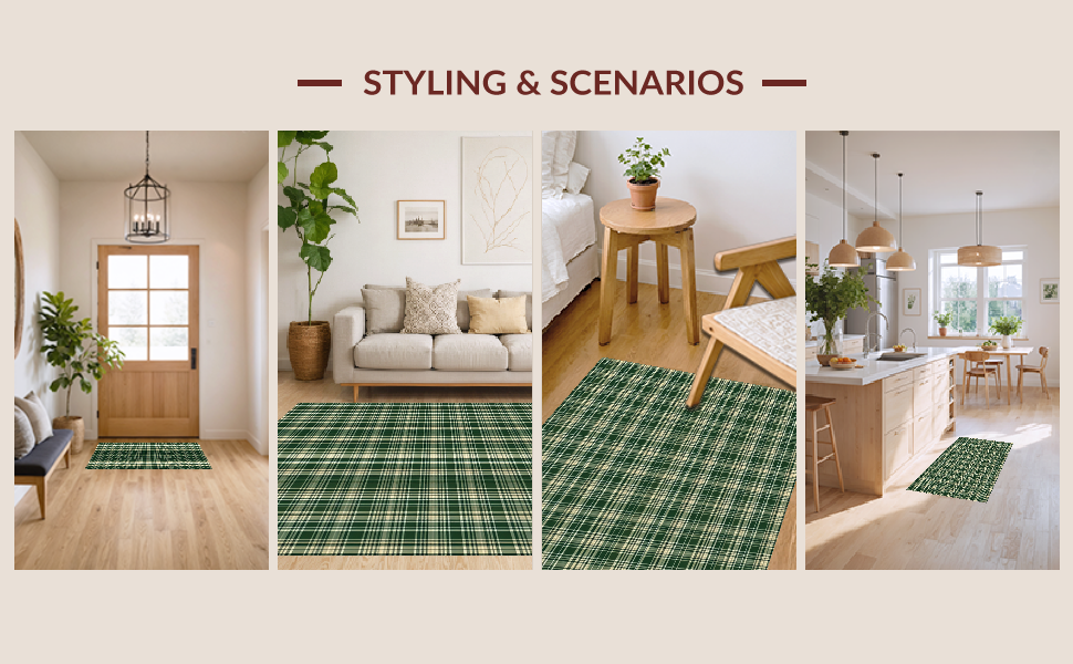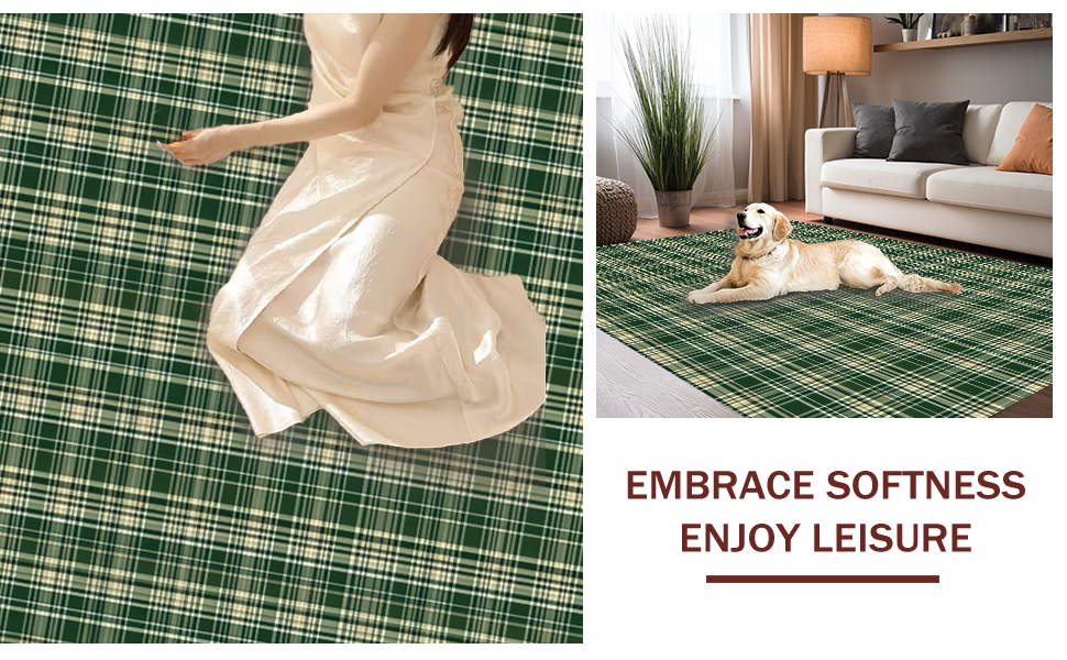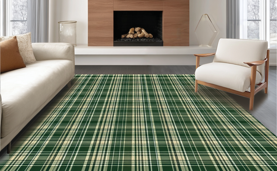 Ultra Soft Area Rug, Non Slip, Stain Resistant, Washable Area Rugs for Living Room, Bedroom, Trendy Rustic Layered Motif(Green) Overview:
