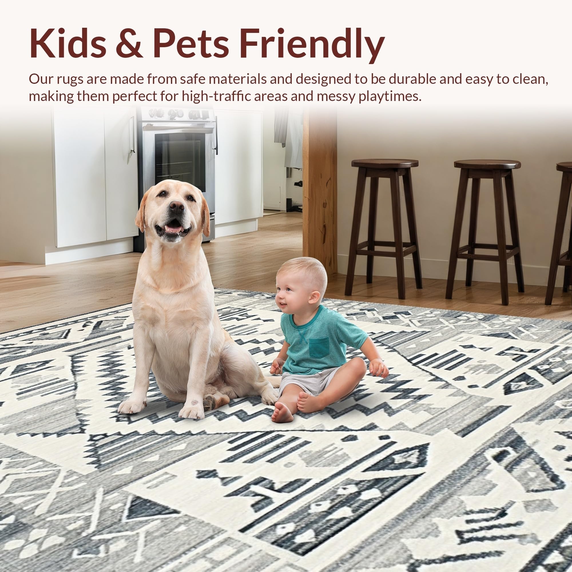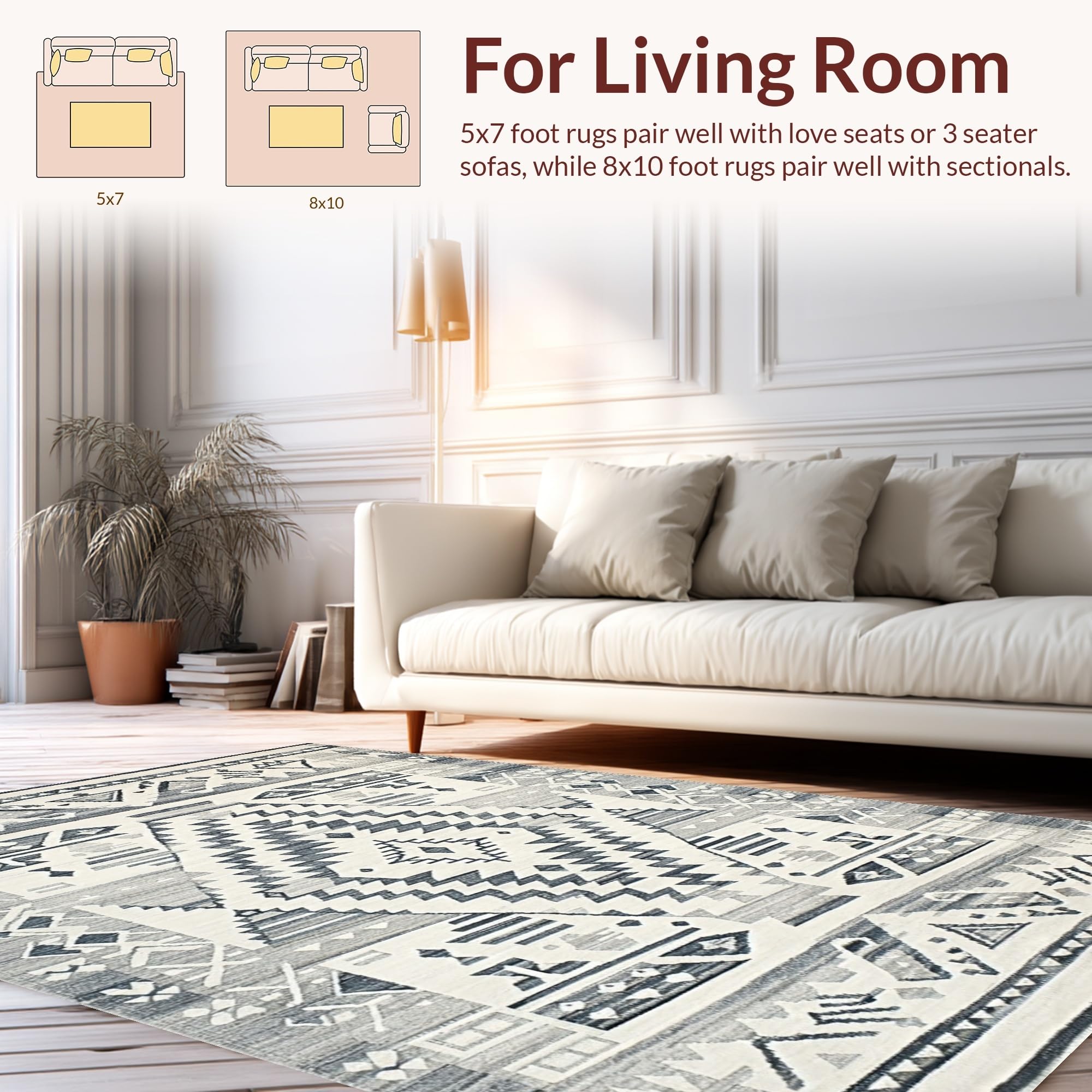 Ultra Soft Area Rug, Non Slip, Stain Resistant, Washable Area Rugs for Living Room, Bedroom, Trendy Textured Linear Composition(Gray) Overview: