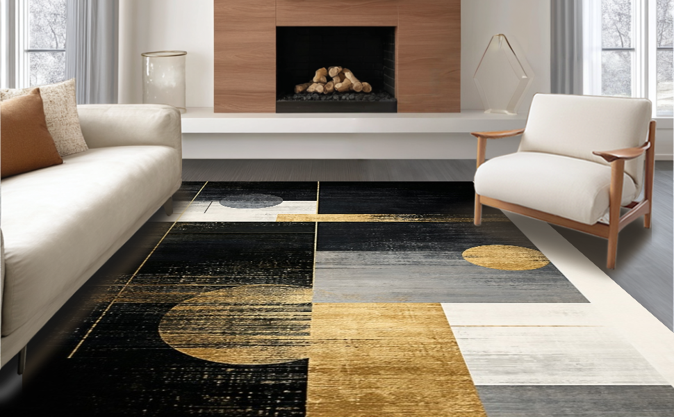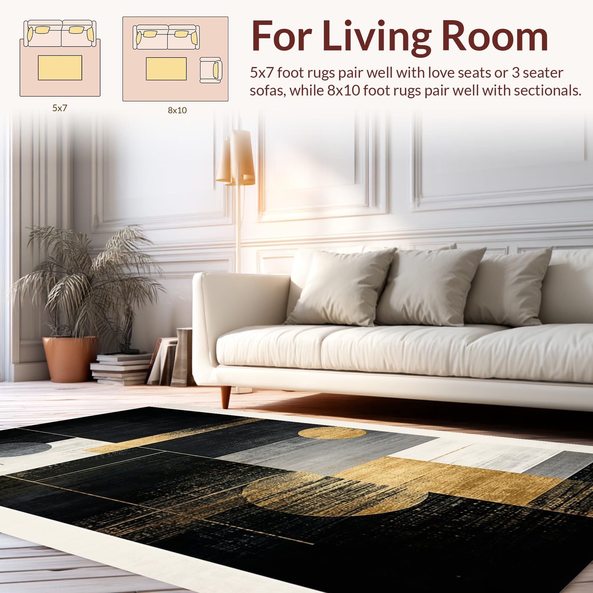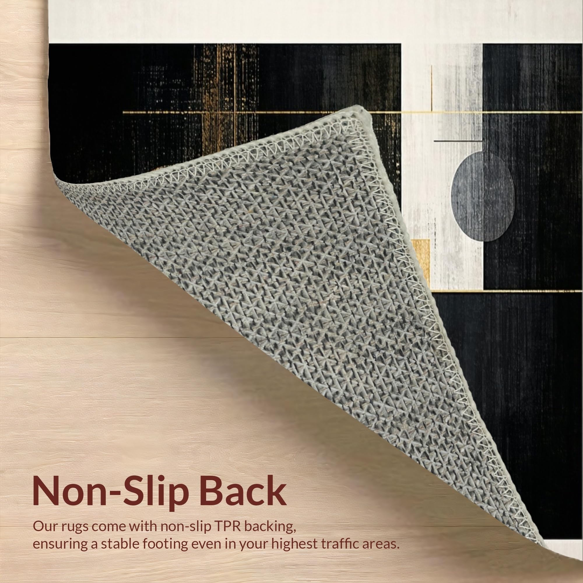 Ultra Soft Area Rug, Non Slip, Stain Resistant, Washable Area Rugs for Living Room, Bedroom, Trendy Vibrant Angular Composition(Black) Overview: