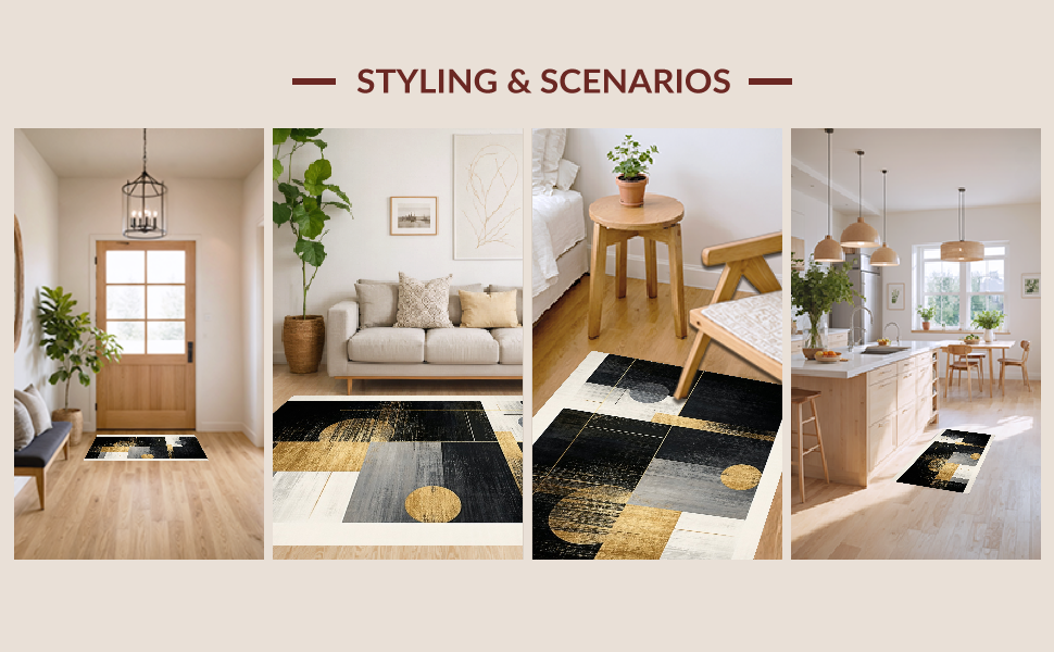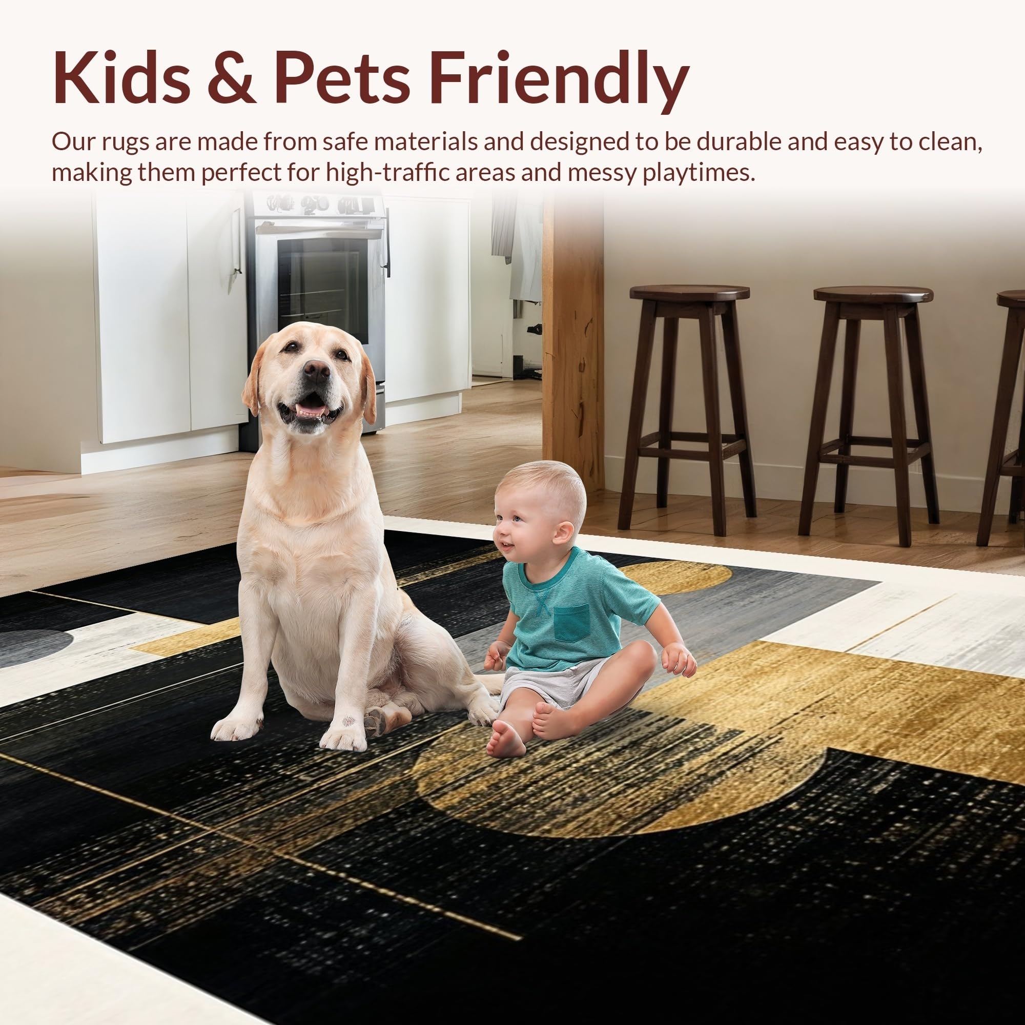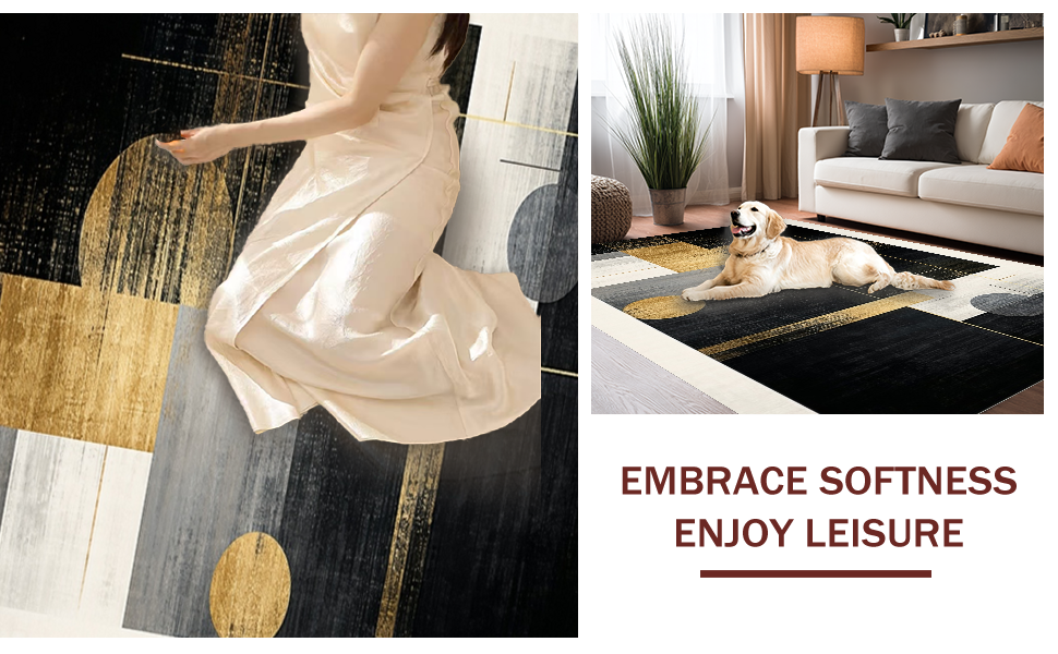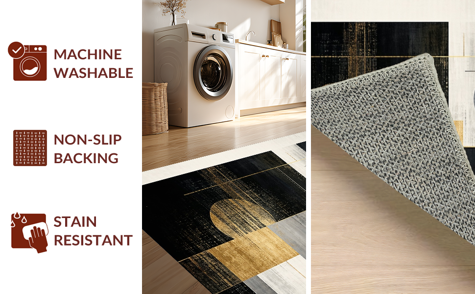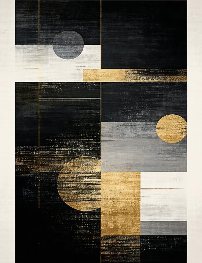 Ultra Soft Area Rug, Non Slip, Stain Resistant, Washable Area Rugs for Living Room, Bedroom, Trendy Vibrant Angular Composition(Black) Overview: