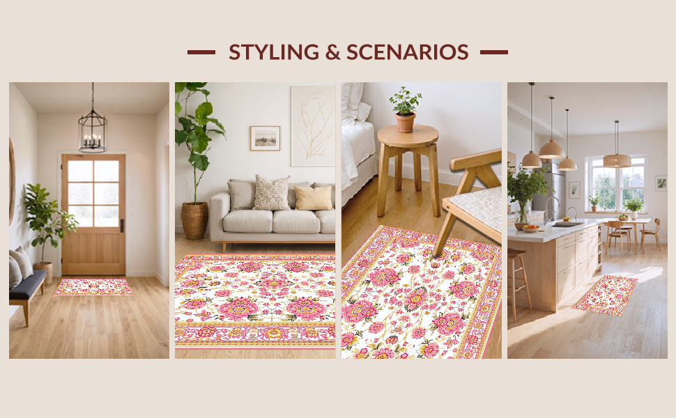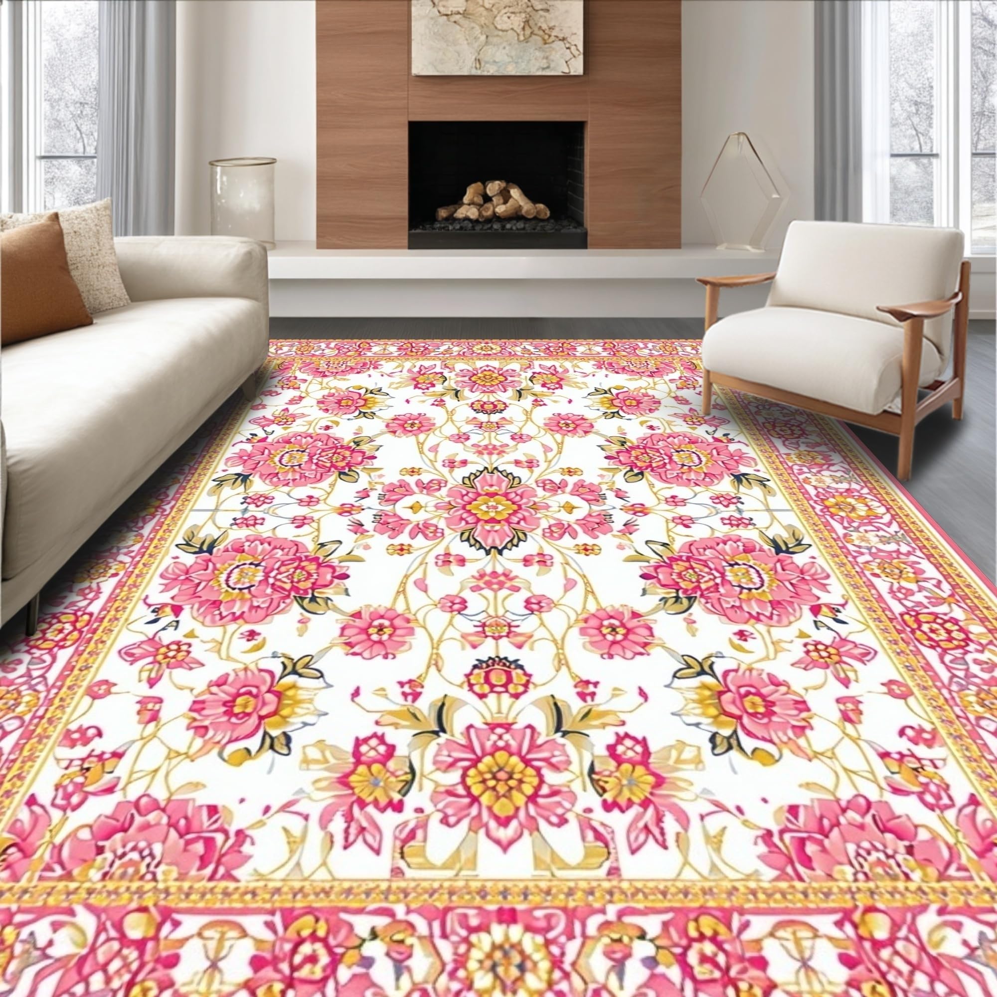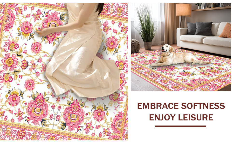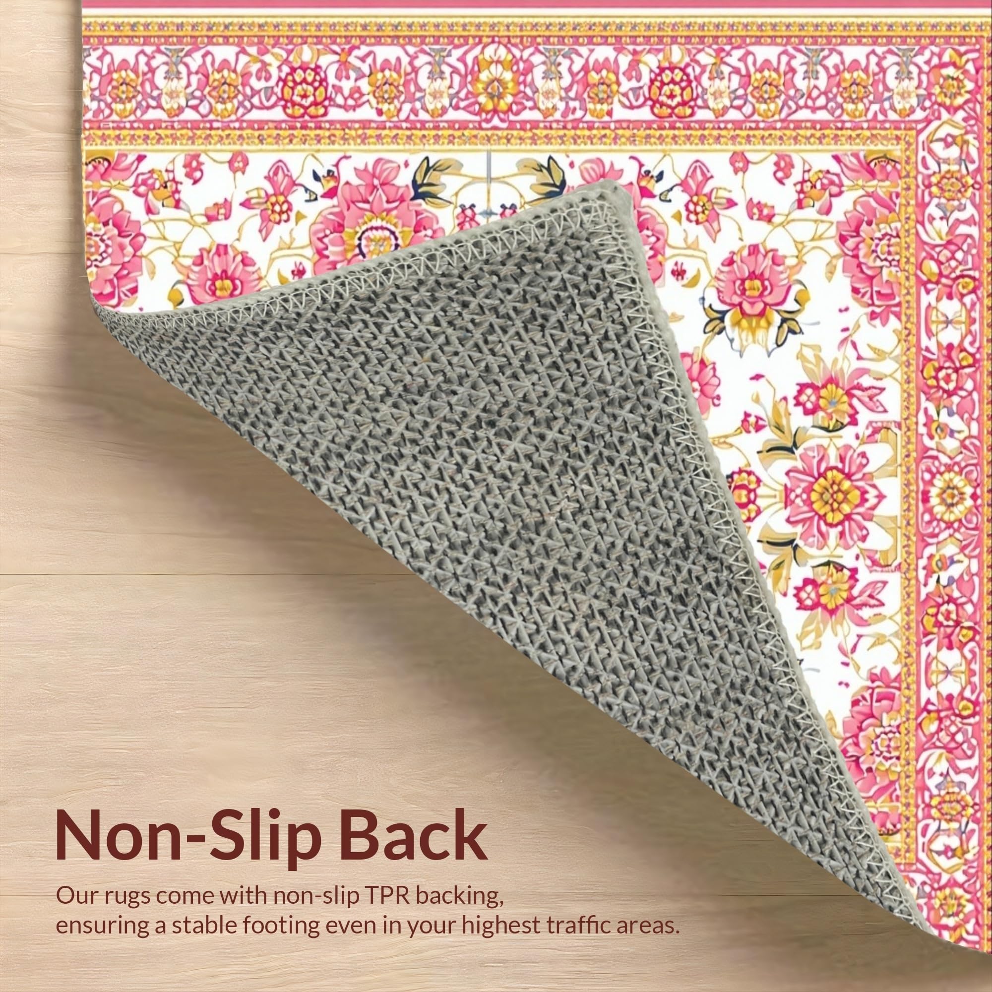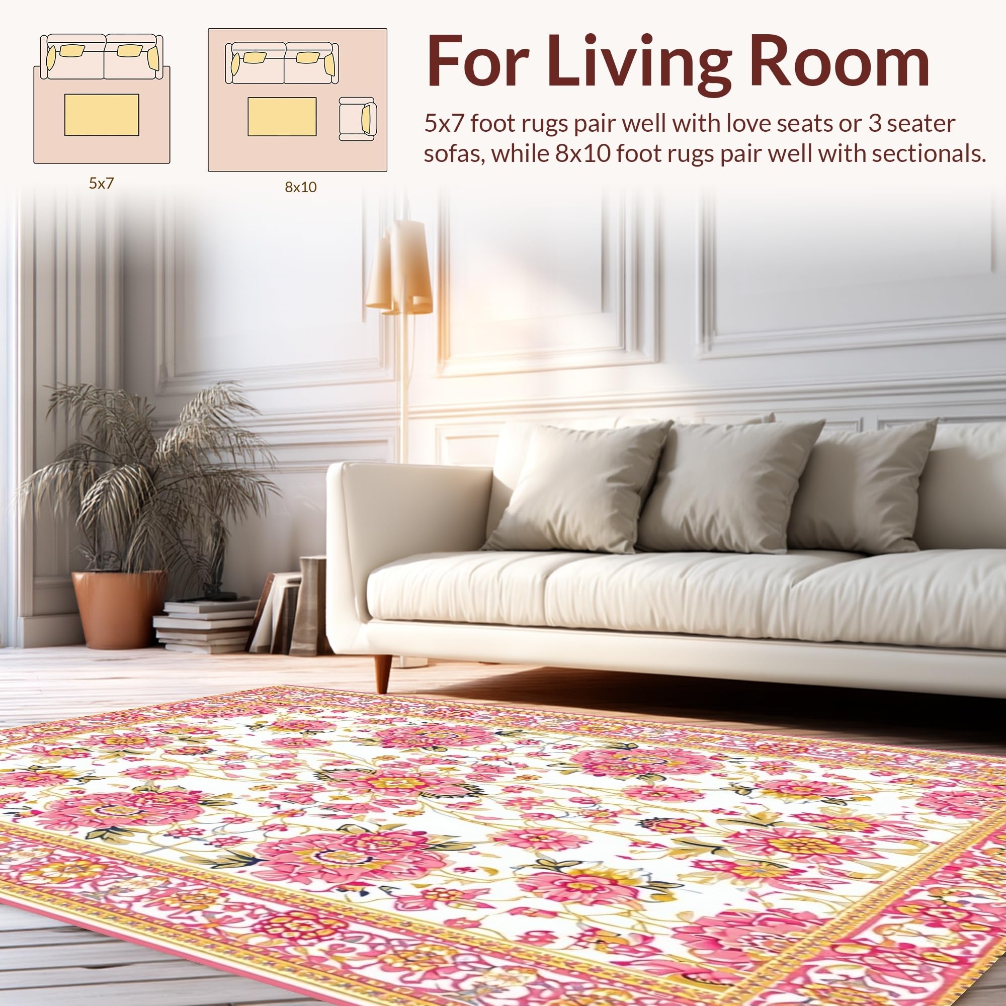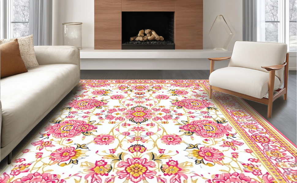 Ultra Soft Area Rug, Non Slip, Stain Resistant, Washable Area Rugs for Living Room, Bedroom, Trendy Vintage Inspired Flora(White) Overview:
