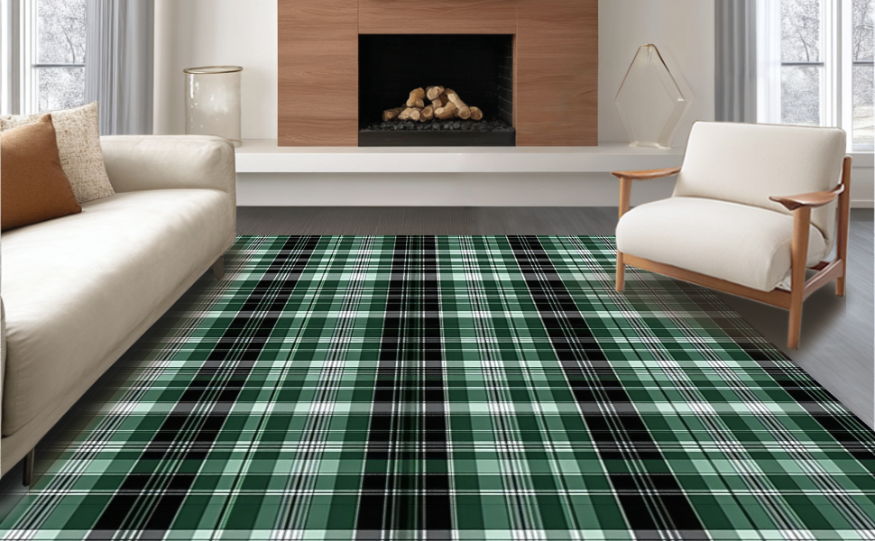 Ultra Soft Area Rug, Non Slip, Stain Resistant, Washable Area Rugs for Living Room, Bedroom, Trendy Vintage-Inspired Lattice Style(Black) Overview:
