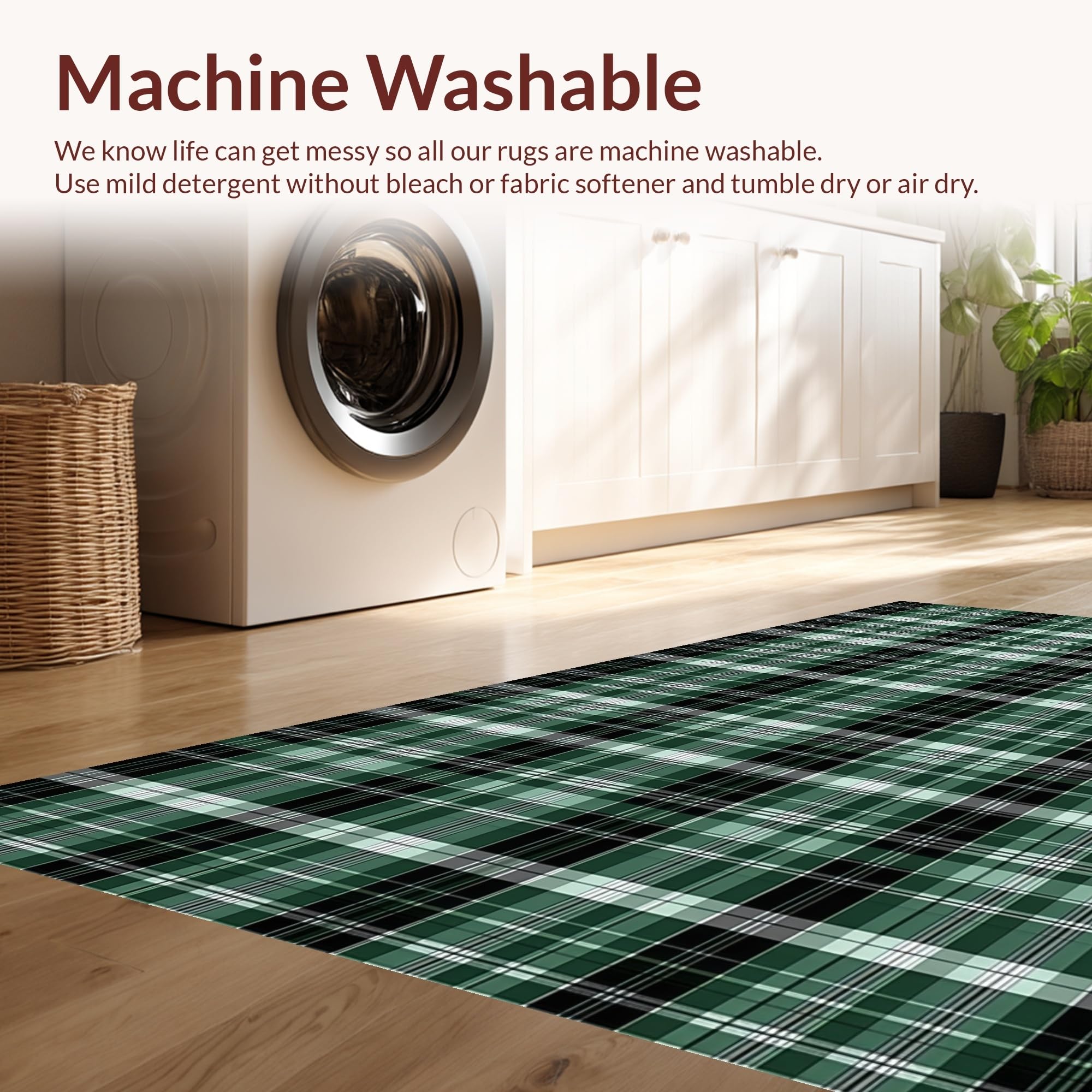 - Machine Washable: Our rugs can be easily thrown in the wash machine.
