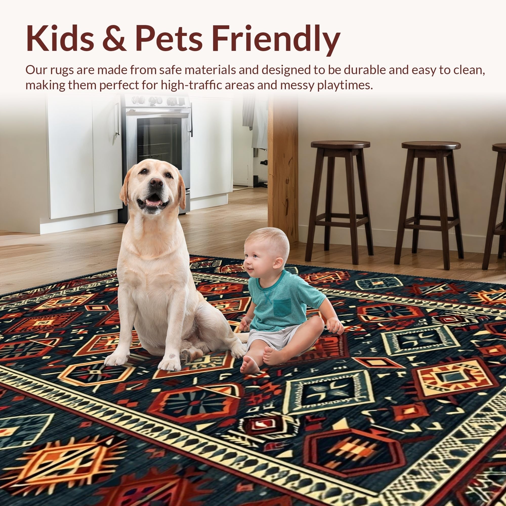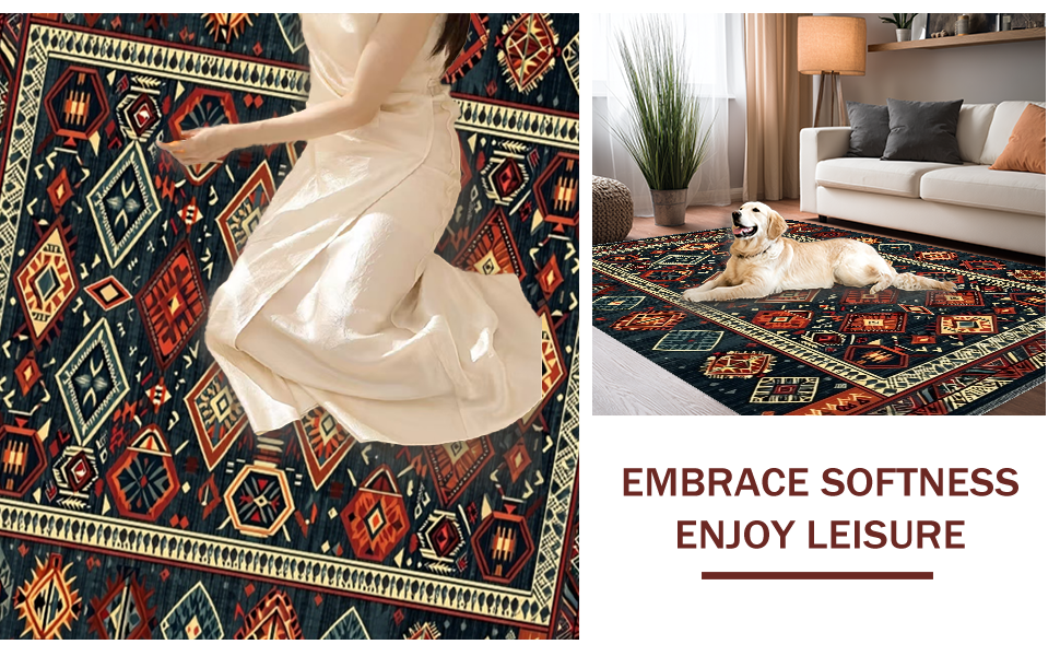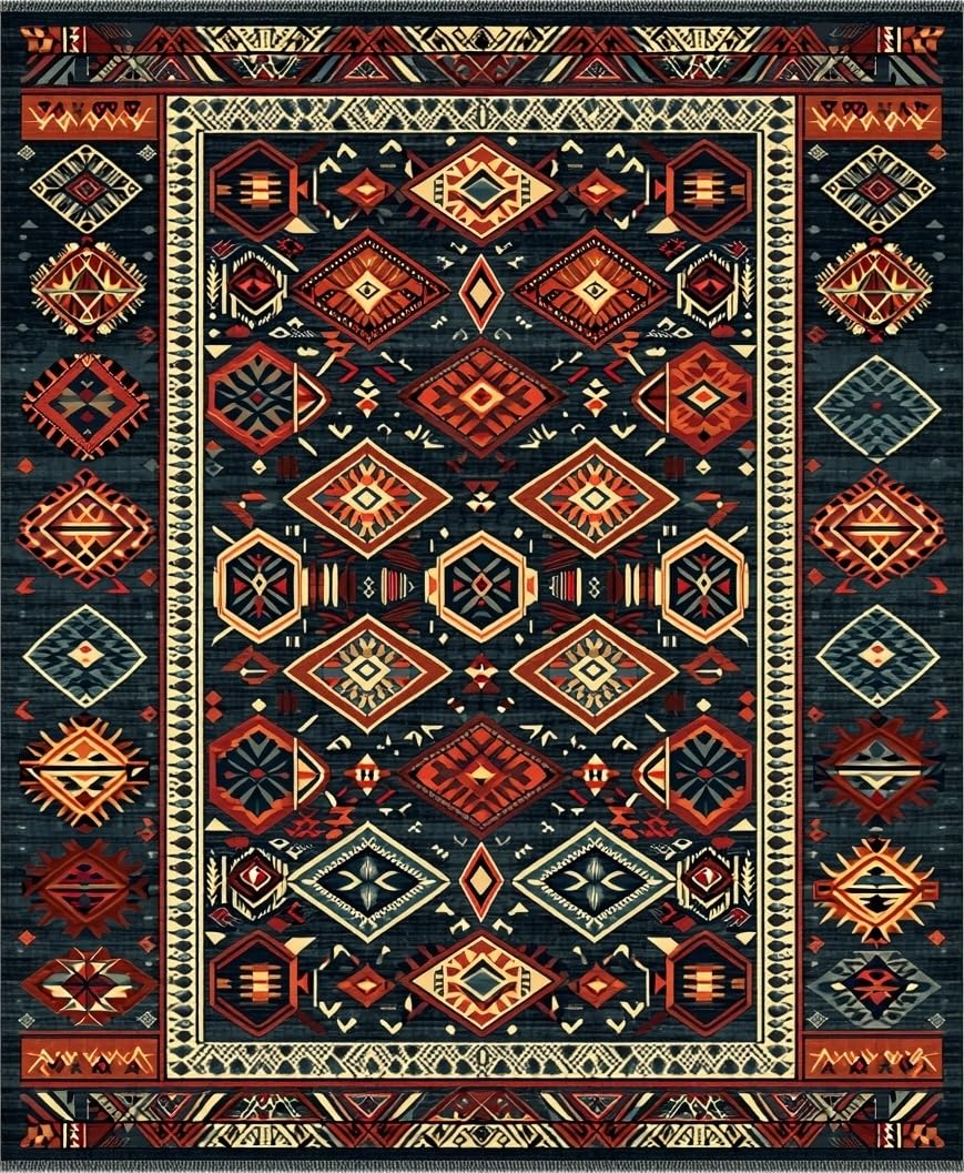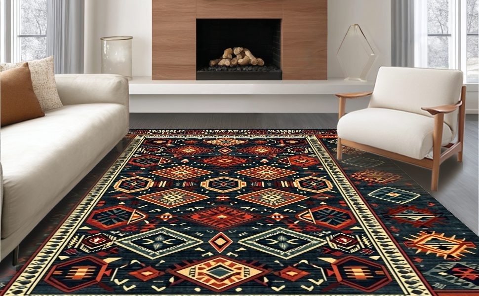 Ultra Soft Area Rug, Non Slip, Stain Resistant, Washable Area Rugs for Living Room, Bedroom, Tribal Monochrome Geometric Aesthetic(Blue) Overview: