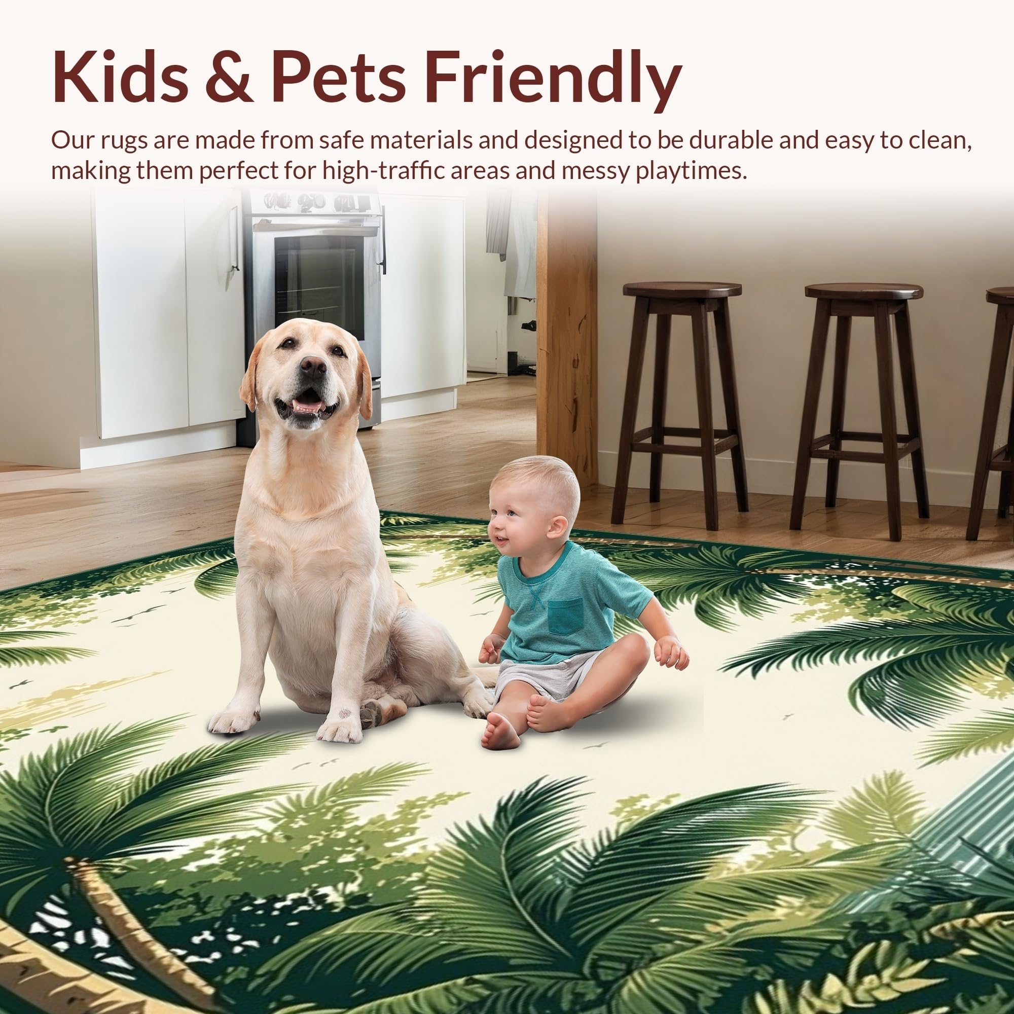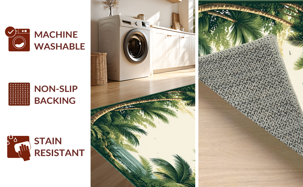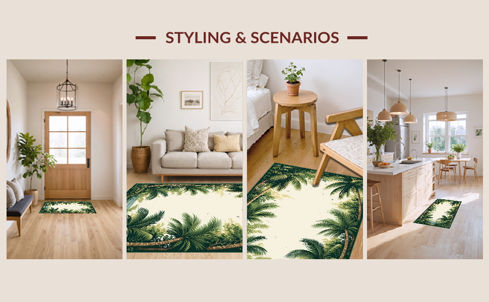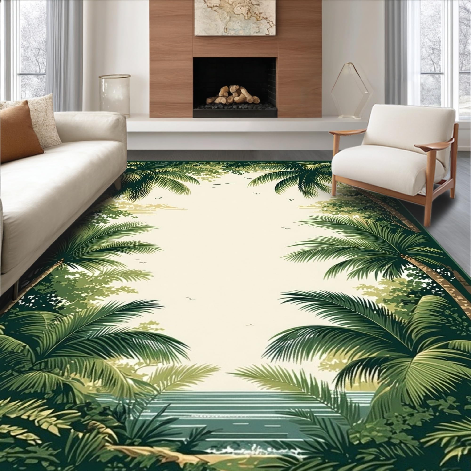 Ultra Soft Area Rug, Non Slip, Stain Resistant, Washable Area Rugs for Living Room, Bedroom, Tropical Coastal Green Tones(Beige) Overview: