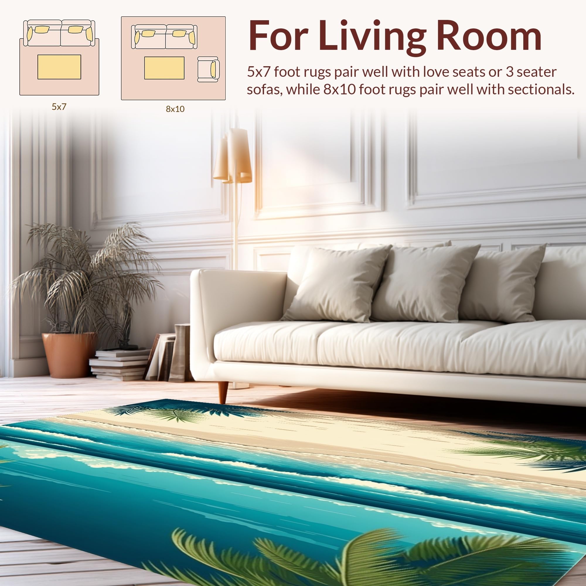 Ultra Soft Area Rug, Non Slip, Stain Resistant, Washable Area Rugs for Living Room, Bedroom, Tropical Coconut Palm Beach Sea Water Natural Scenery Floor Mat(Blue) Overview: