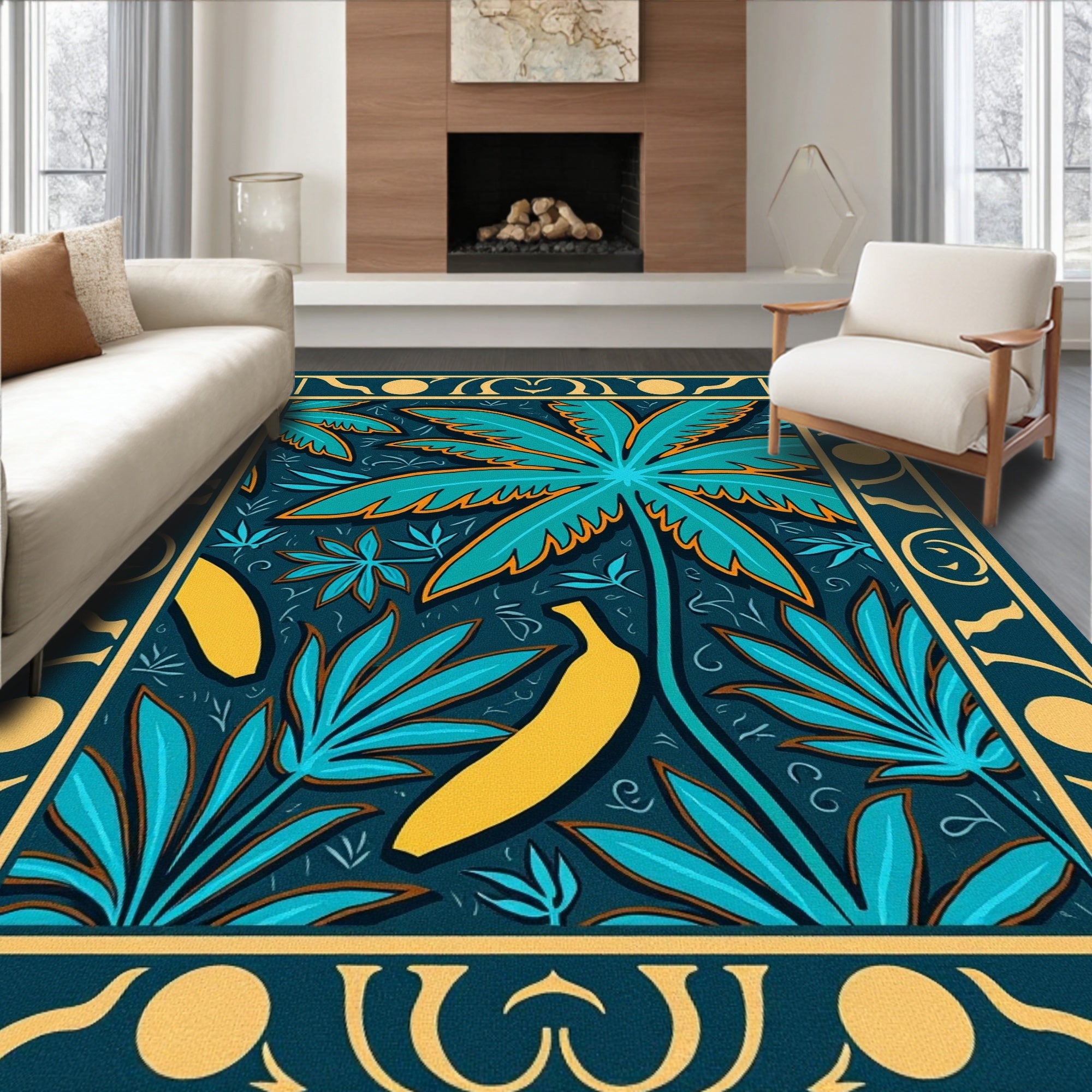 Flatwoven High Traffic Area Rug, Tropical Exotic Jungle Canopy, Non Slip, Stain Resistant, Washable Area Rugs for Living Room, Bedroom (Blue) Overview: