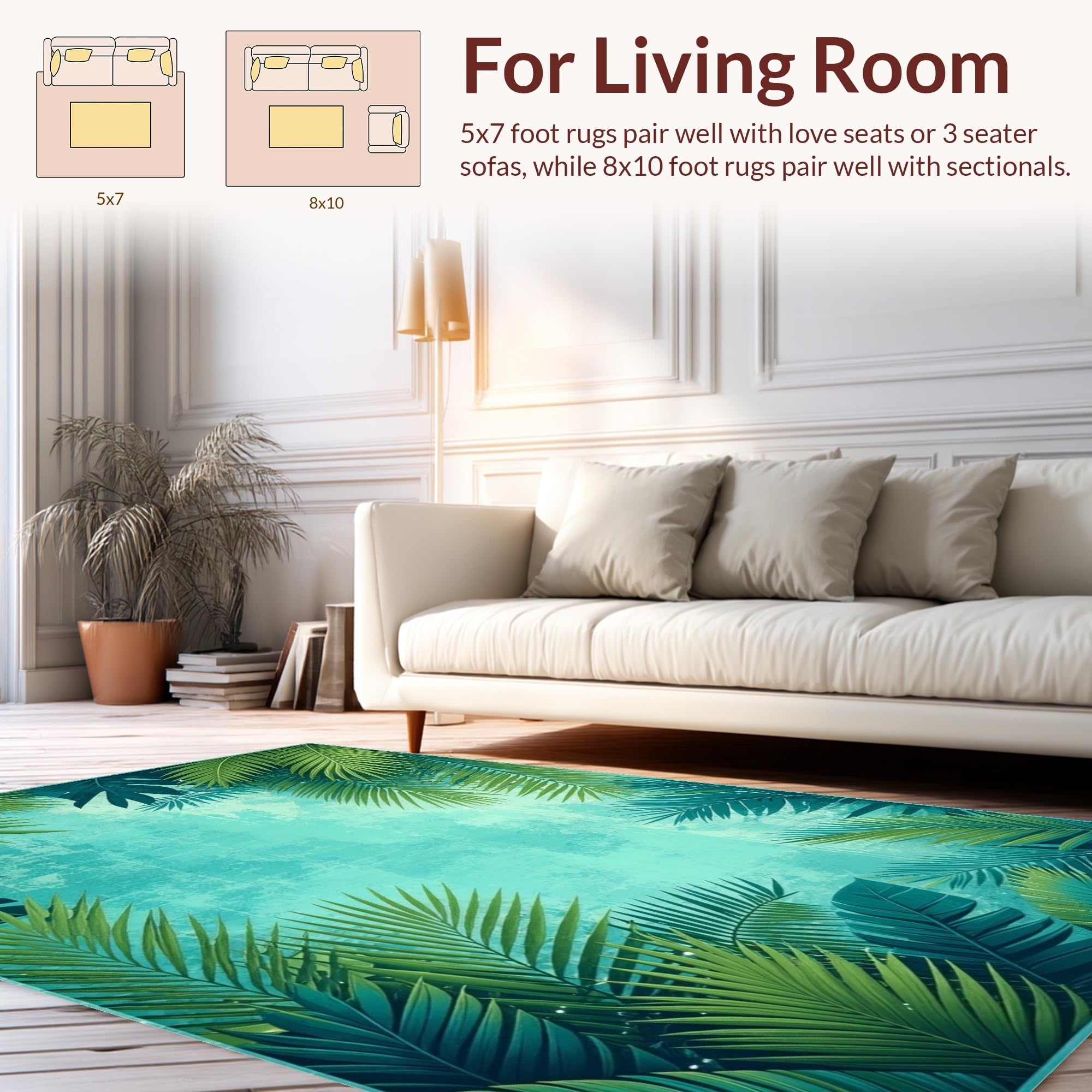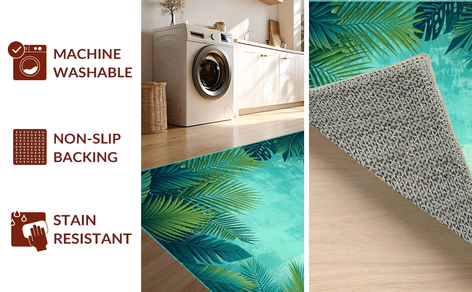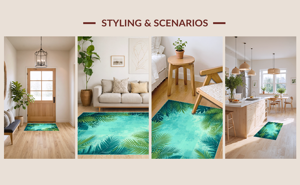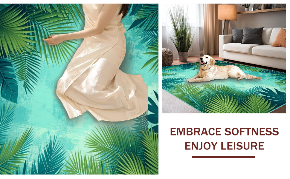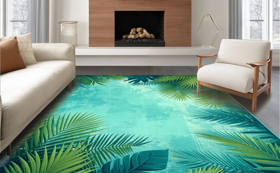 Ultra Soft Area Rug, Non Slip, Stain Resistant, Washable Area Rugs for Living Room, Bedroom, Tropical Floral Mosaic Aesthetic(Green) Overview: