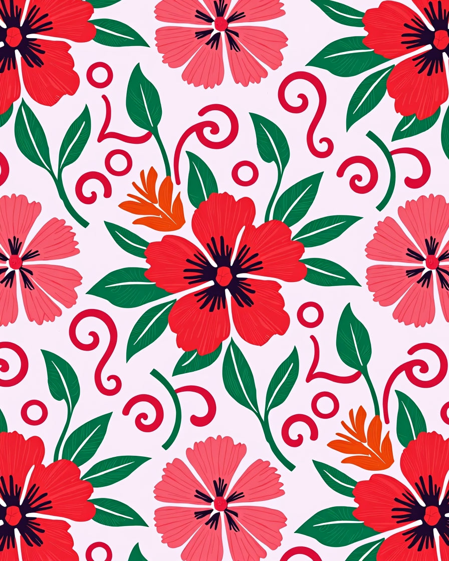 Tropical Hibiscus Scroll Design(Red)