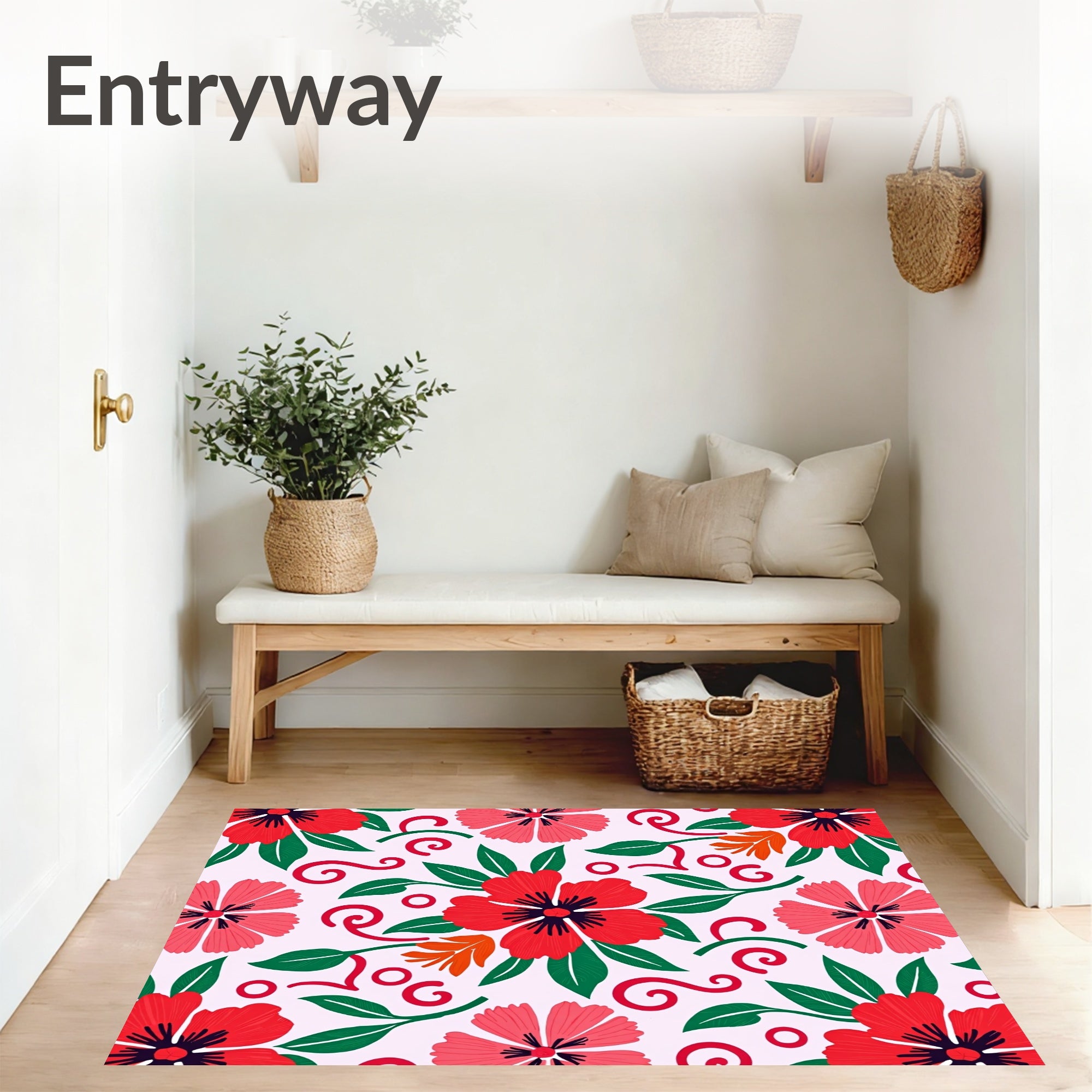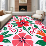 Flatwoven High Traffic Area Rug, Tropical Hibiscus Scroll Design, Non Slip, Stain Resistant, Washable Area Rugs for Living Room, Bedroom (Red) Overview: