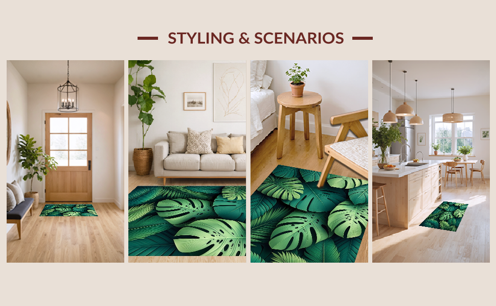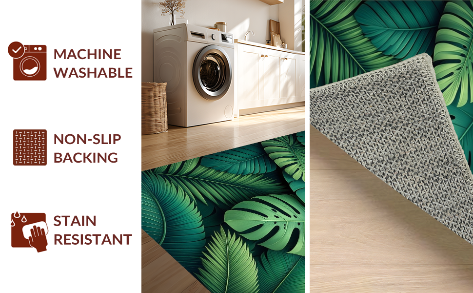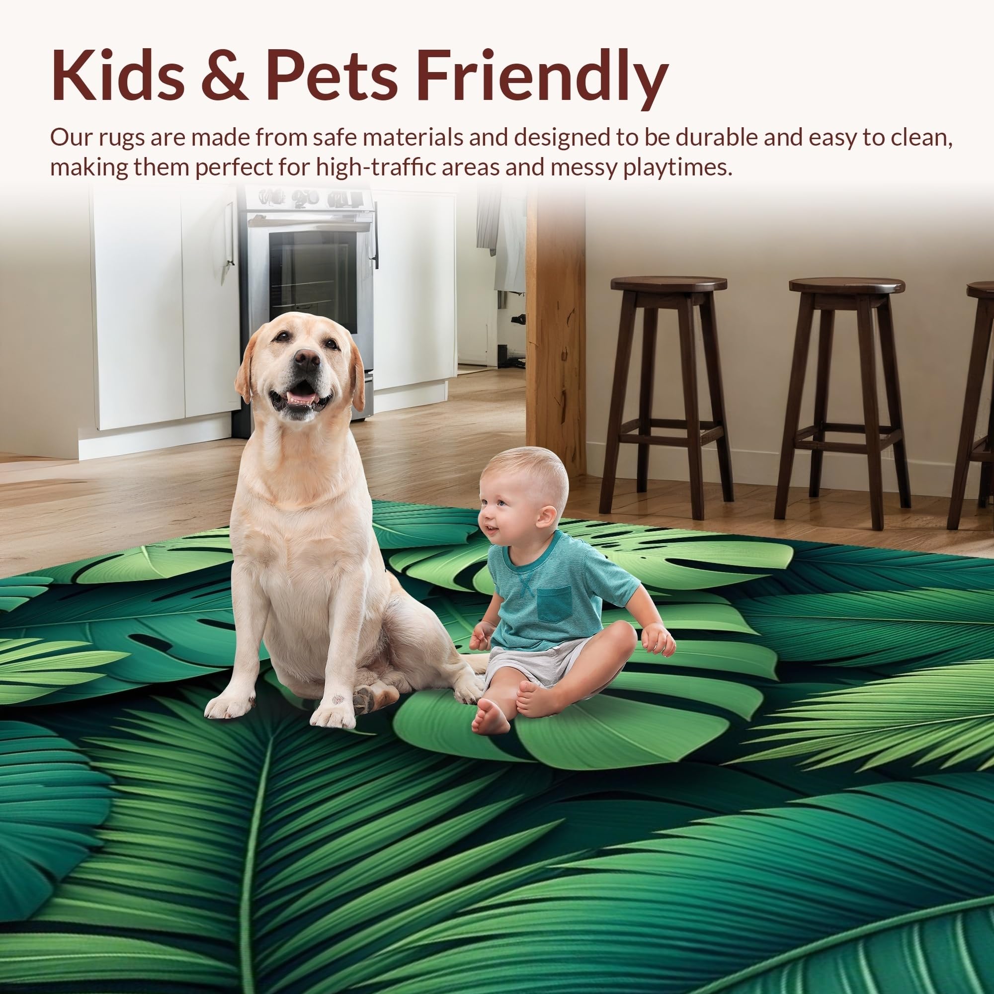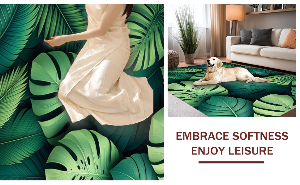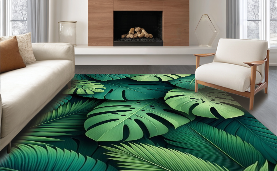 Ultra Soft Area Rug, Non Slip, Stain Resistant, Washable Area Rugs for Living Room, Bedroom, Tropical Leaf Inspired Decor(Green) Overview: