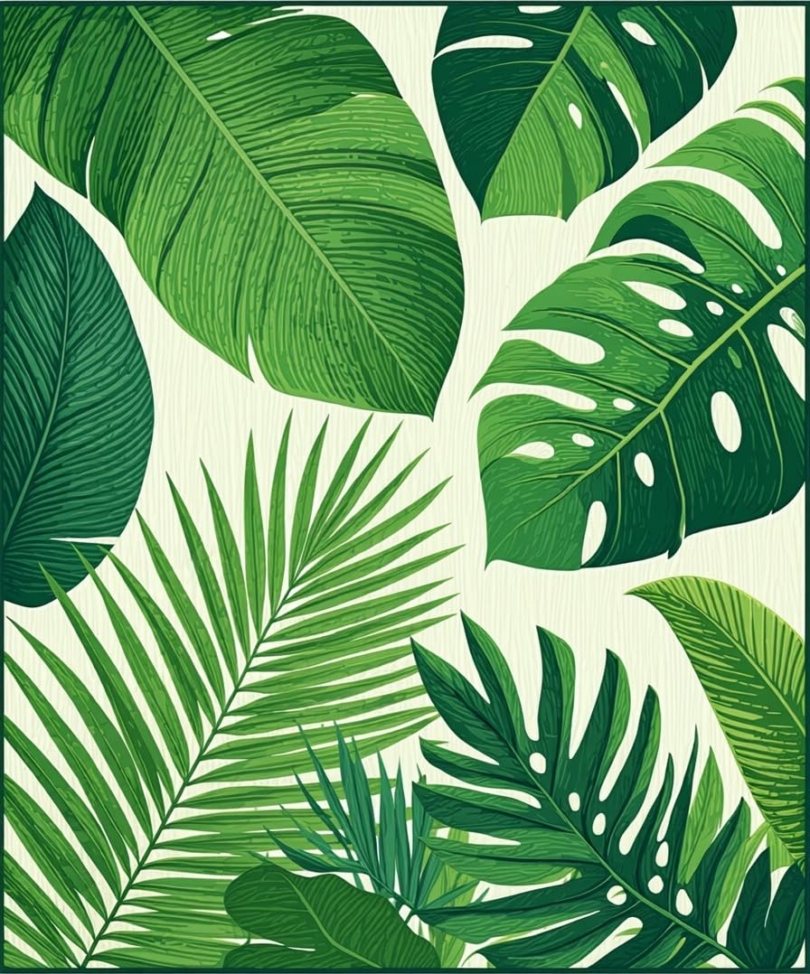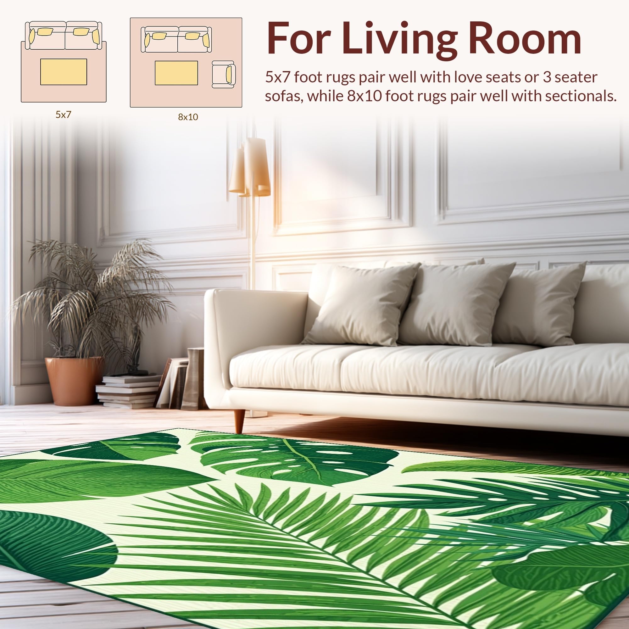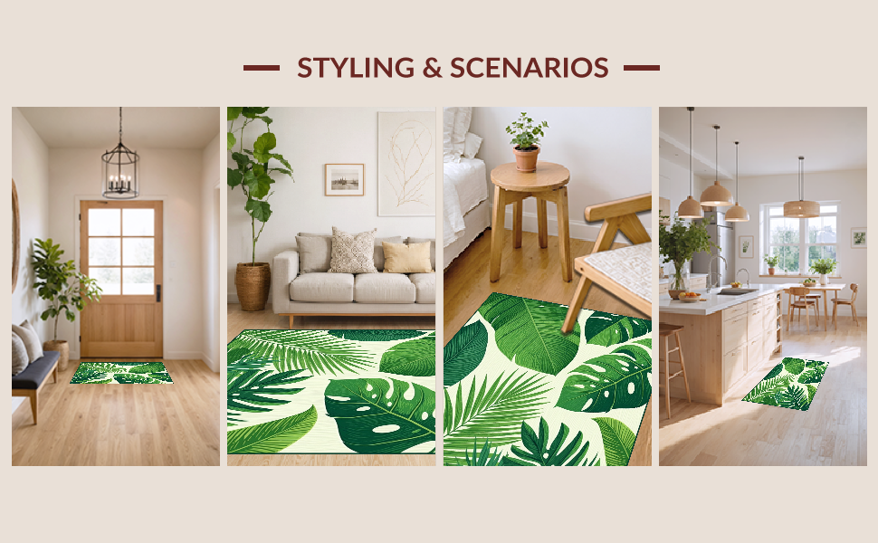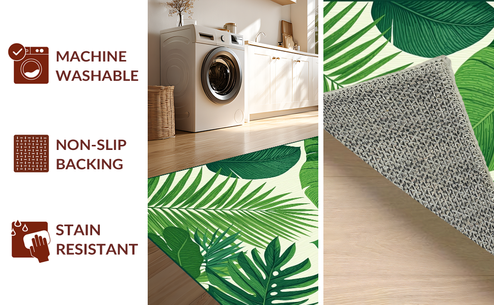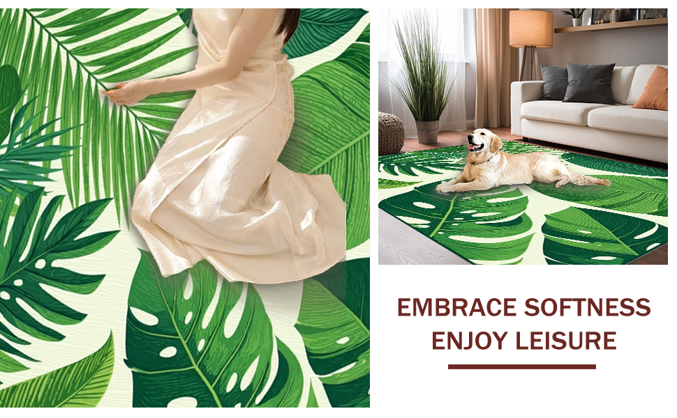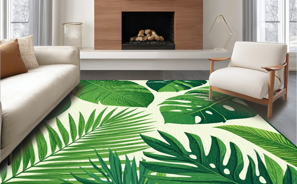 Ultra Soft Area Rug, Non Slip, Stain Resistant, Washable Area Rugs for Living Room, Bedroom, Tropical Leaf Motif Aesthetic(Green) Overview: