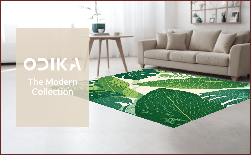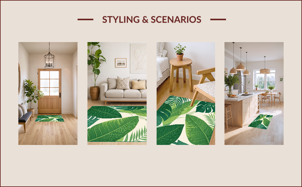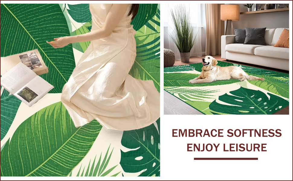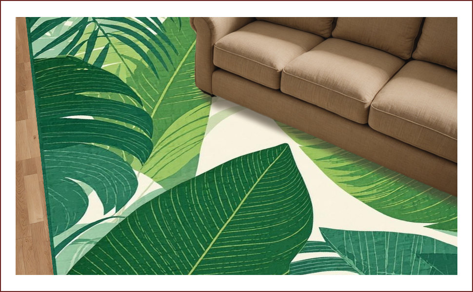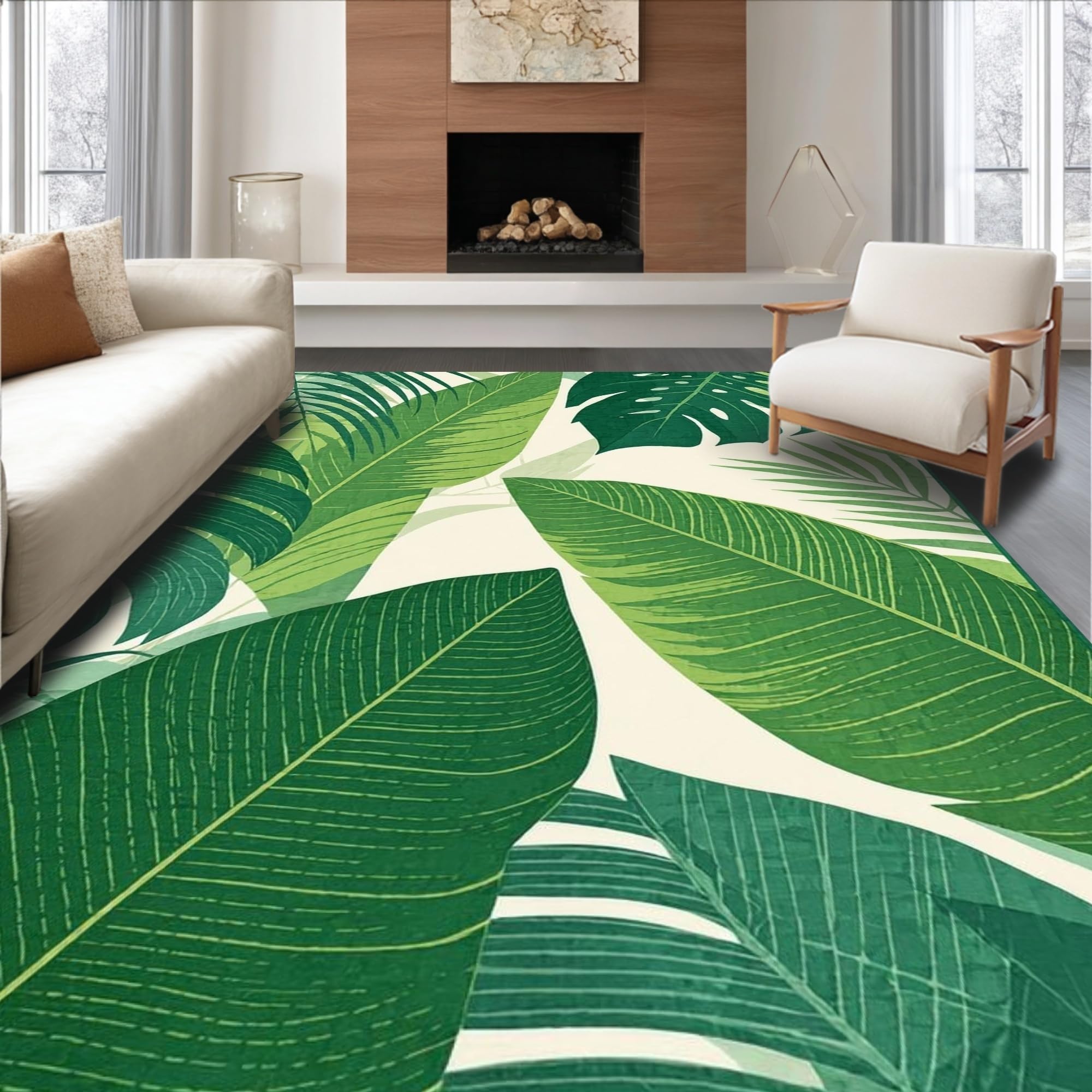 Ultra Soft Area Rug, Non Slip, Stain Resistant, Washable Area Rugs for Living Room, Bedroom, Tropical Leafy Botanical Vibe(Green) Overview: