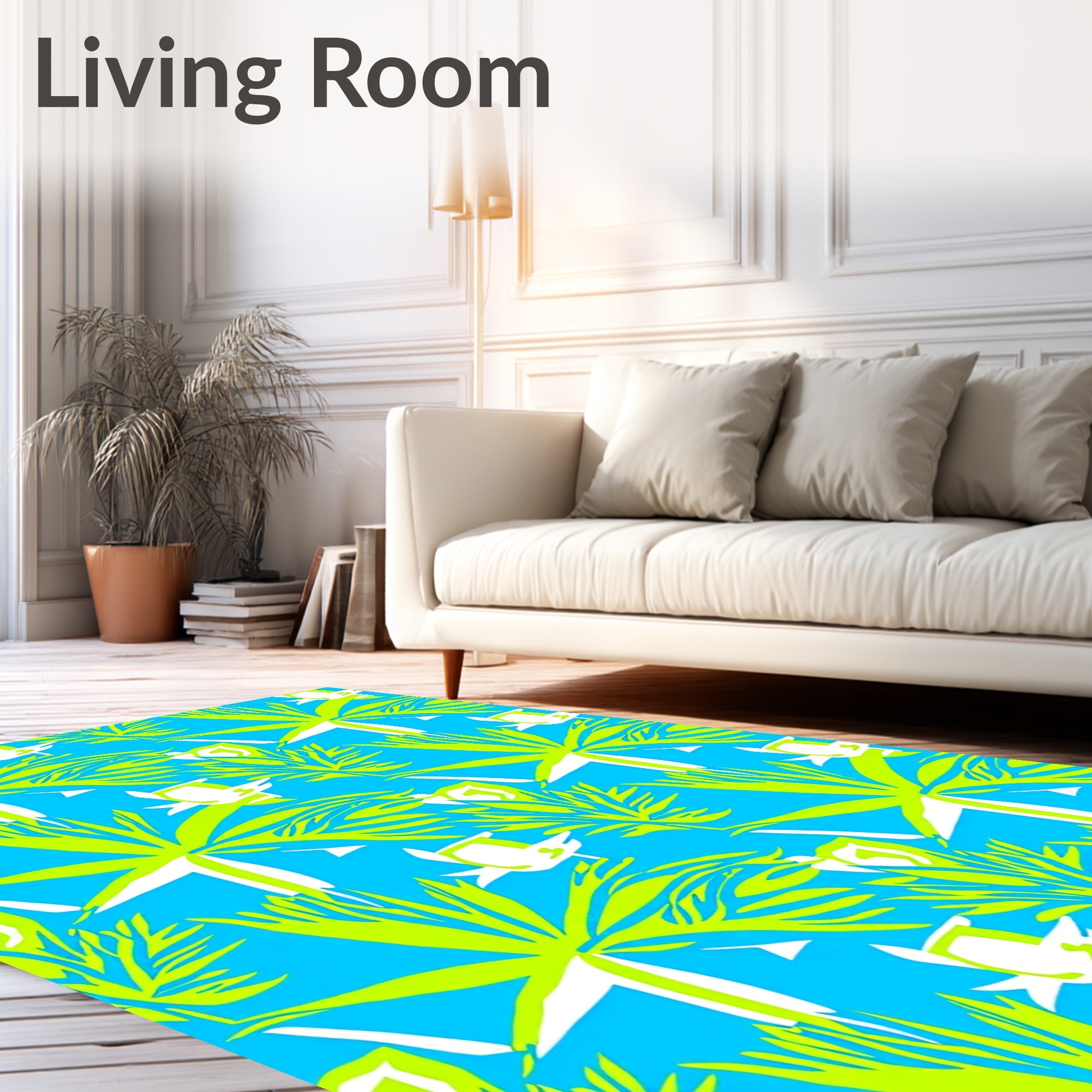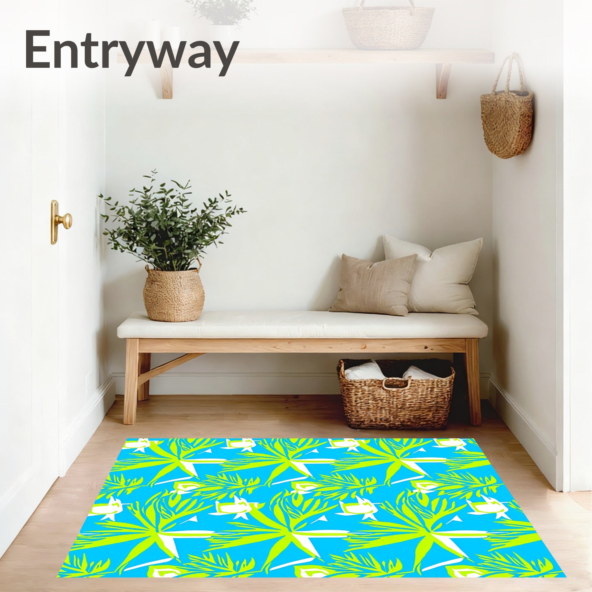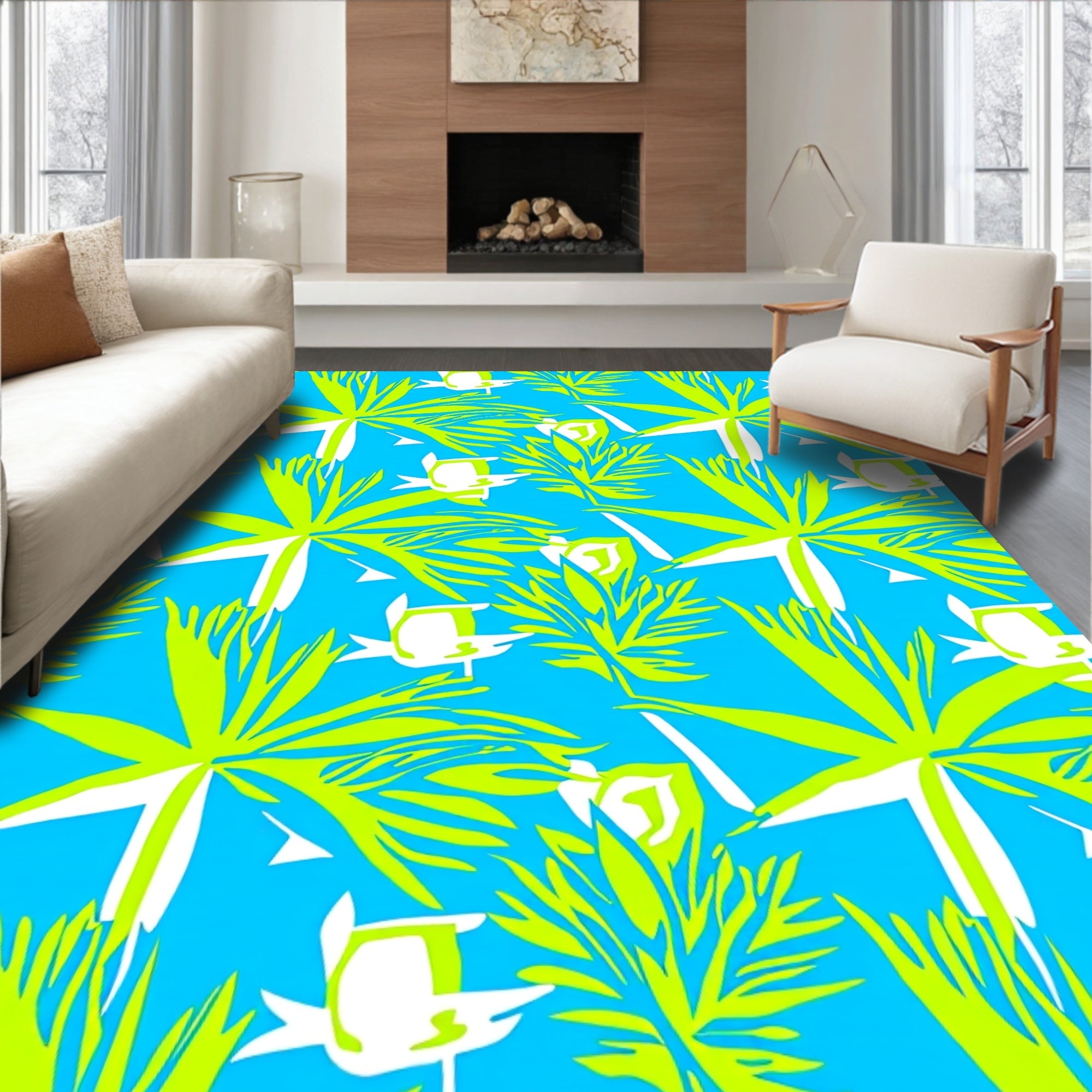 Flatwoven High Traffic Area Rug, Tropical Palm Leaf with Interlocking and Starburst, Non Slip, Stain Resistant, Washable Area Rugs for Living Room, Bedroom (Blue) Overview: