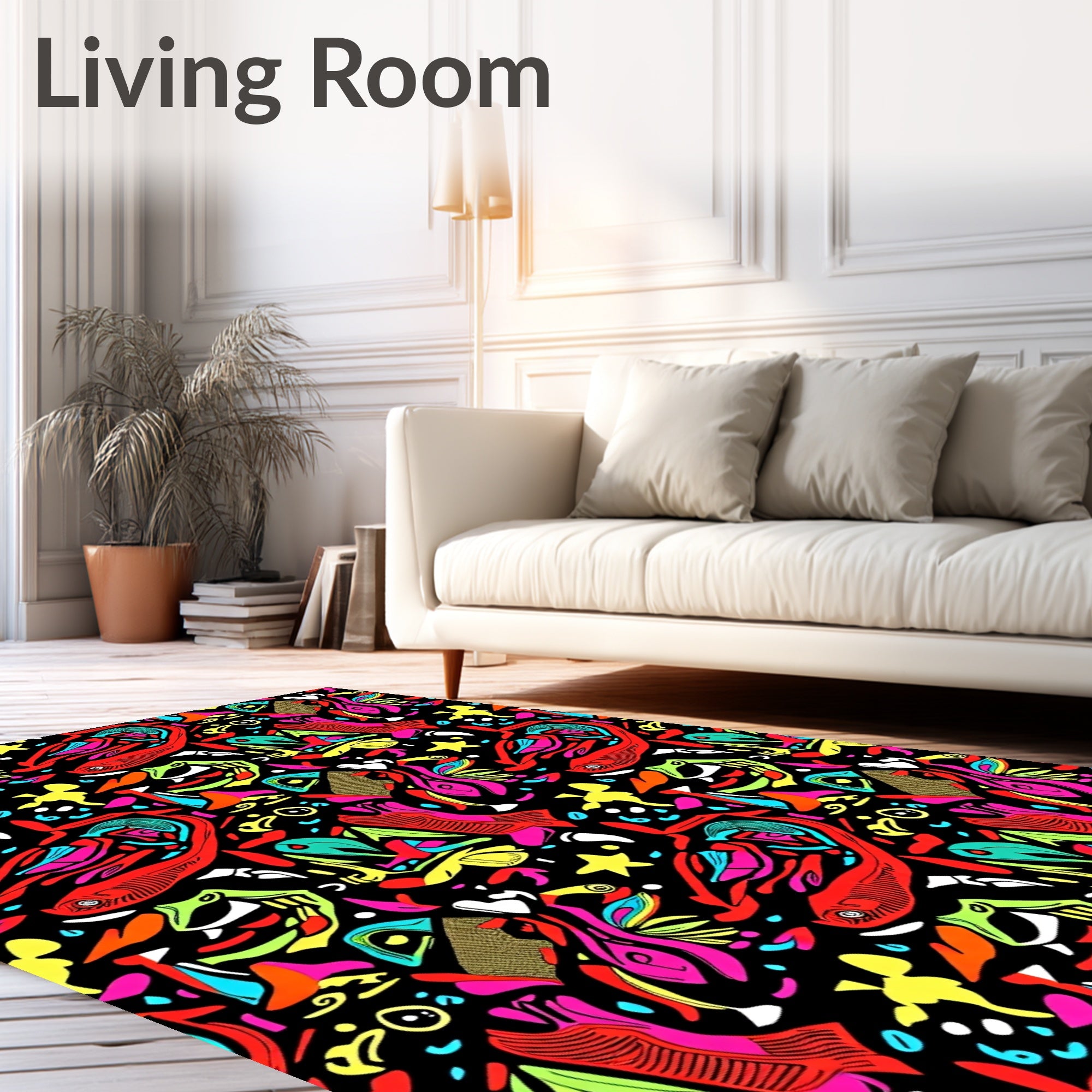 Ultra Soft Area Rug, Non Slip, Stain Resistant, Washable Area Rugs for Living Room, Bedroom, Tropical Reptile Mosaic with Exotic Fish and Motifs(Red) Overview: