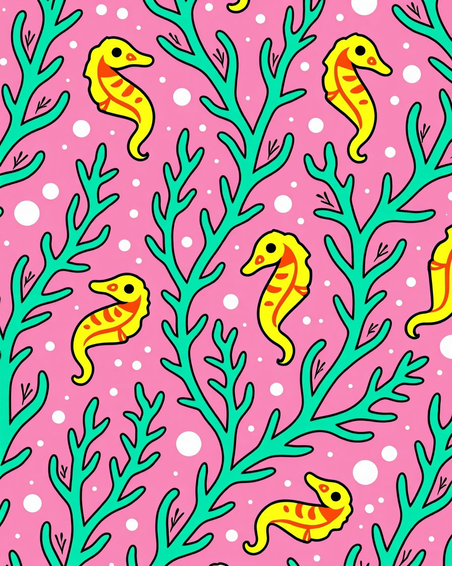 Tropical Seahorse Dance with Flowing Kelp Forest Waves Design(Pink)