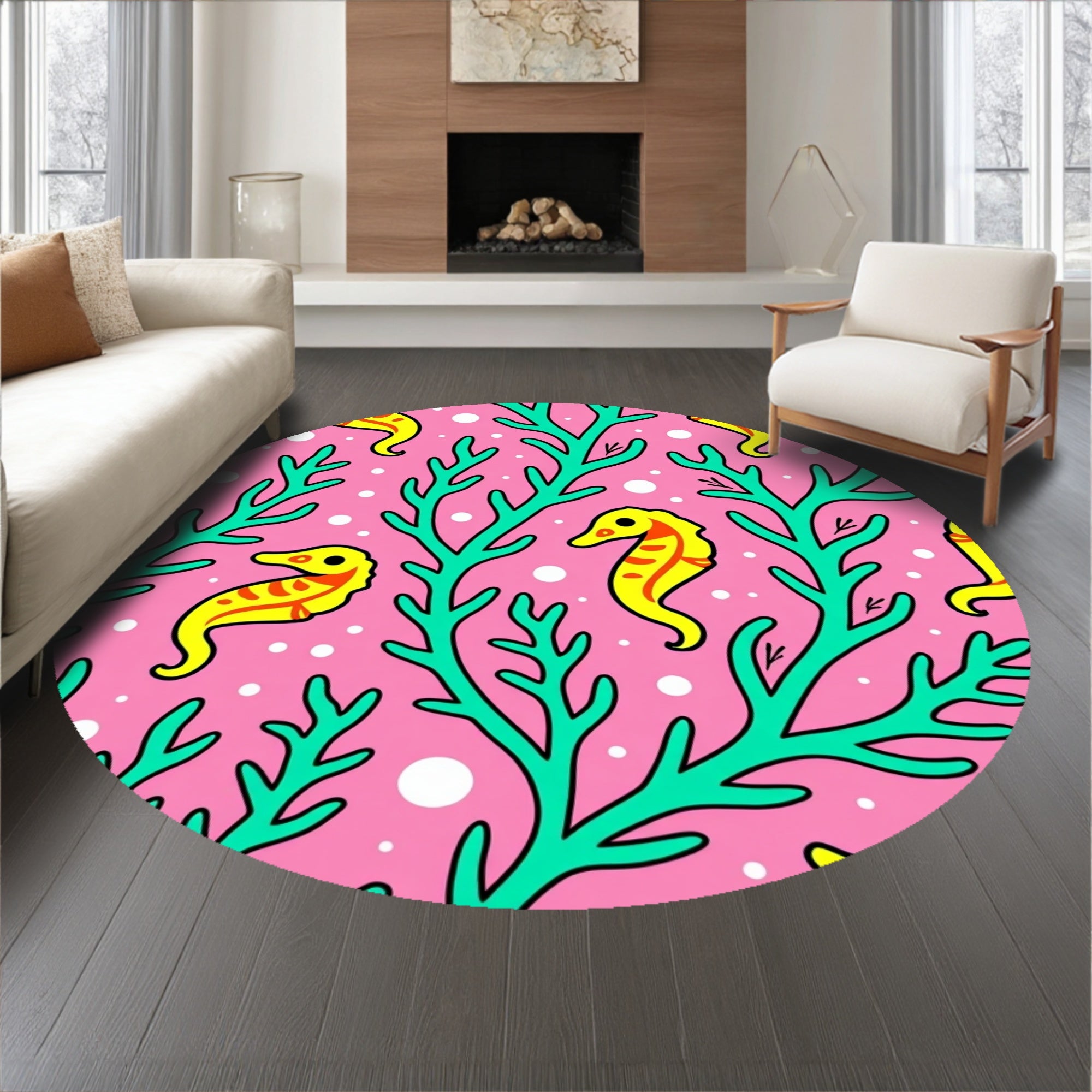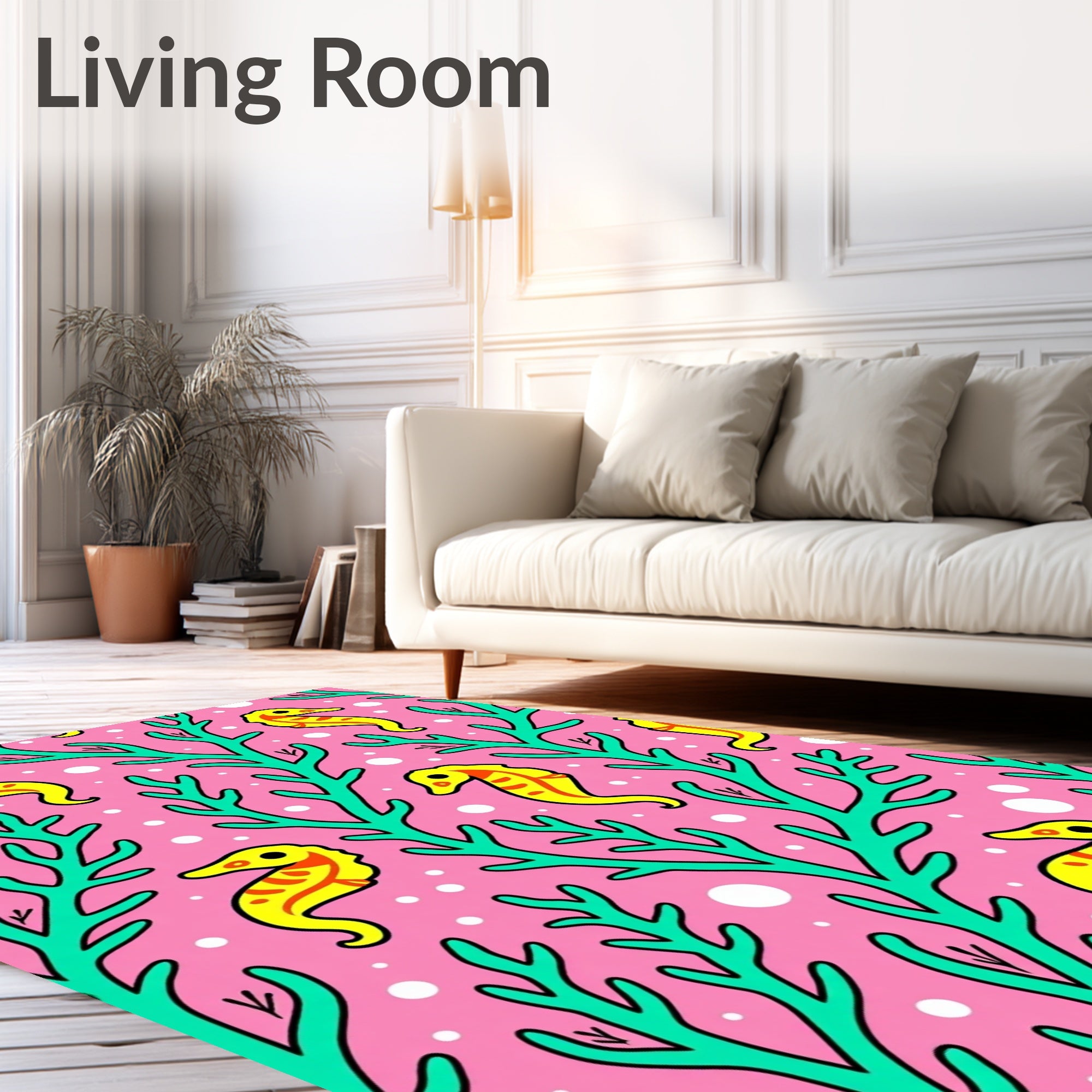 Ultra Soft Area Rug, Non Slip, Stain Resistant, Washable Area Rugs for Living Room, Bedroom, Tropical Seahorse Dance with Flowing Kelp Forest Waves Design(Pink) Overview: