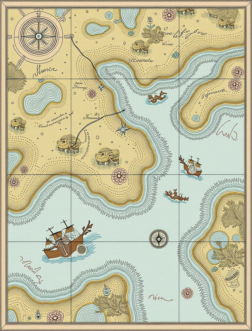 Tropical Seascape Treasure Cove Nautical Adventure Map(Beige)