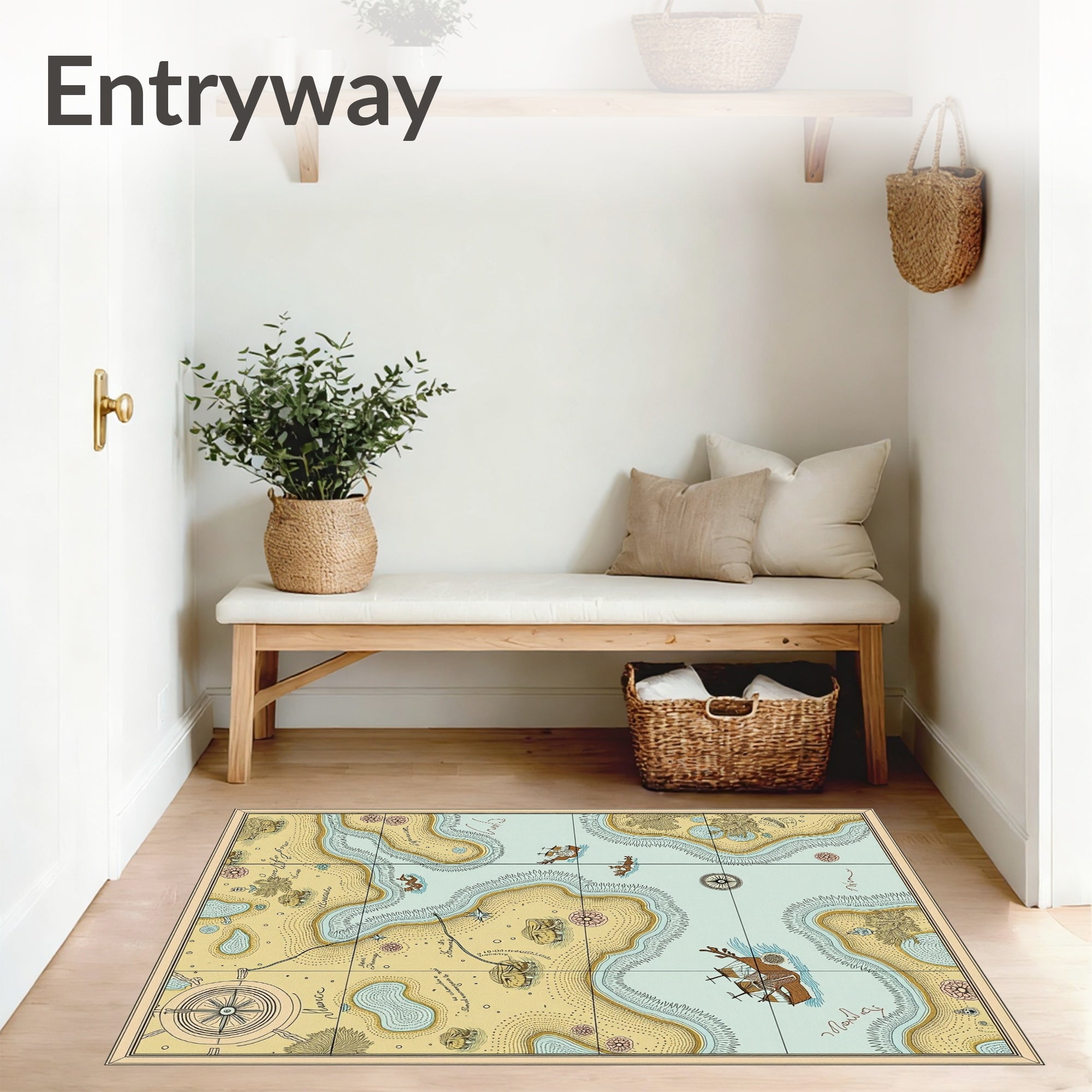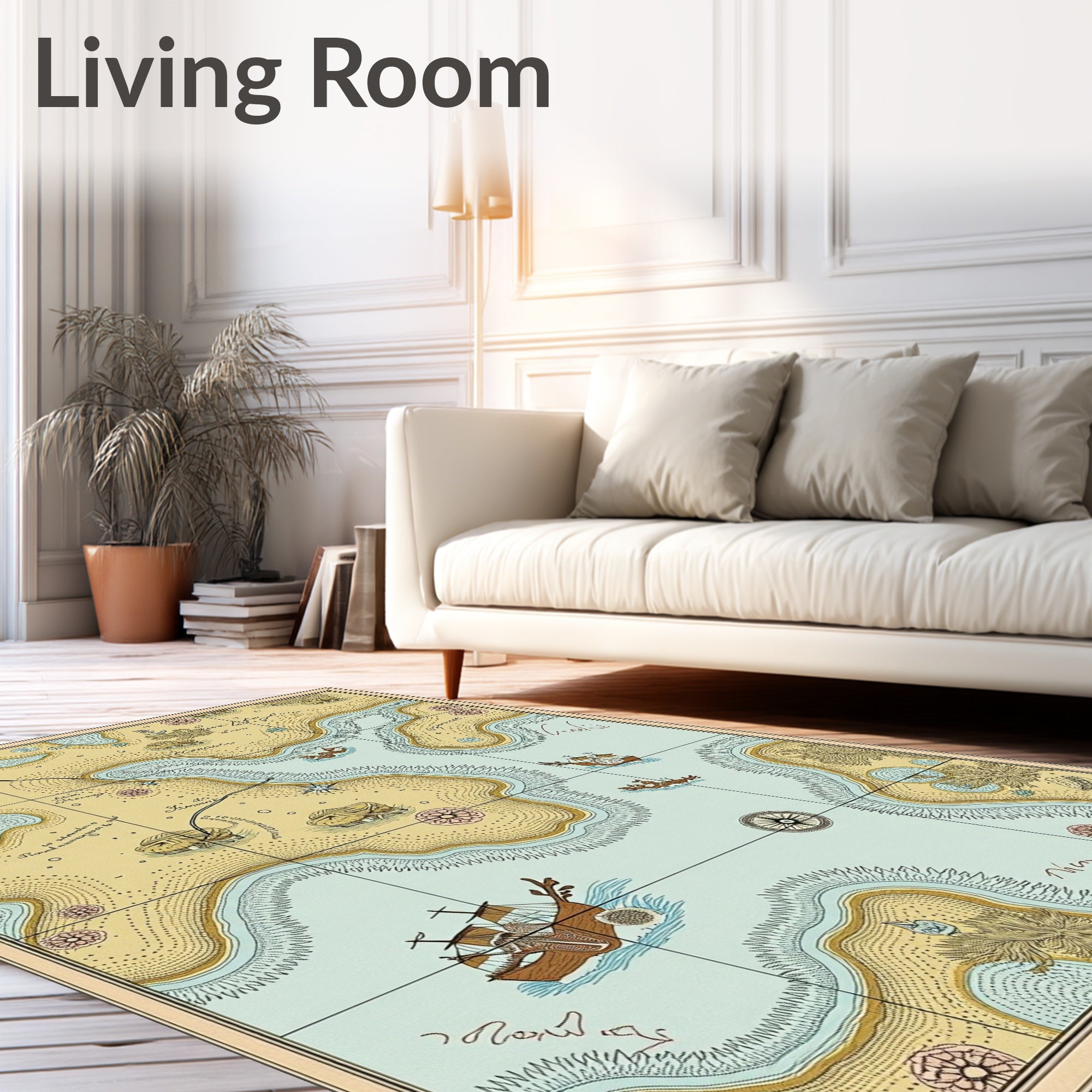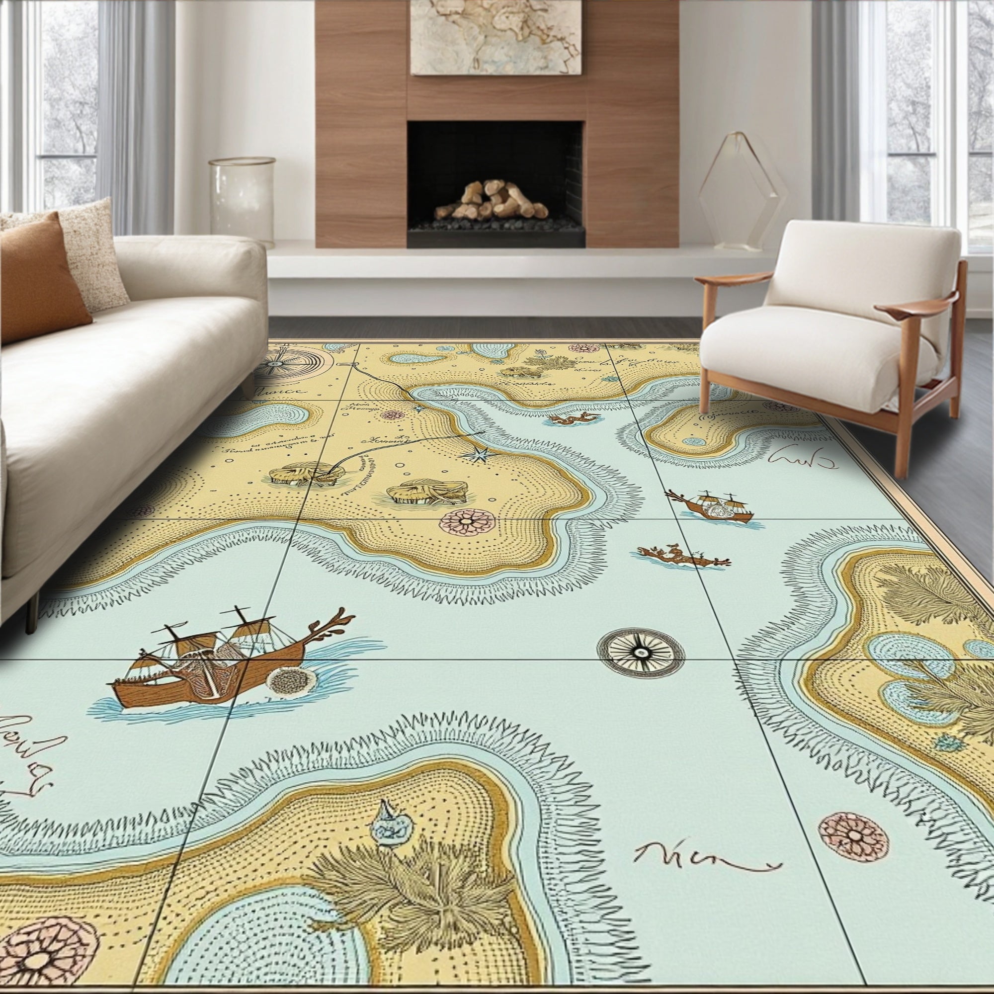 Ultra Soft Area Rug, Non Slip, Stain Resistant, Washable Area Rugs for Living Room, Bedroom, Tropical Seascape Treasure Cove Nautical Adventure Map(Beige) Overview: