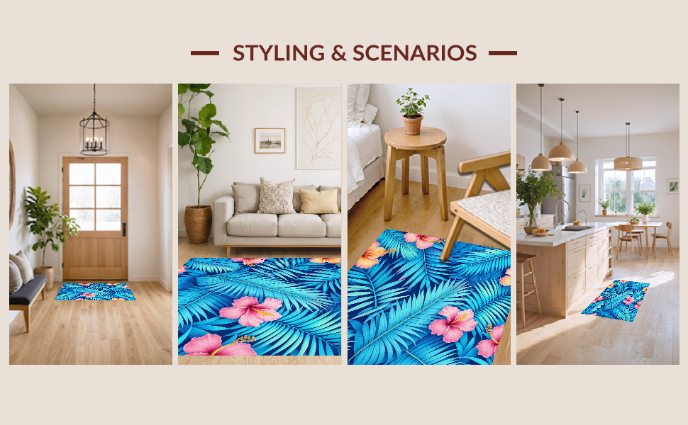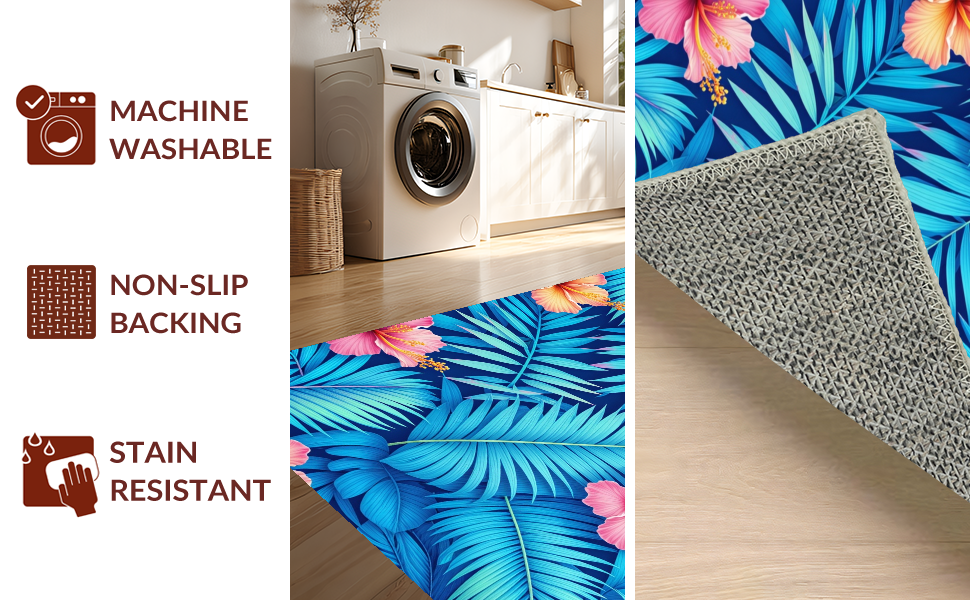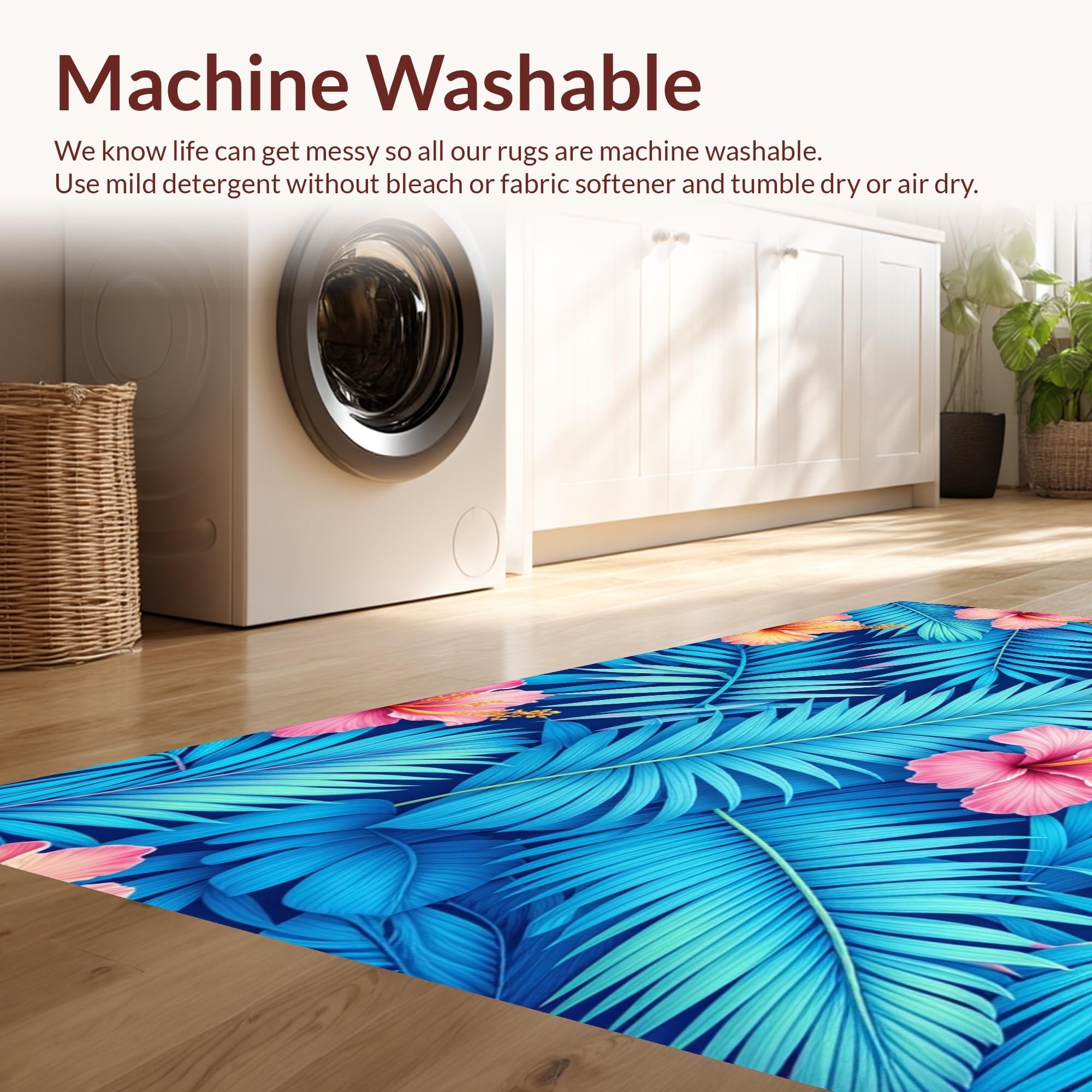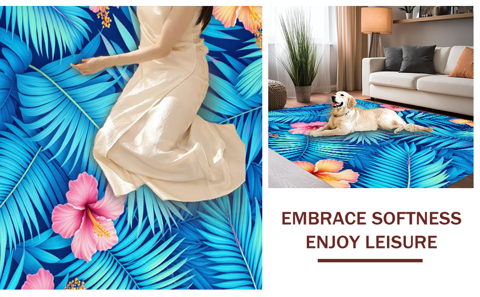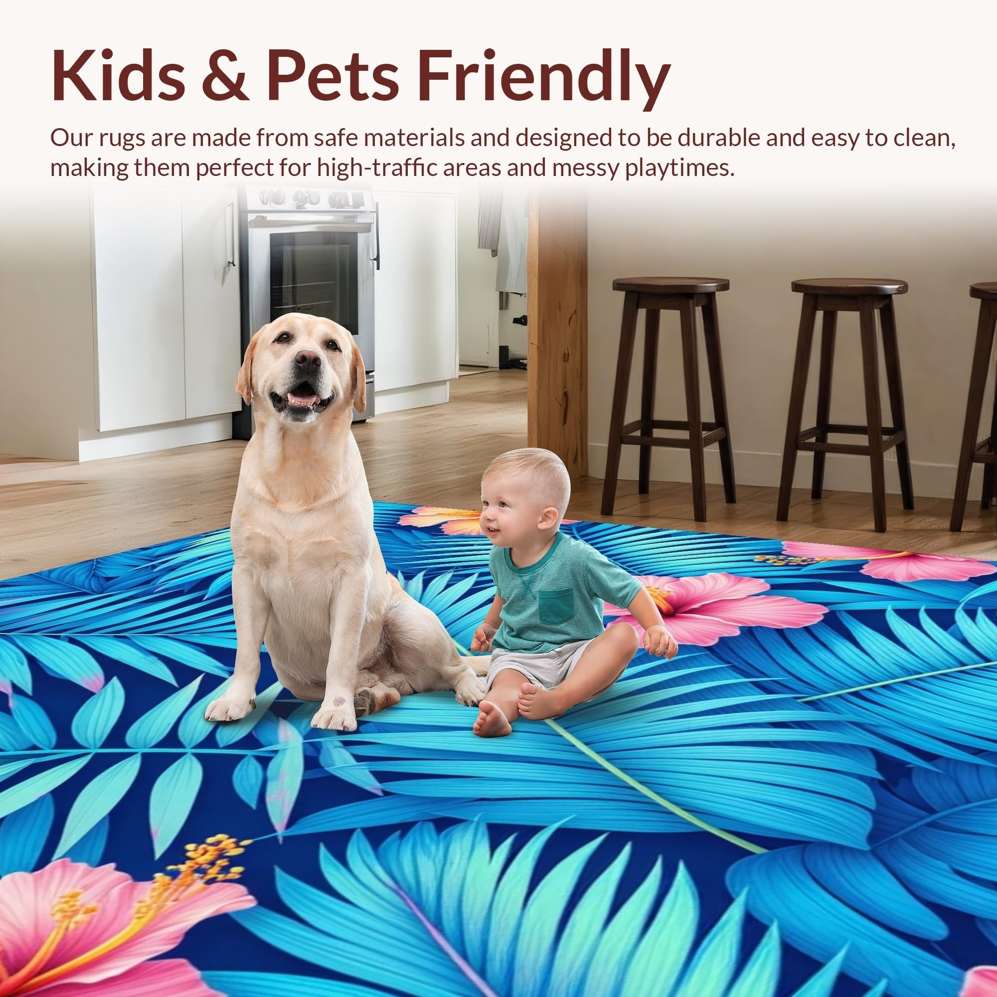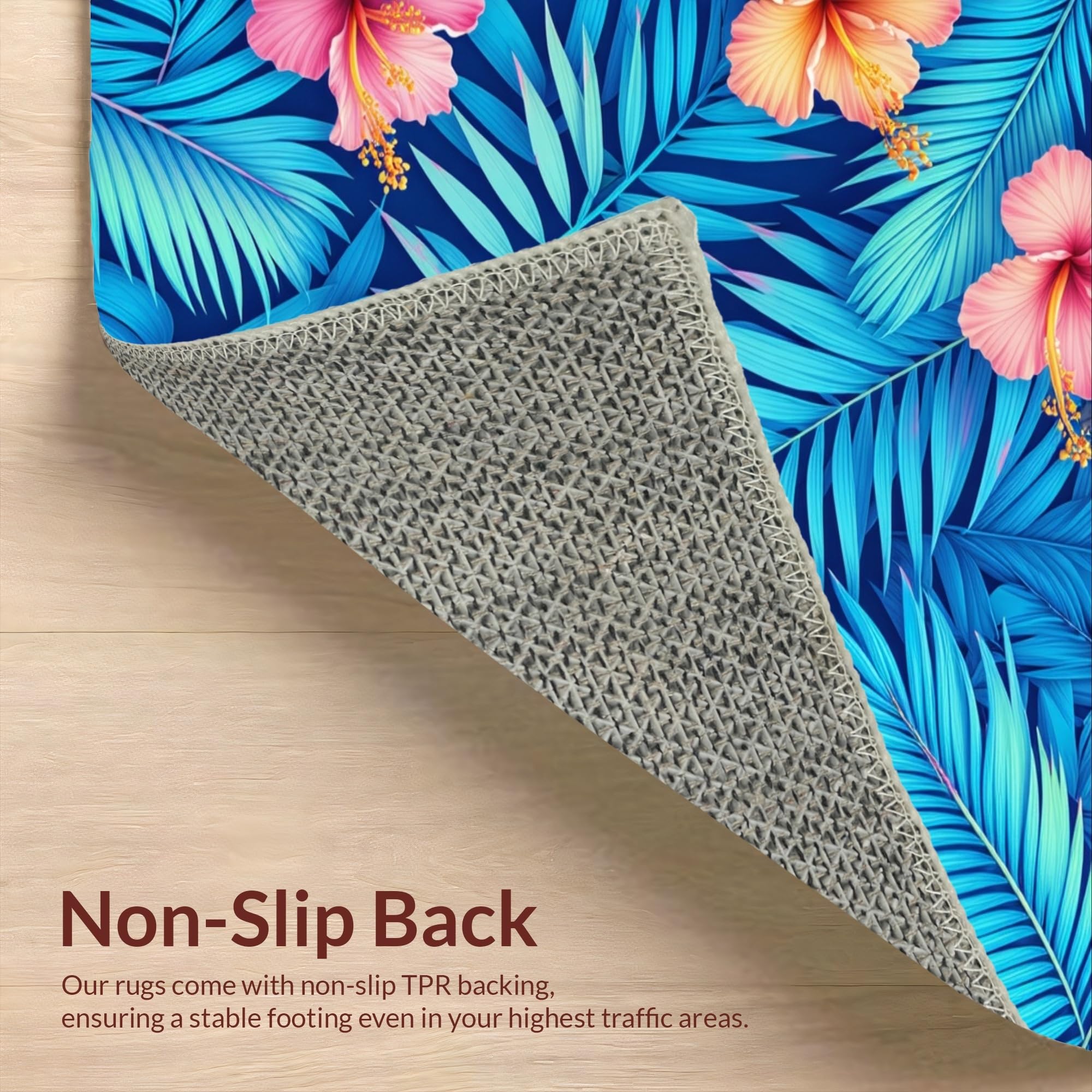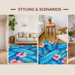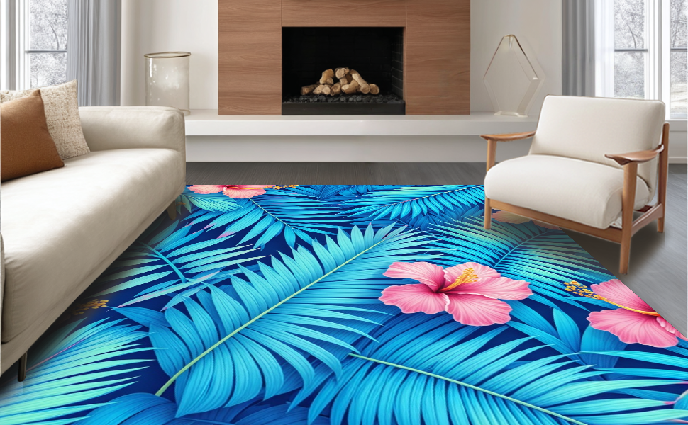 Ultra Soft Area Rug, Non Slip, Stain Resistant, Washable Area Rugs for Living Room, Bedroom, Tropical Vibrant Floral Arrangement(Blue) Overview:
