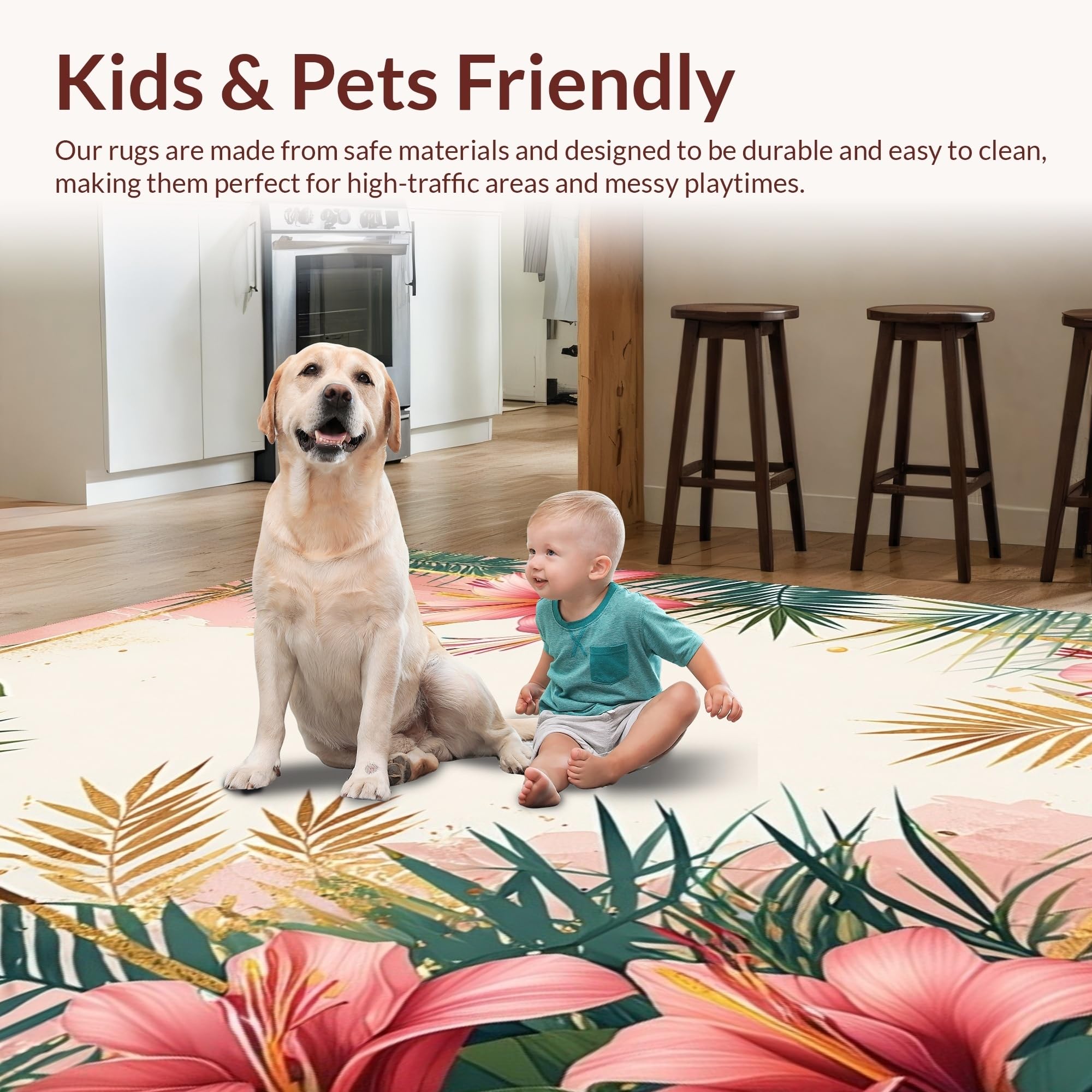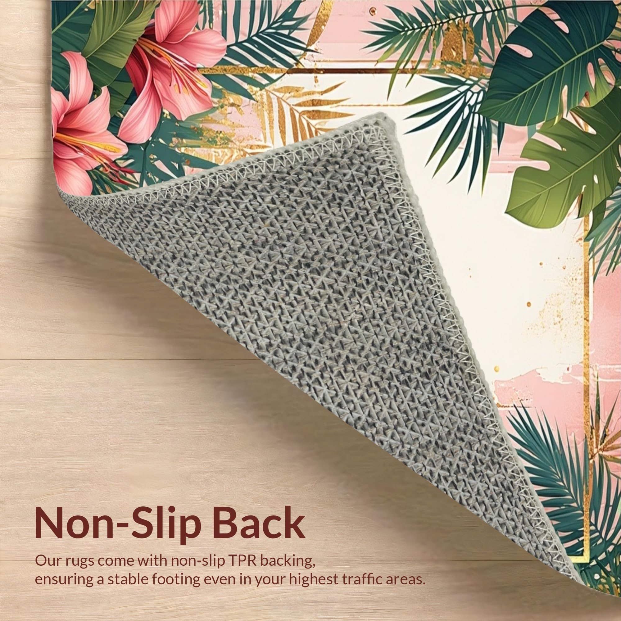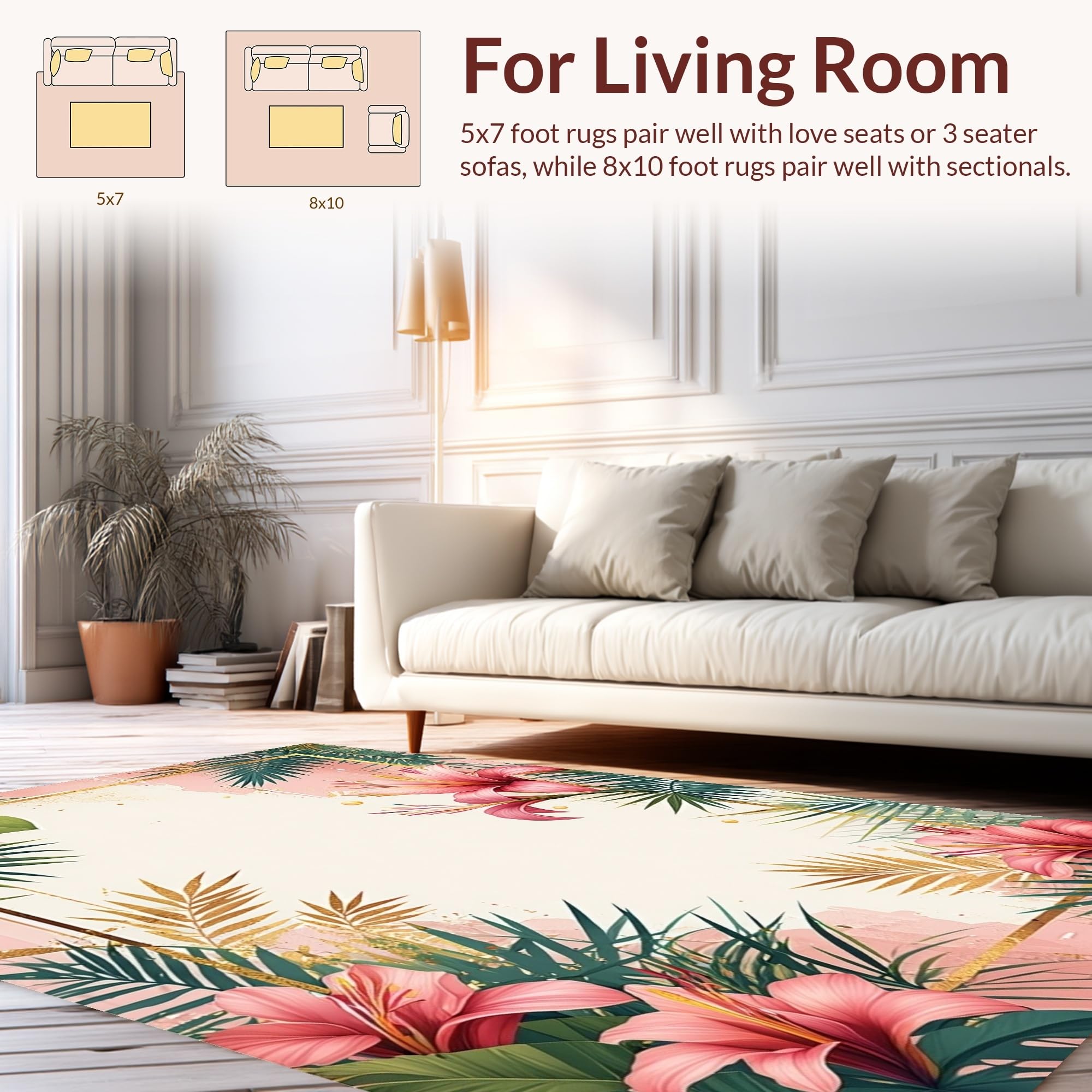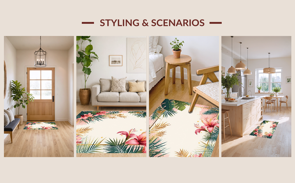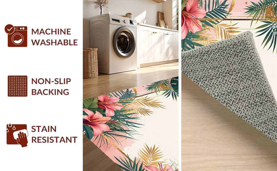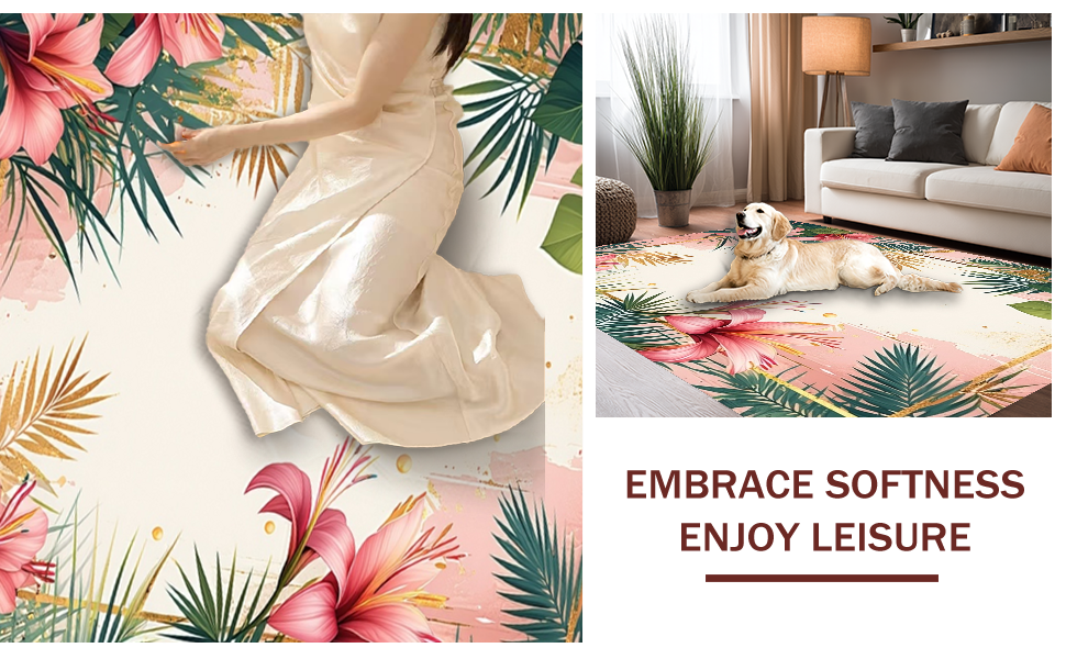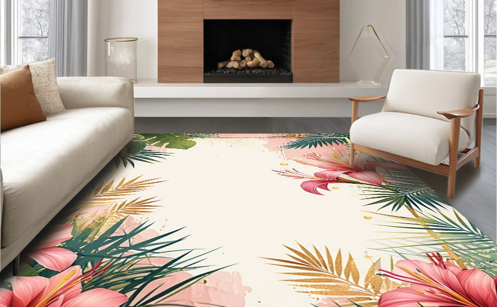 Ultra Soft Area Rug, Non Slip, Stain Resistant, Washable Area Rugs for Living Room, Bedroom, Tropical Vintage Floral Motif(Pink) Overview: