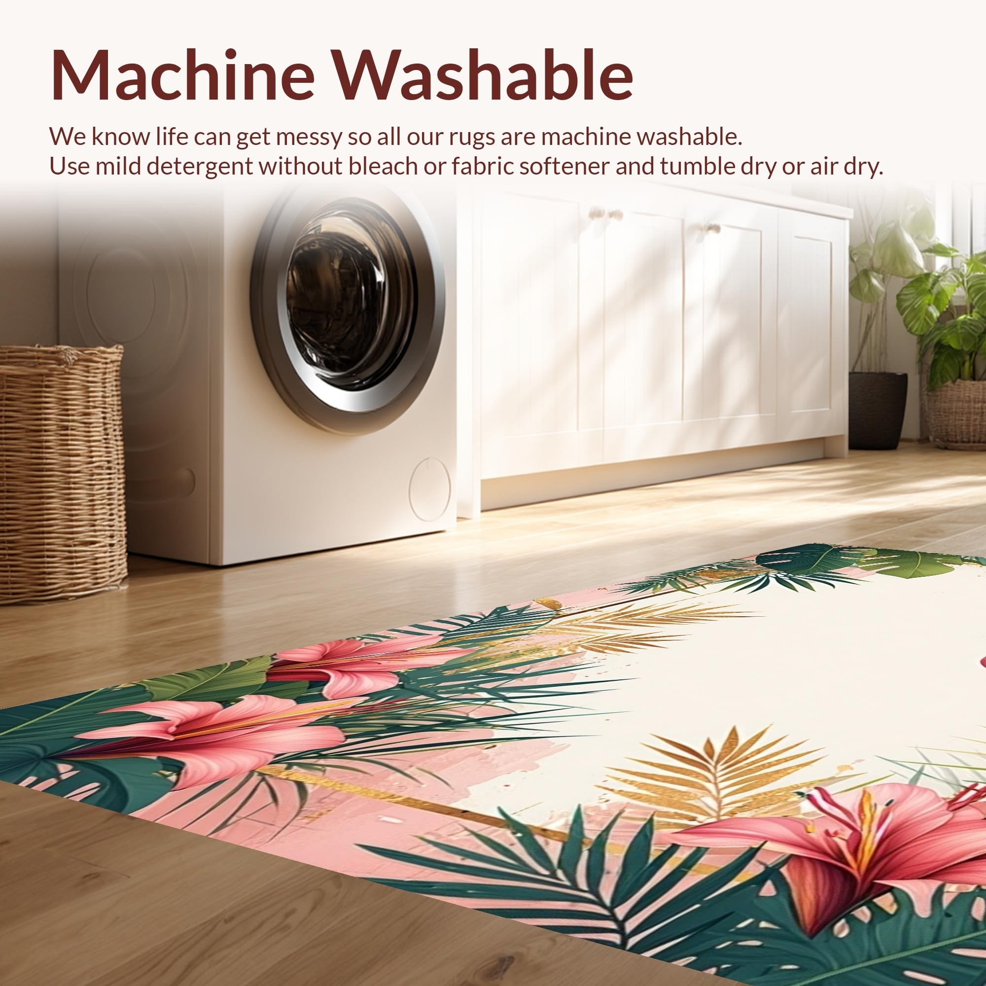 - Machine Washable: Our rugs can be easily thrown in the wash machine.